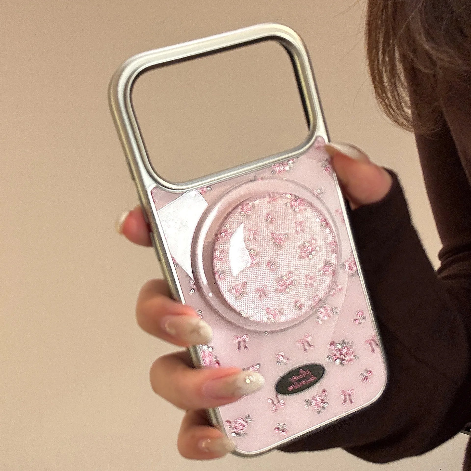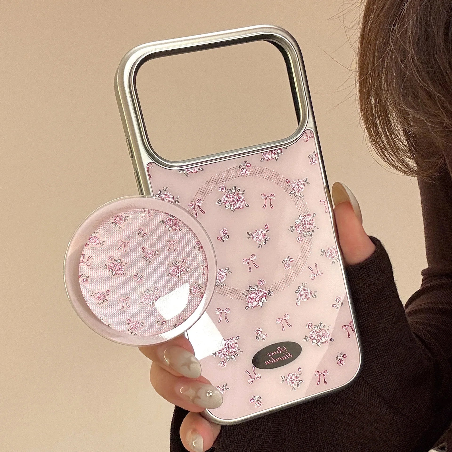 ヴィンテージフラワー Magnet内蔵 iPhoneケース|小花柄ピンク・マグネットグリップ #240427