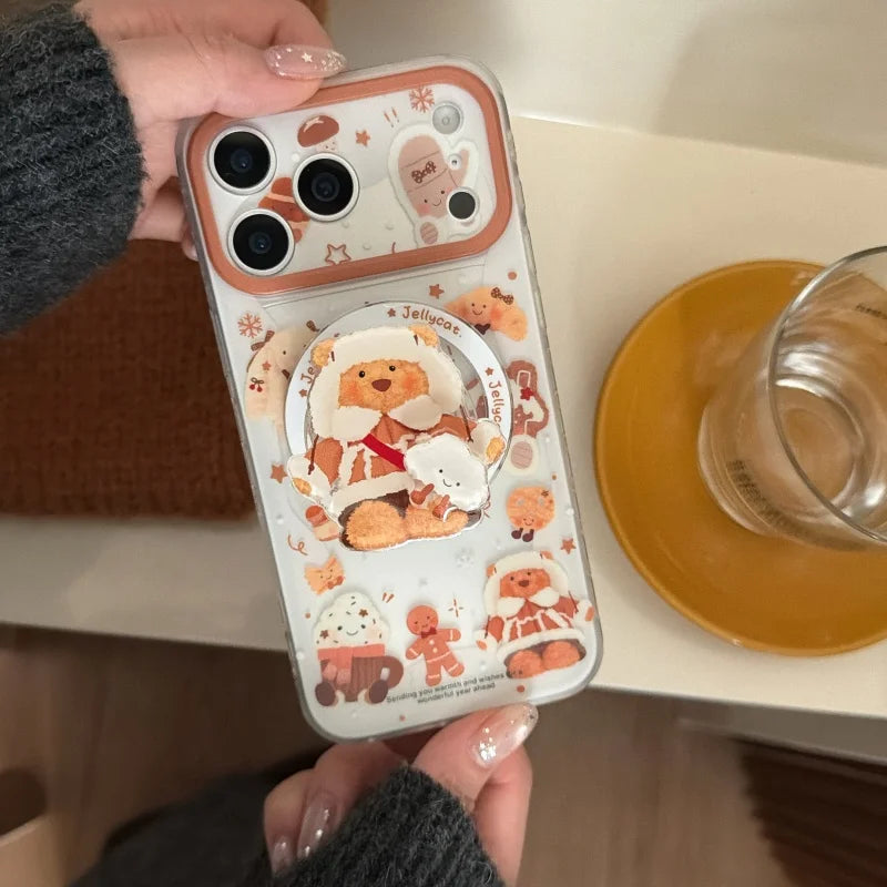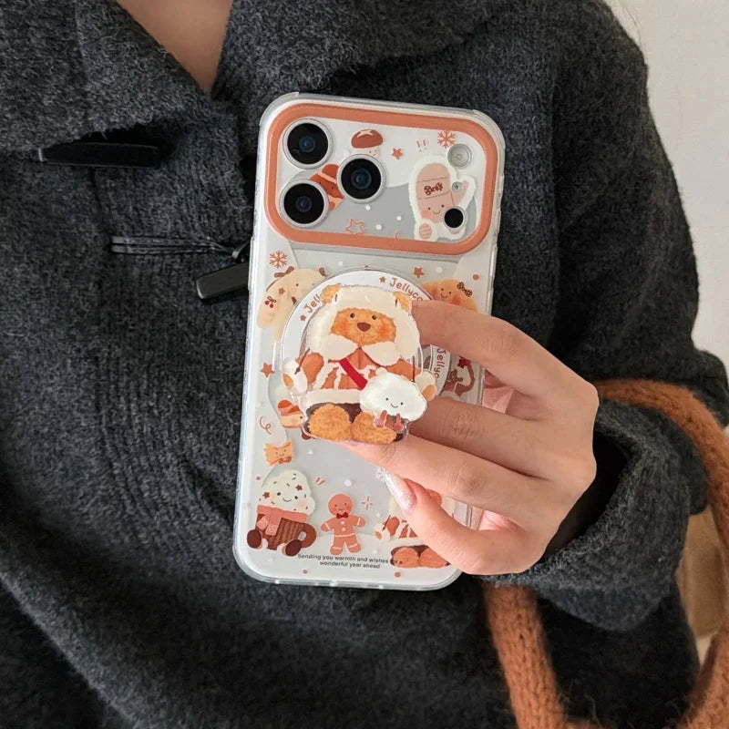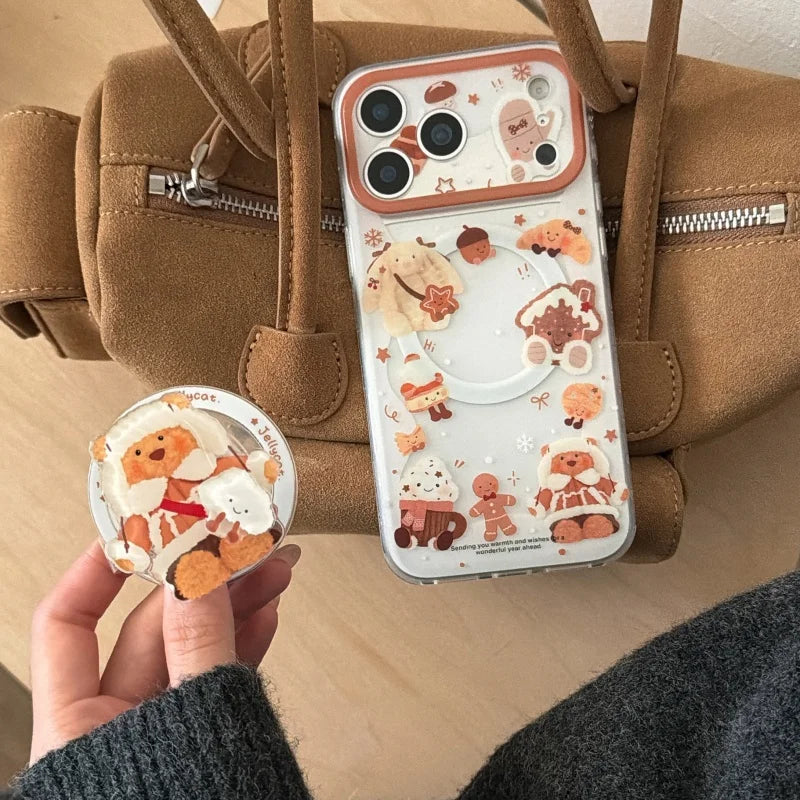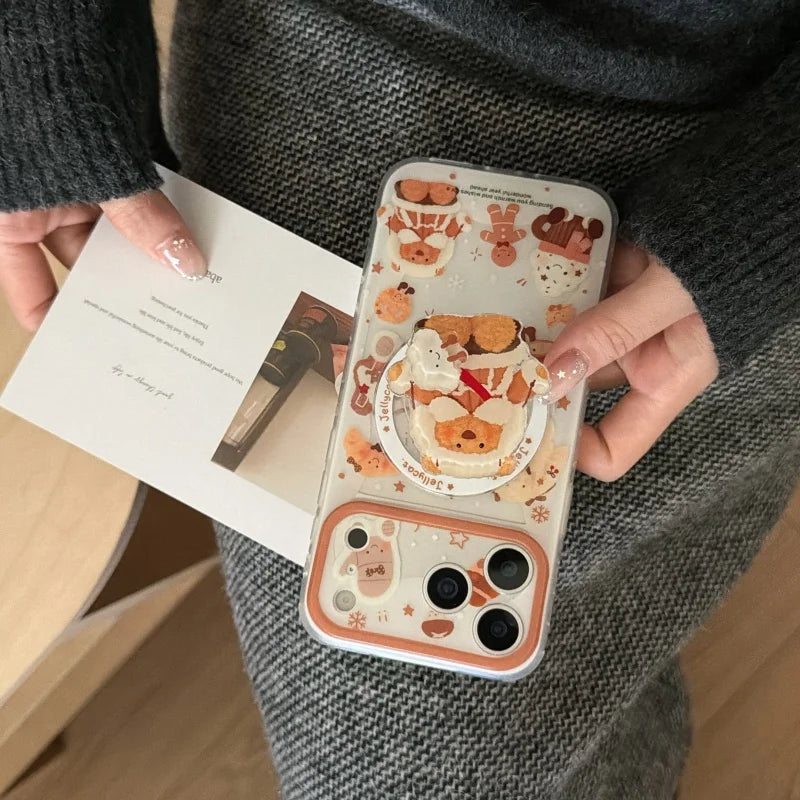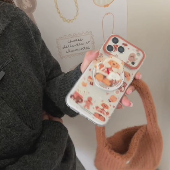 雪んこくまさん ベア スイーツ イラスト グリップ付き Magnet内蔵 iPhoneケース #240502