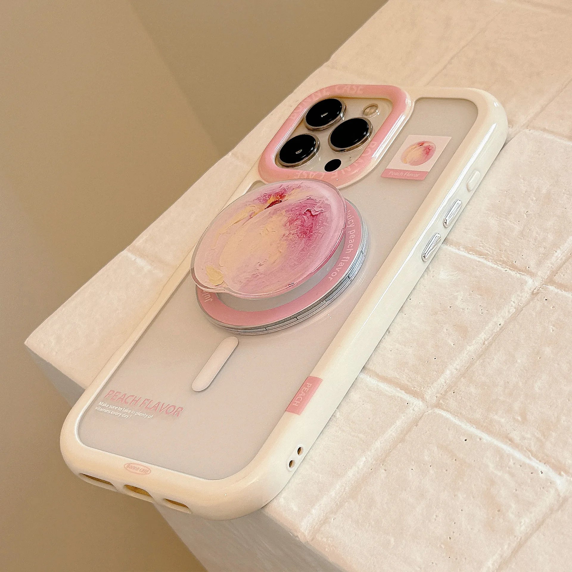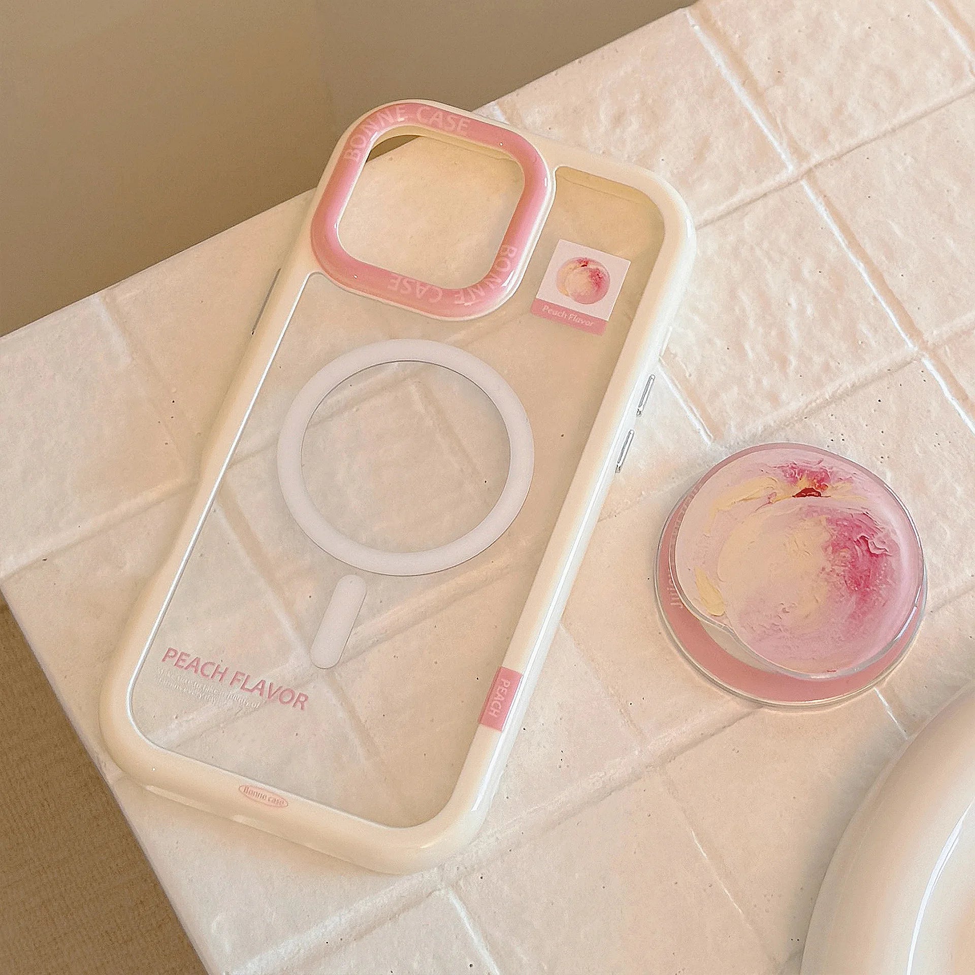 ピーチグリップ 桃 クリア Magnet内蔵 iPhoneケース #240503