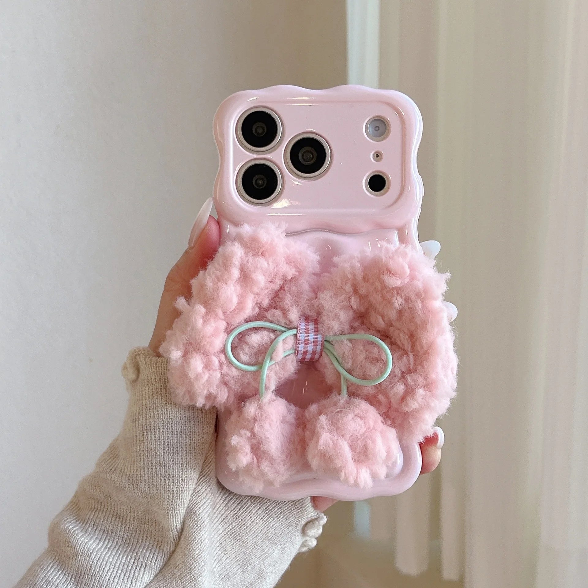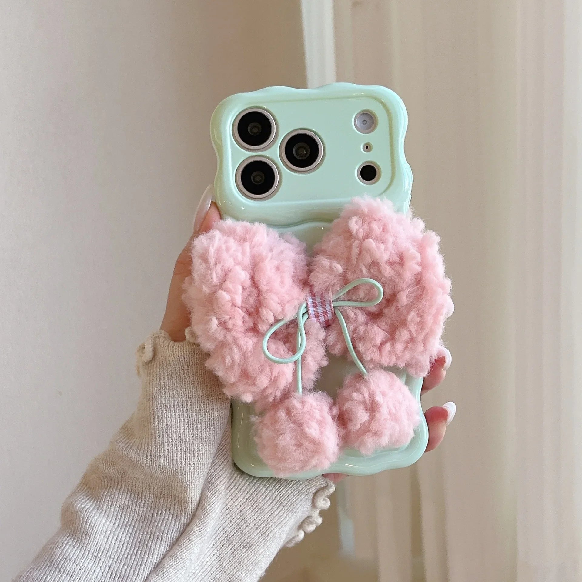 もこもこリボン パステルカラー iPhoneケース #240505