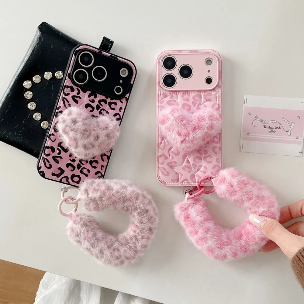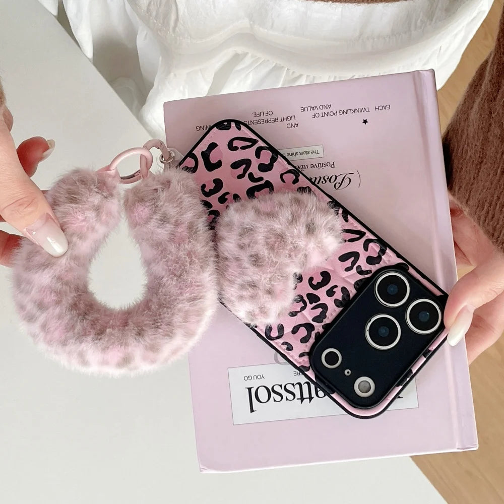 ファーハート付き ピンクレオパード ヒョウ柄 iPhoneケース #240507