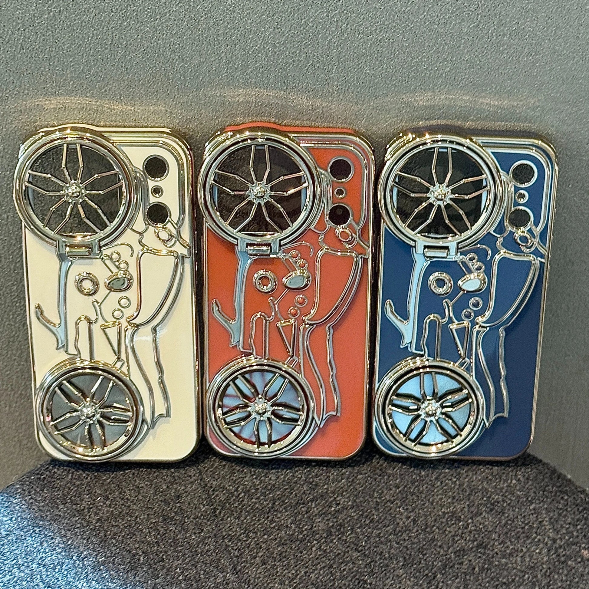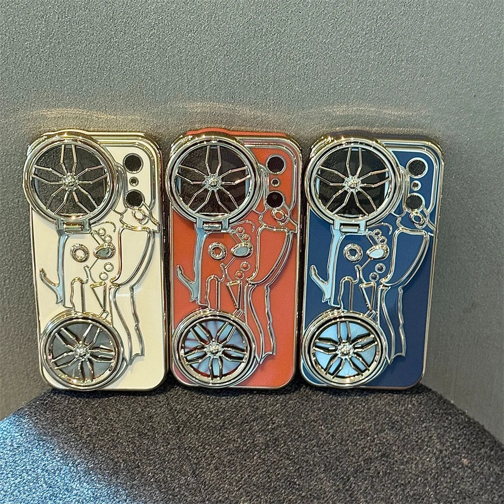 くるくる回る タイヤ 自転車 メタルバイク iPhoneケース|立体ラインデザイン #240508