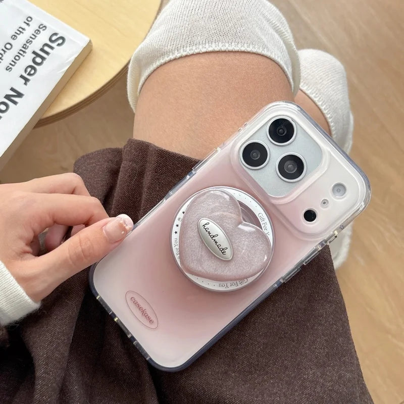 ぷっくりハートグリップ付き ふんわりチーク 滲み グラデデザイン iPhoneケース #240510