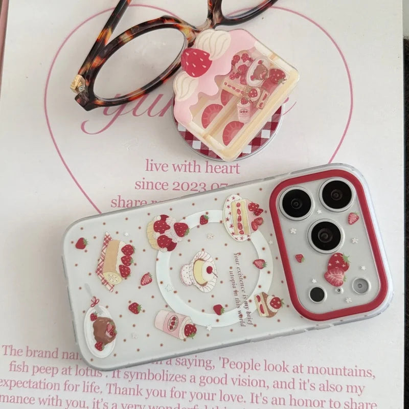 いちご ショートケーキ グリップ付き スイーツ ストロベリー iPhoneケース #240512