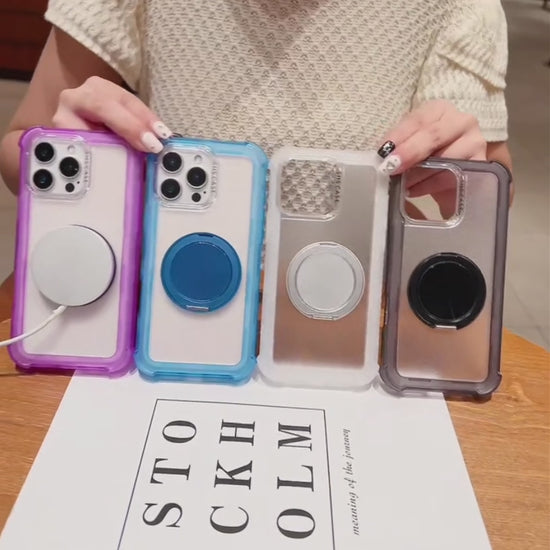 背面リング付きで、持ちやすさとスタンド機能を兼ね備えたケース。