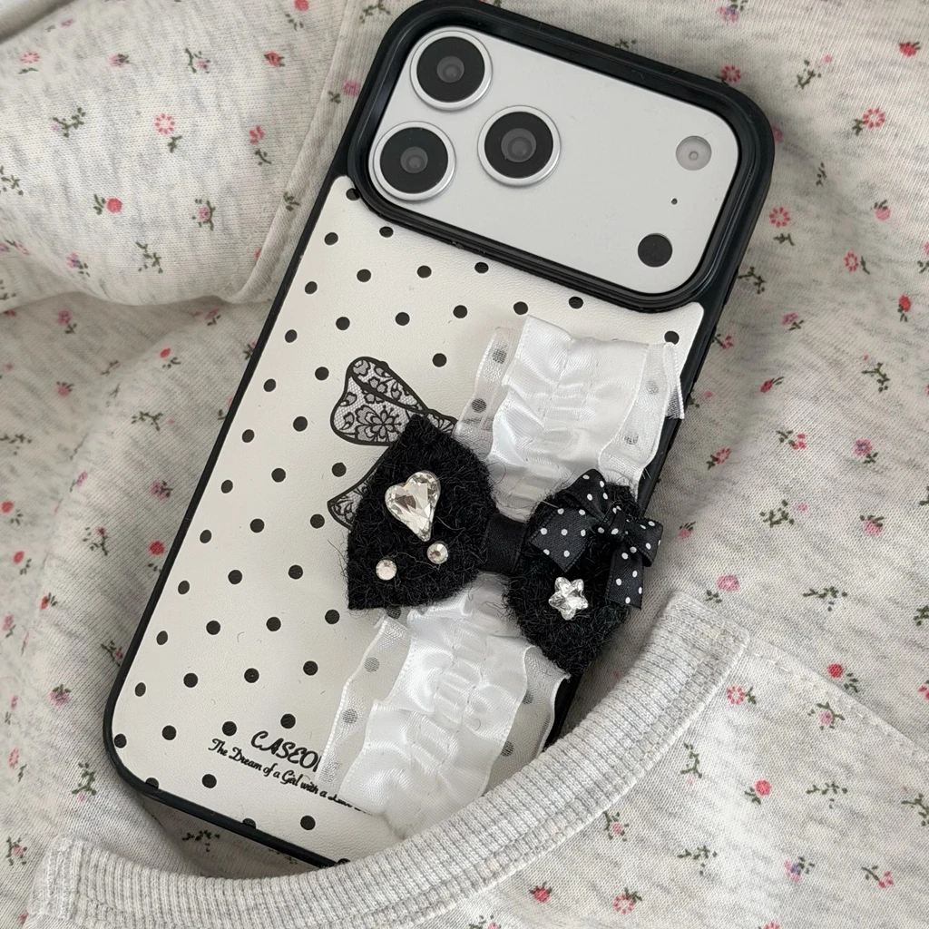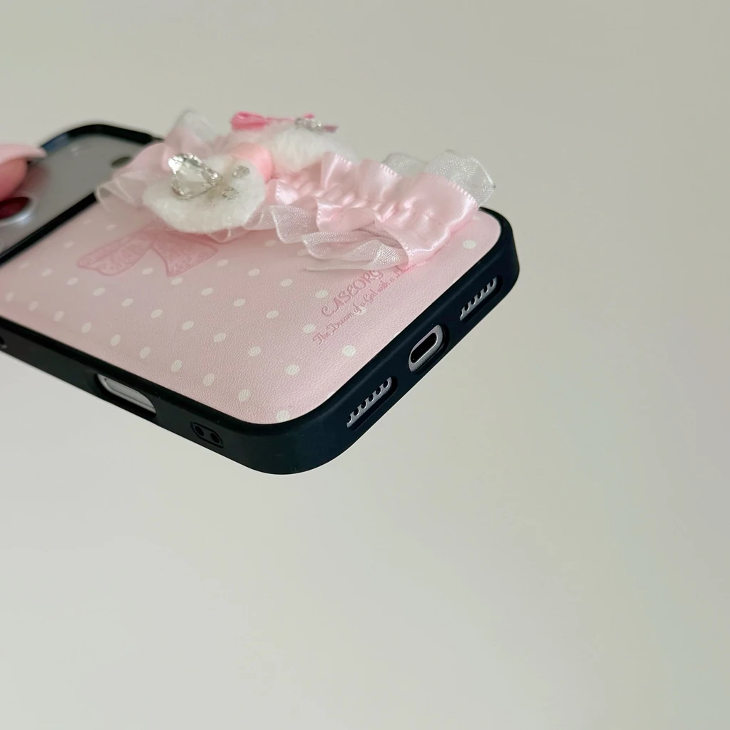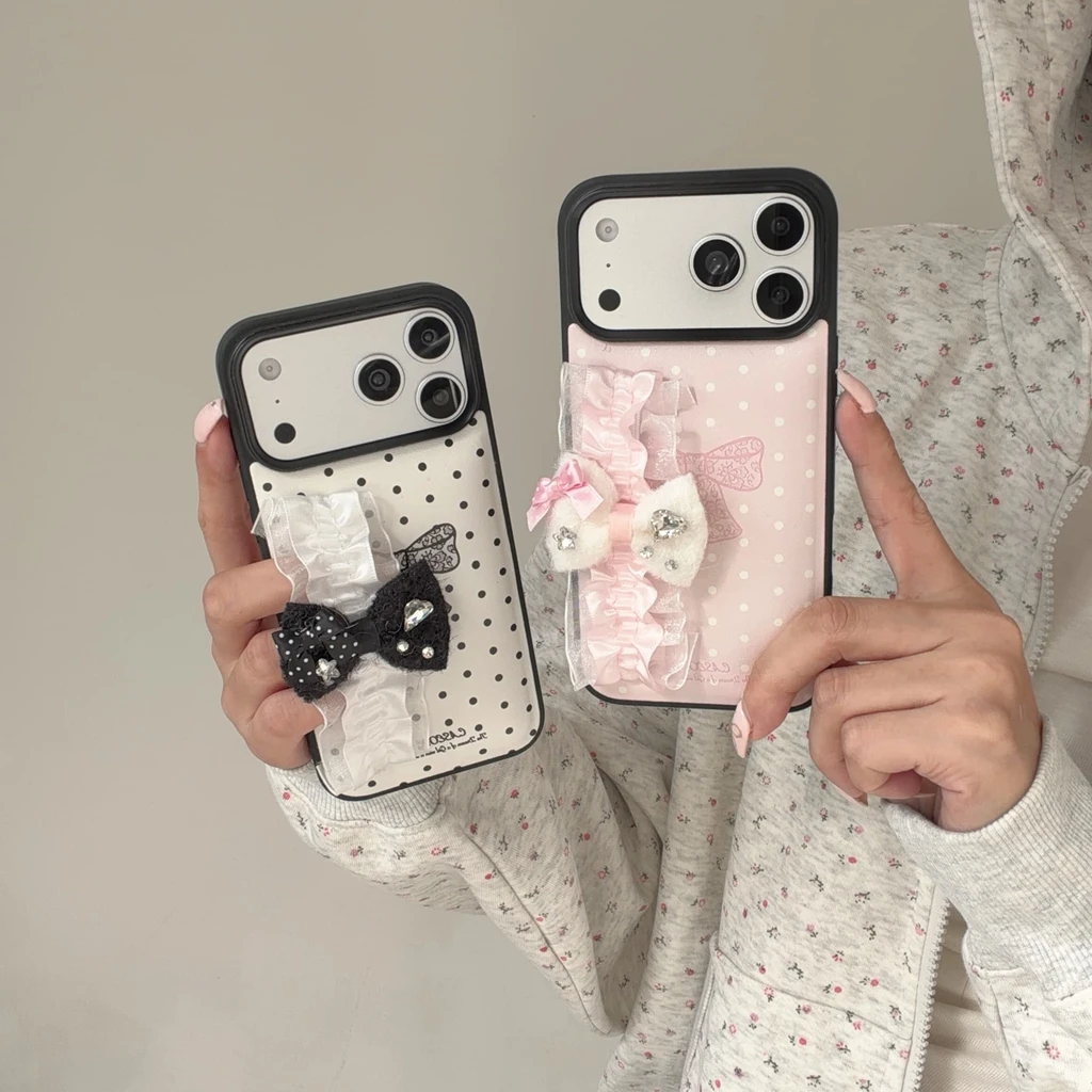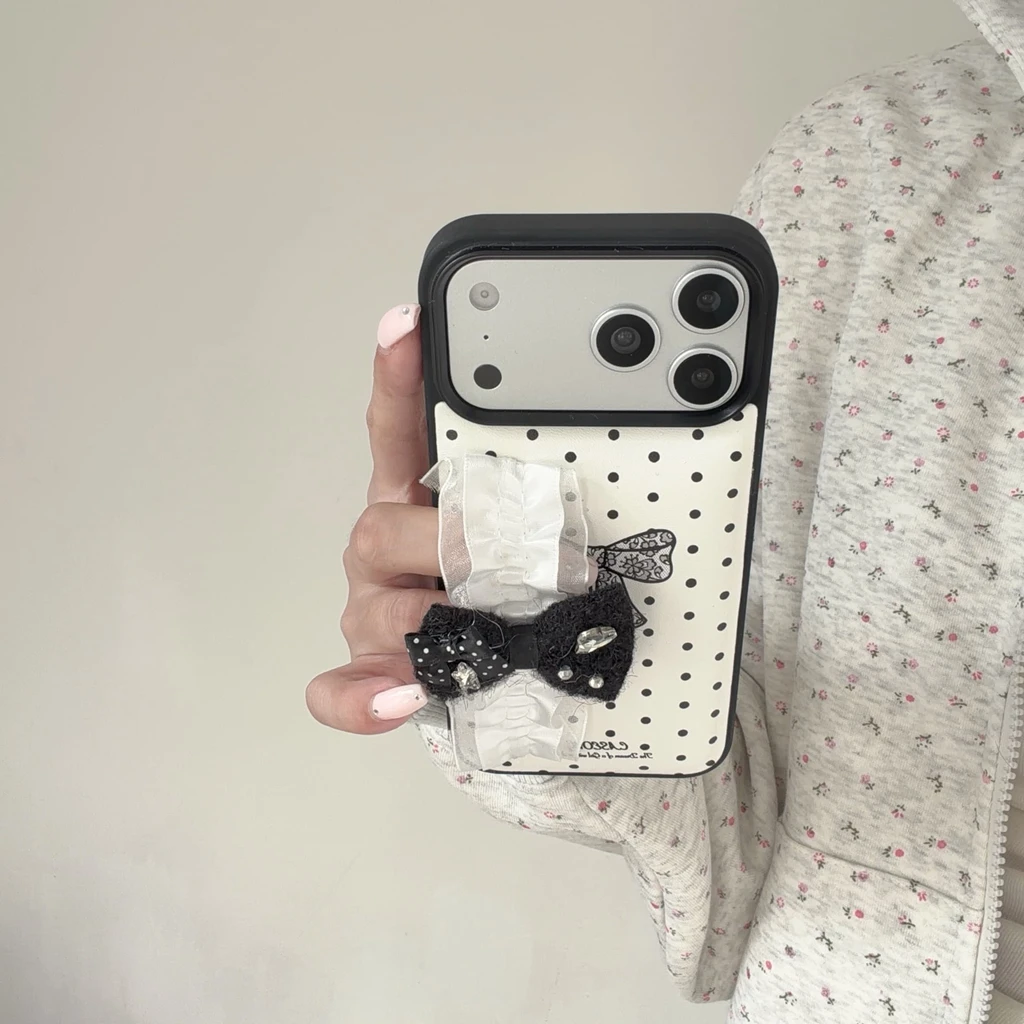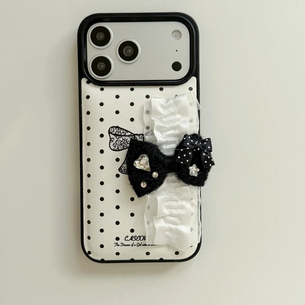【リボンフリルシリーズ】ドット×フリルリボンデザイン iPhoneケース #240527