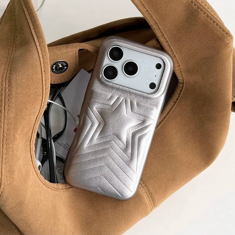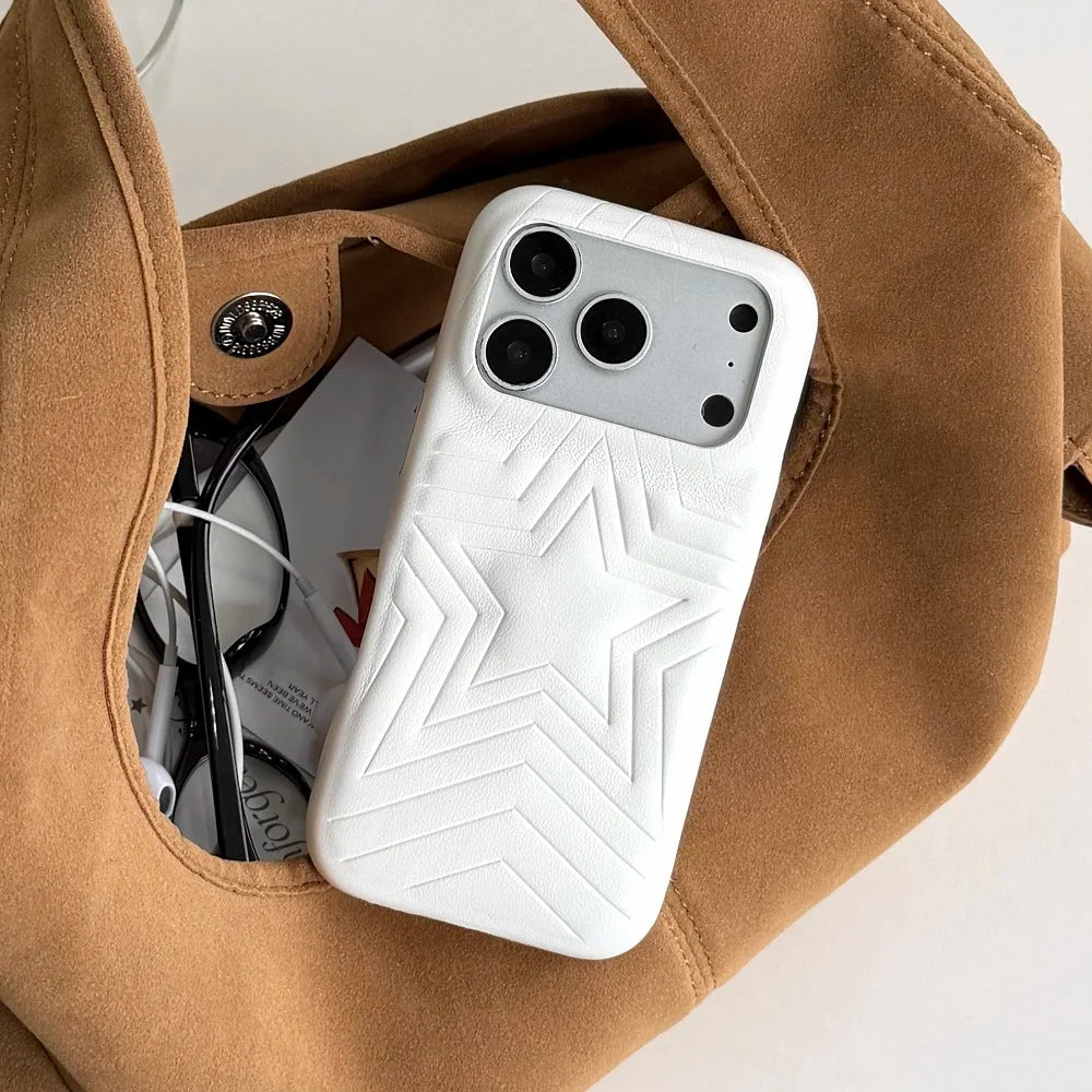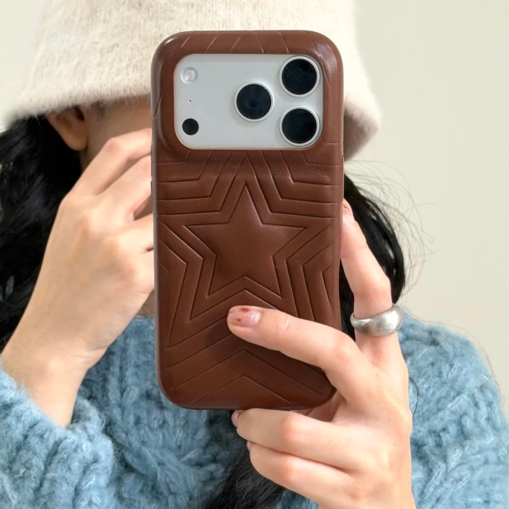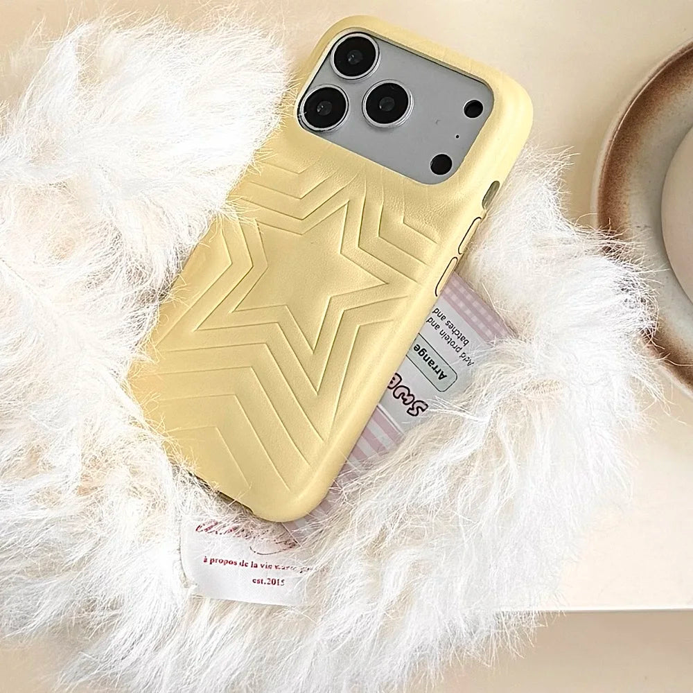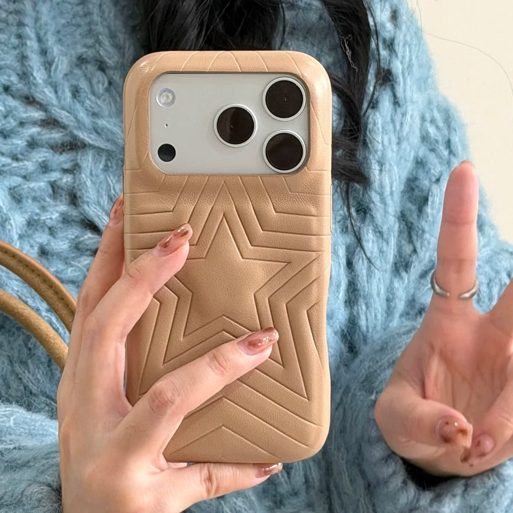【スターエンボス】立体スター 星柄 型押しステッチ レザー調 スマホケース|iPhone対応 #240615
