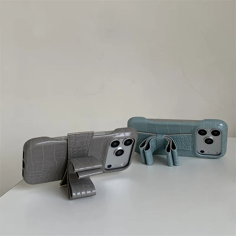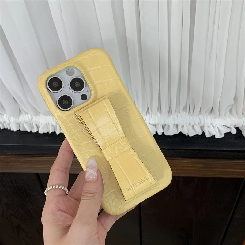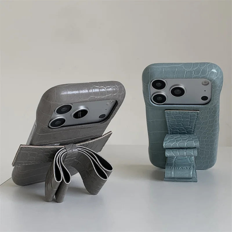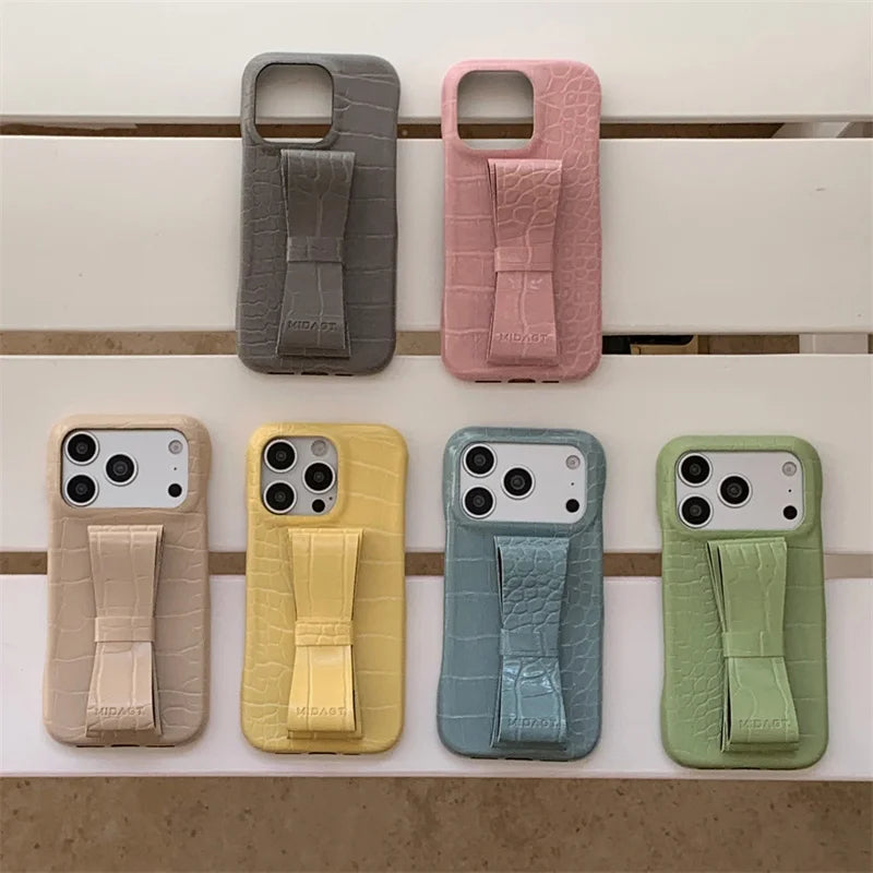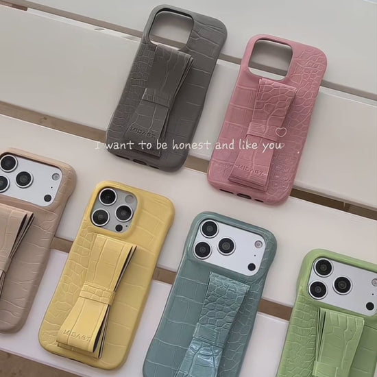 【クロコ調リボングリップ】型押し クロコレザー調 × 立体リボン スマホケース|iPhone対応 #240617