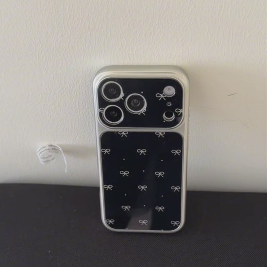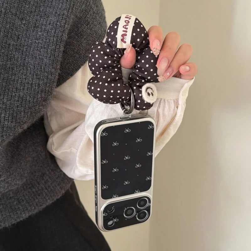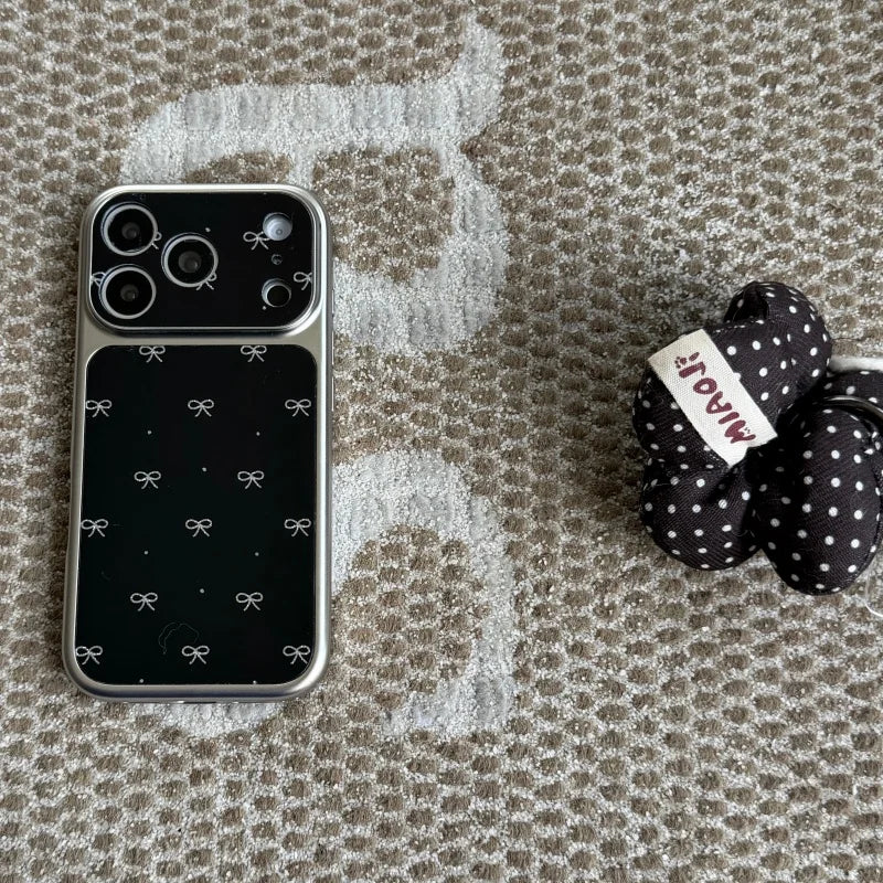 【クラシックリボン】モノトーン リボン総柄 × ボリュームチャーム スマホケース|iPhone対応 #240619