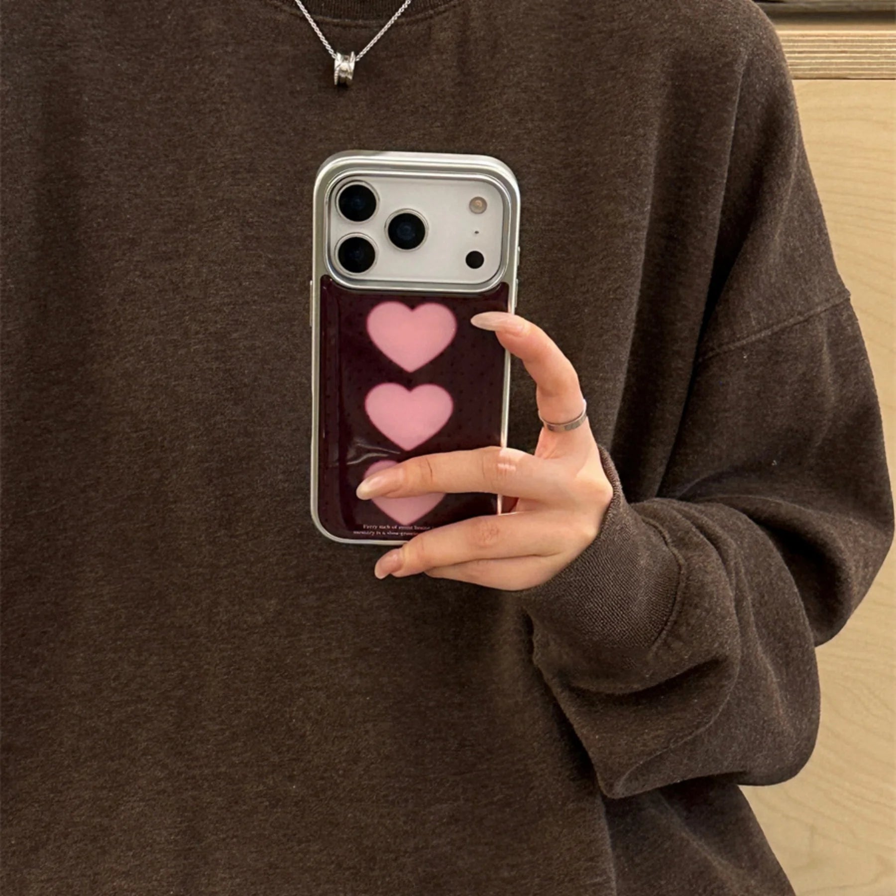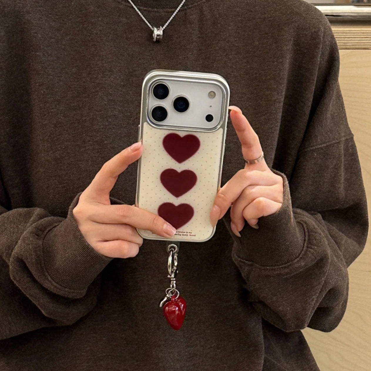 【トリプルハート】ハートモチーフ×揺れチャーム スマホケース|iPhone対応 #240620
