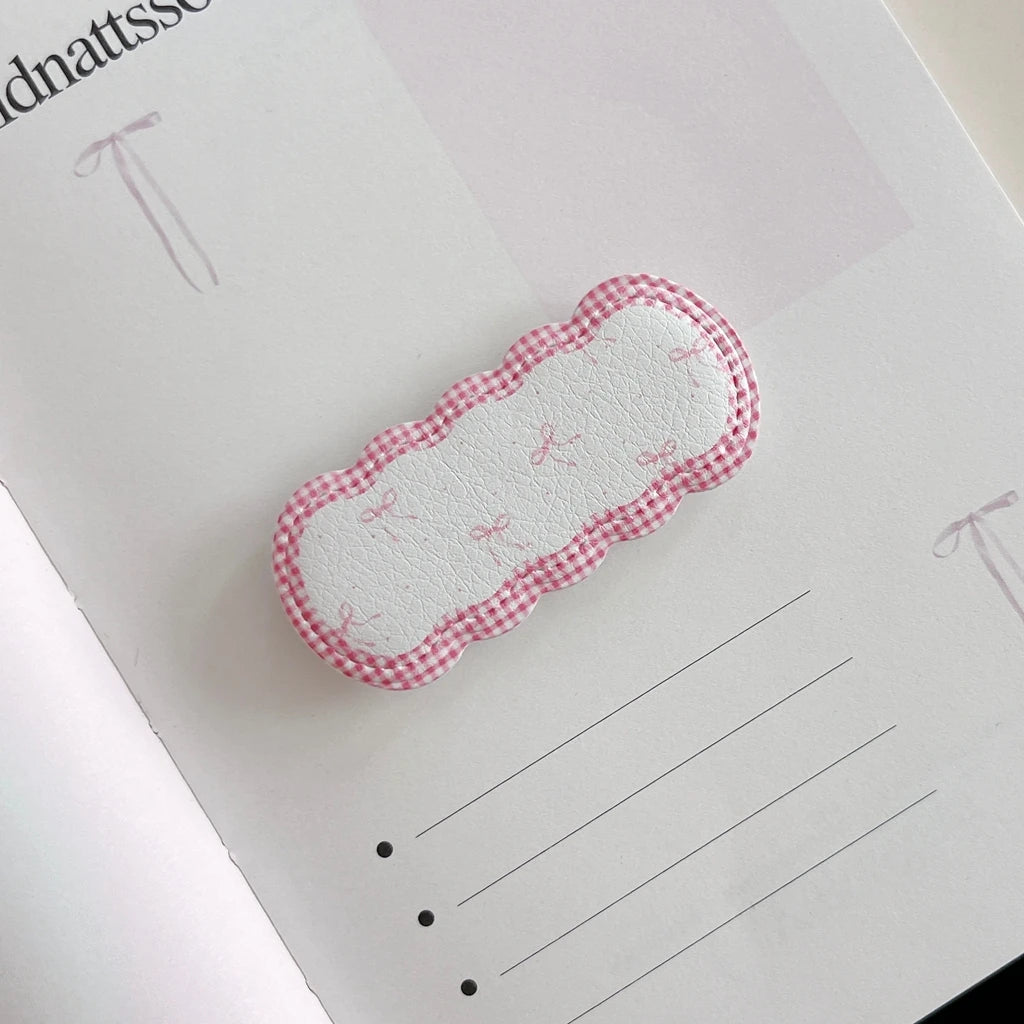 【ピンクギンガムチェック】リボン柄 折りたたみ式ホルダー付き スマホケース|iPhone対応 #240622