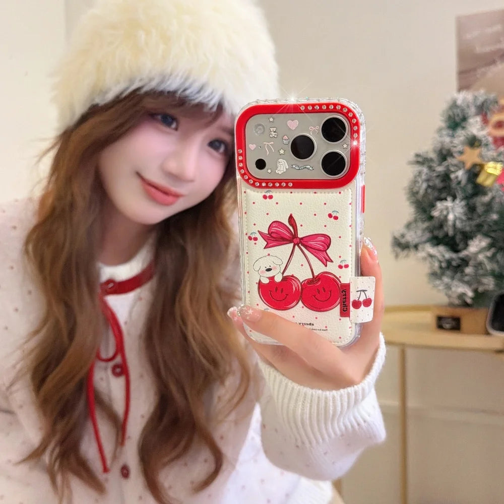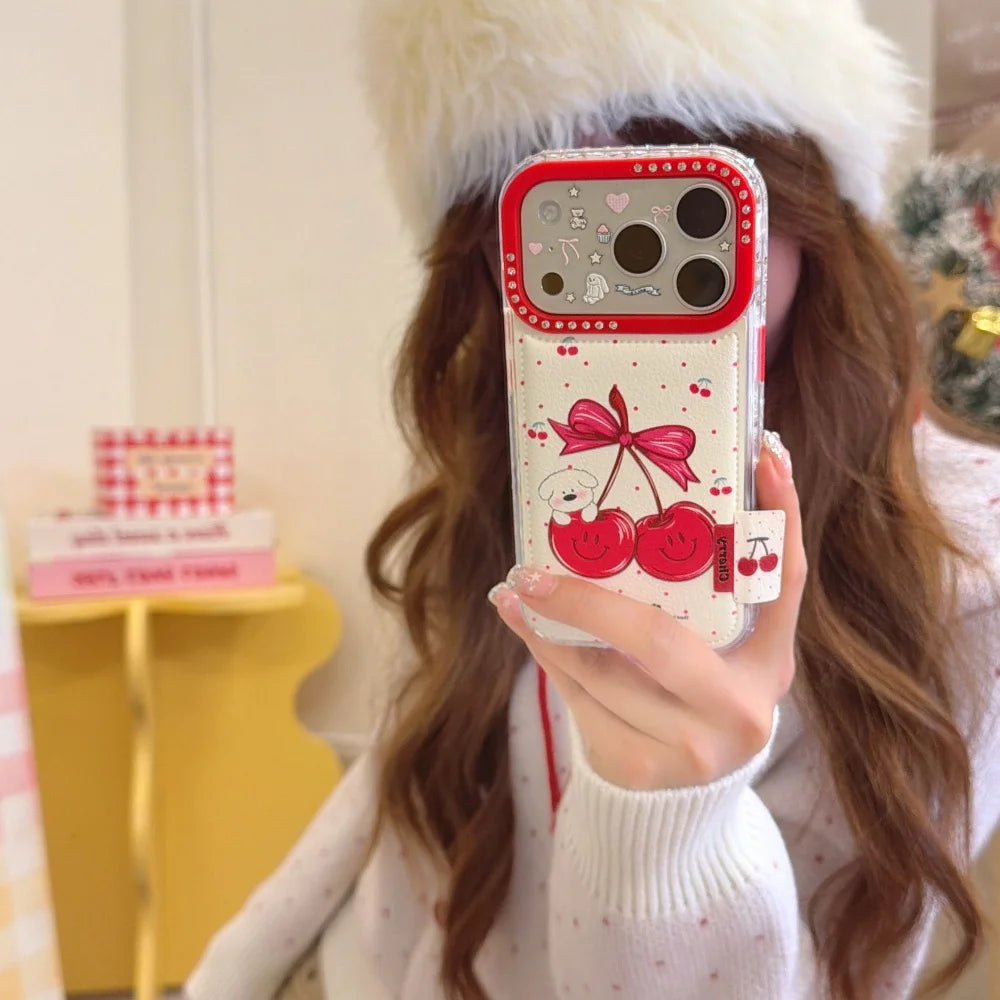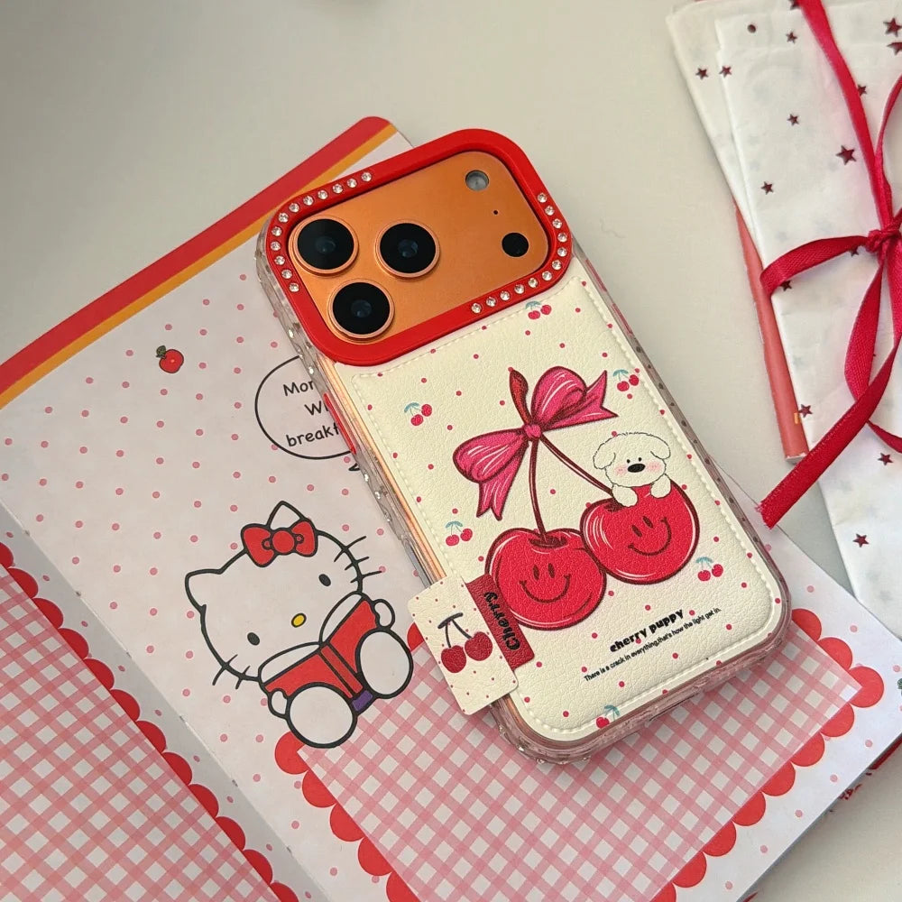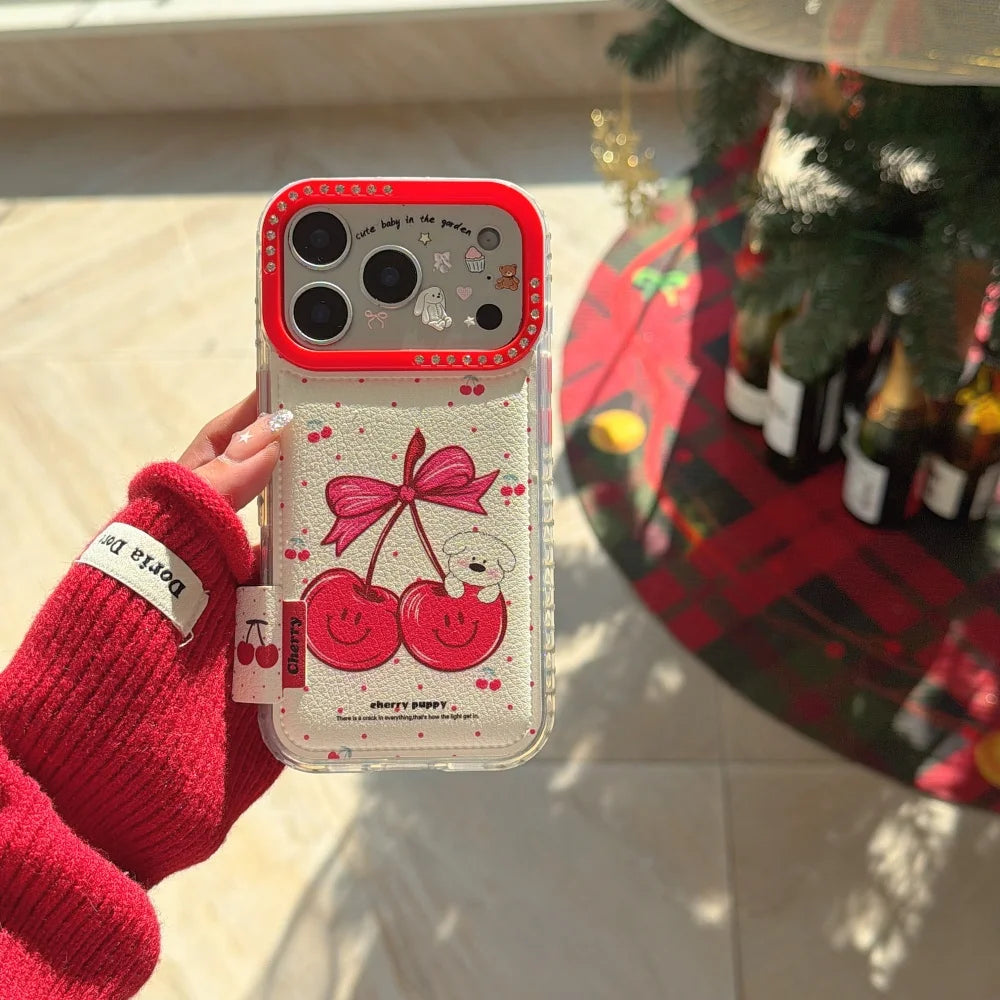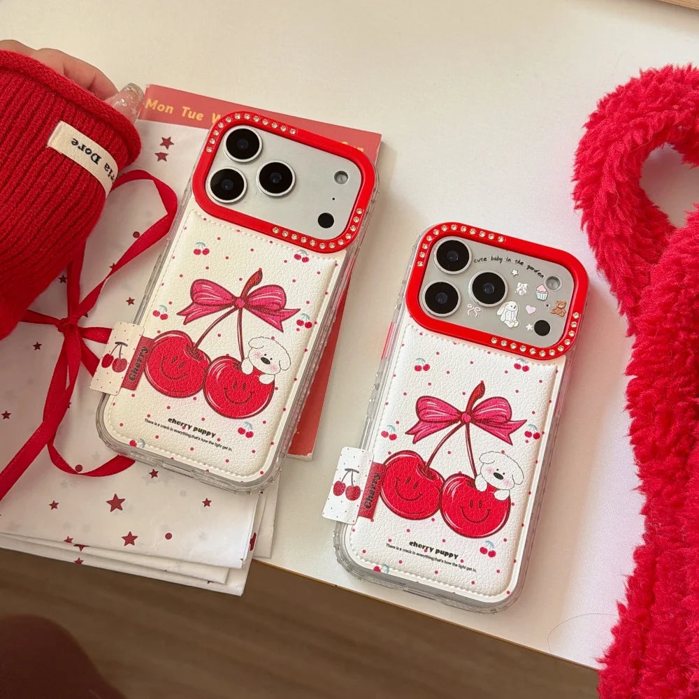 【チェリーリボンドッグ】チェリーデザイン 犬 水玉 ドット スマホケース|iPhone対応 #240627