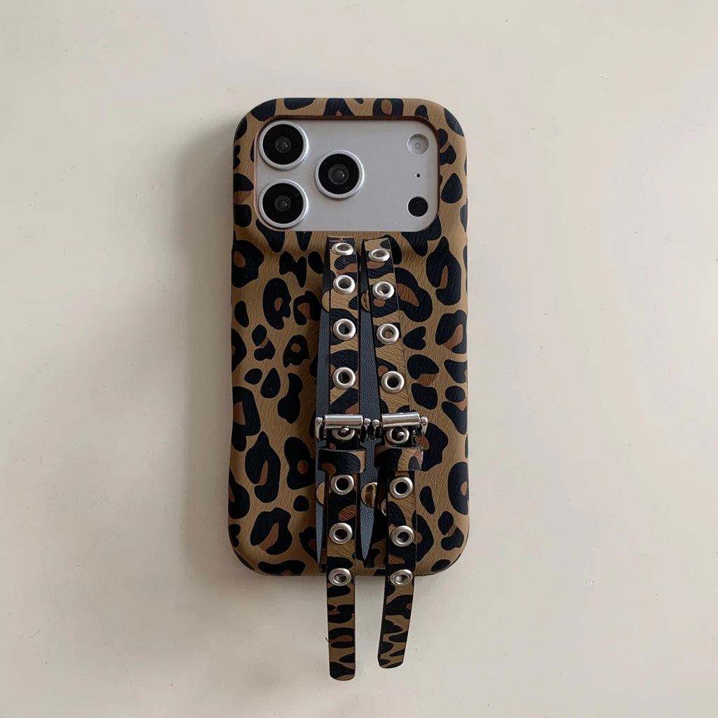 【レザーベルトデザイン】ヴィンテージ風 ダブルハンドストラップ スマホケース|iPhone対応 #240707