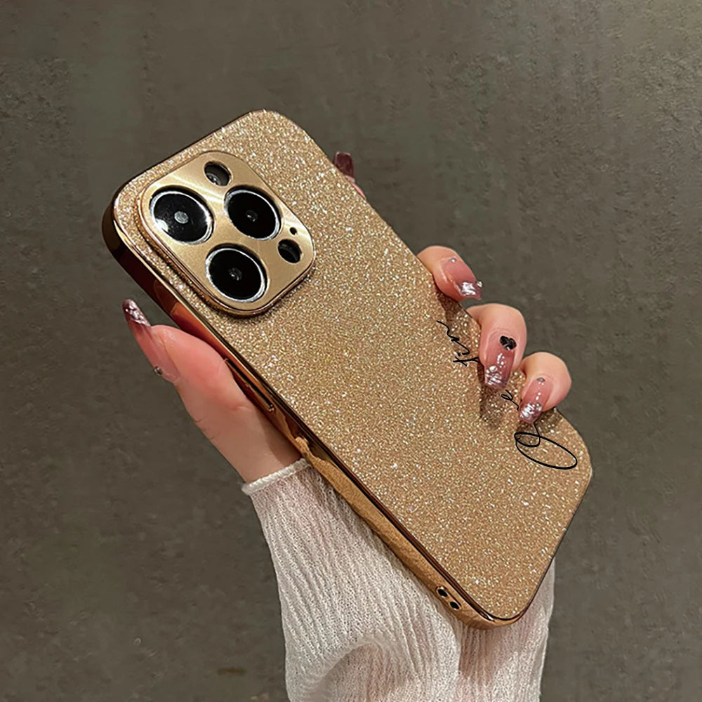 【カスタムシリーズ】ラメグリッター 名入れ スマホケース 縦書き|iPhone対応 #240716