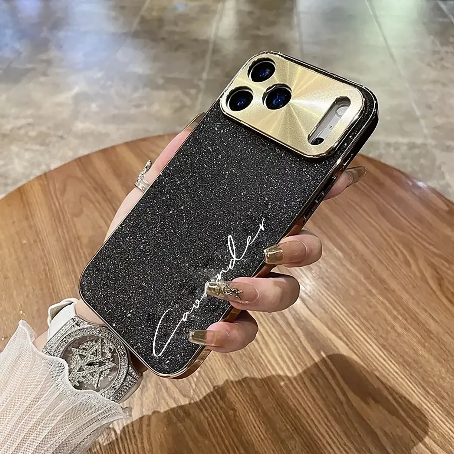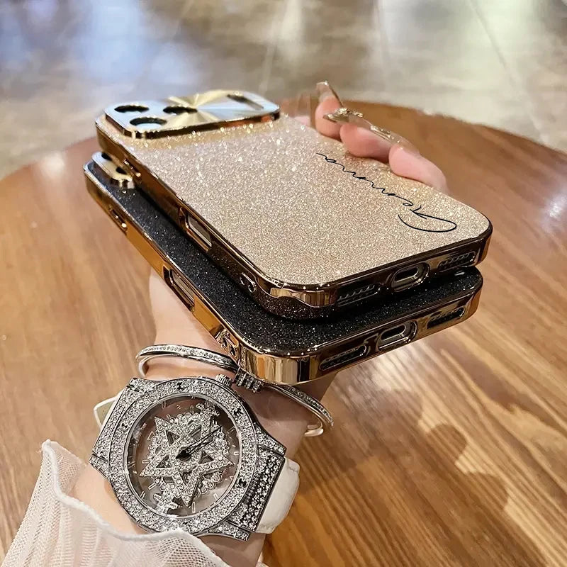 上品な筆記体ネームをあしらった華やかなスマホケース✨