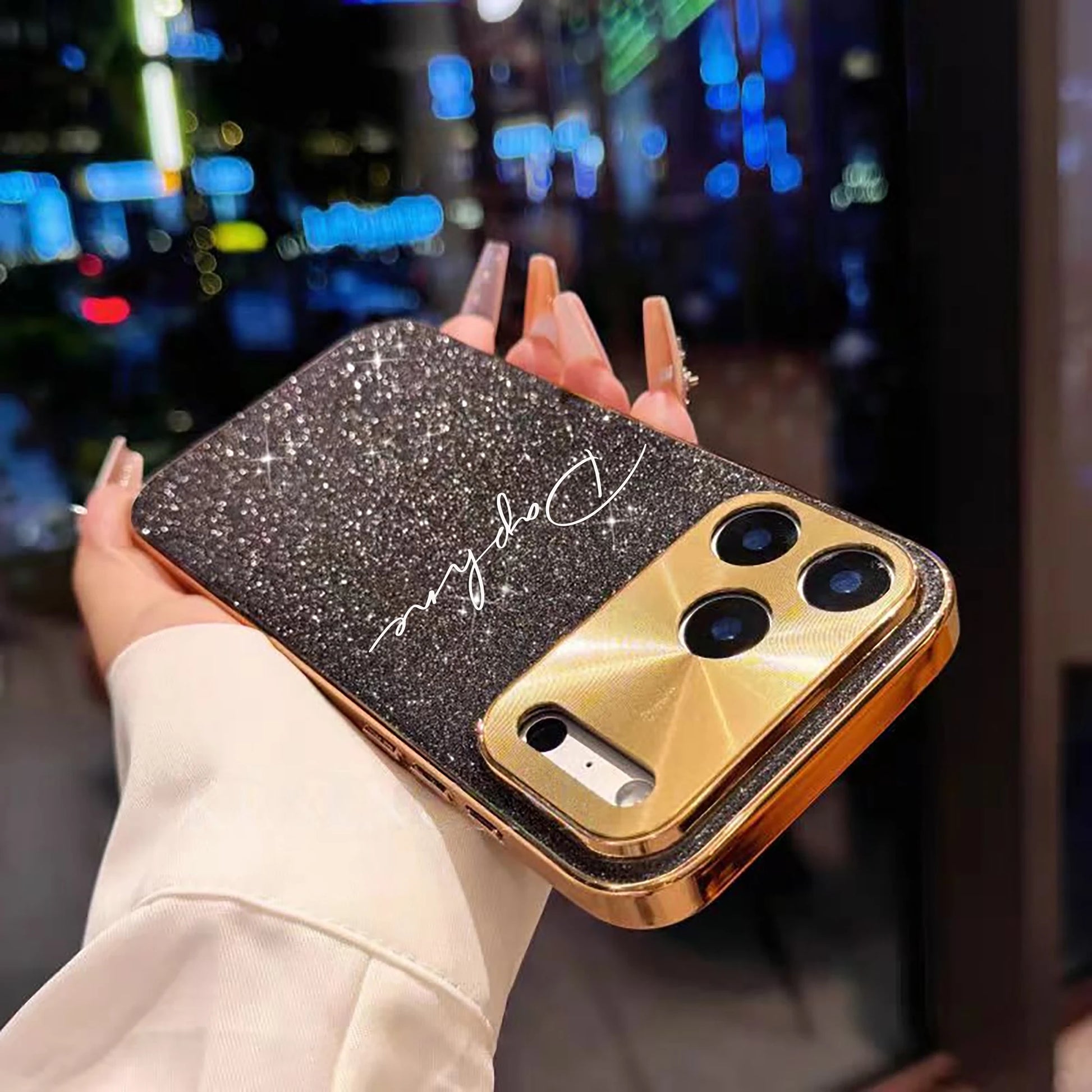 【カスタムシリーズ】ラメグリッター 名入れ スマホケース 横書き|iPhone対応 #240717