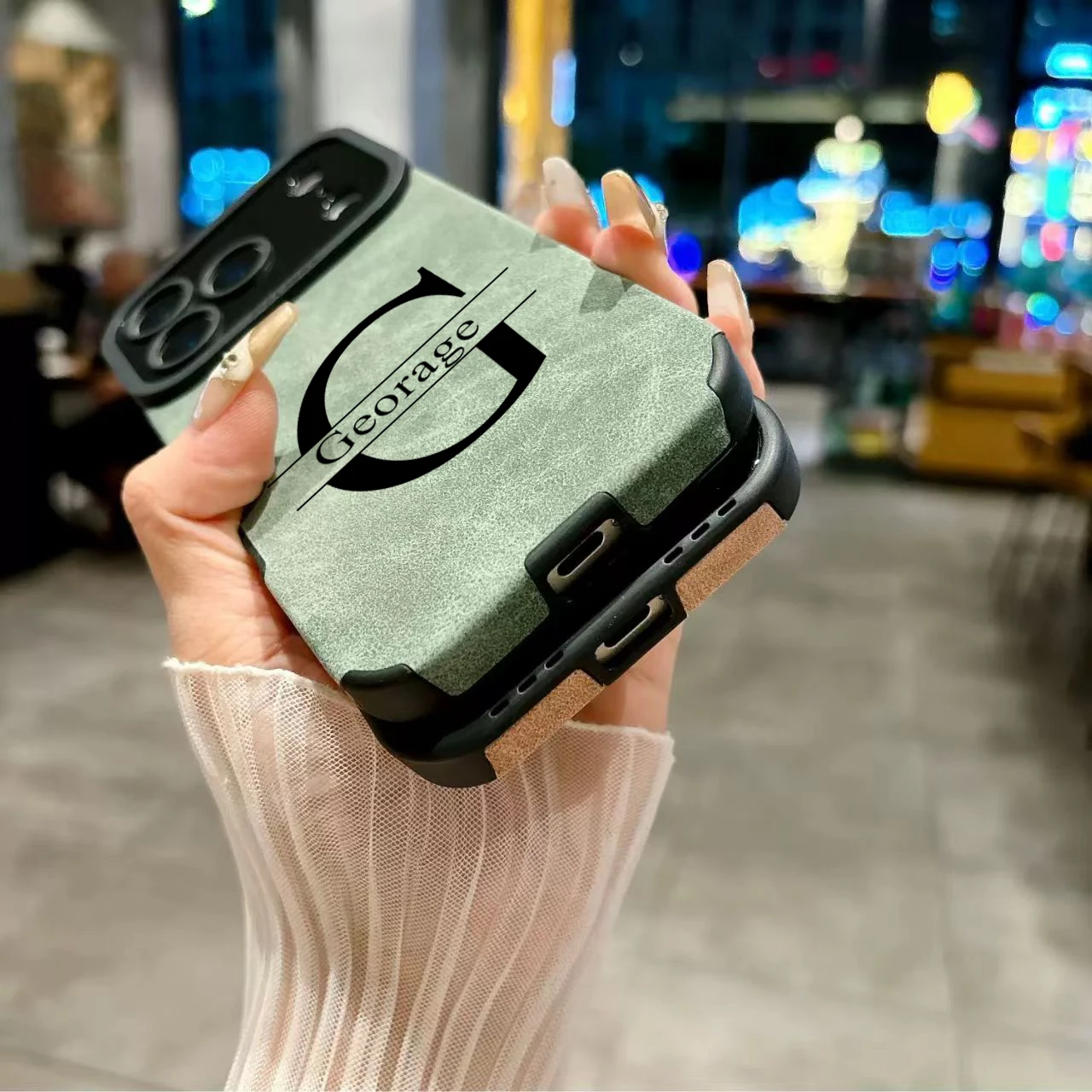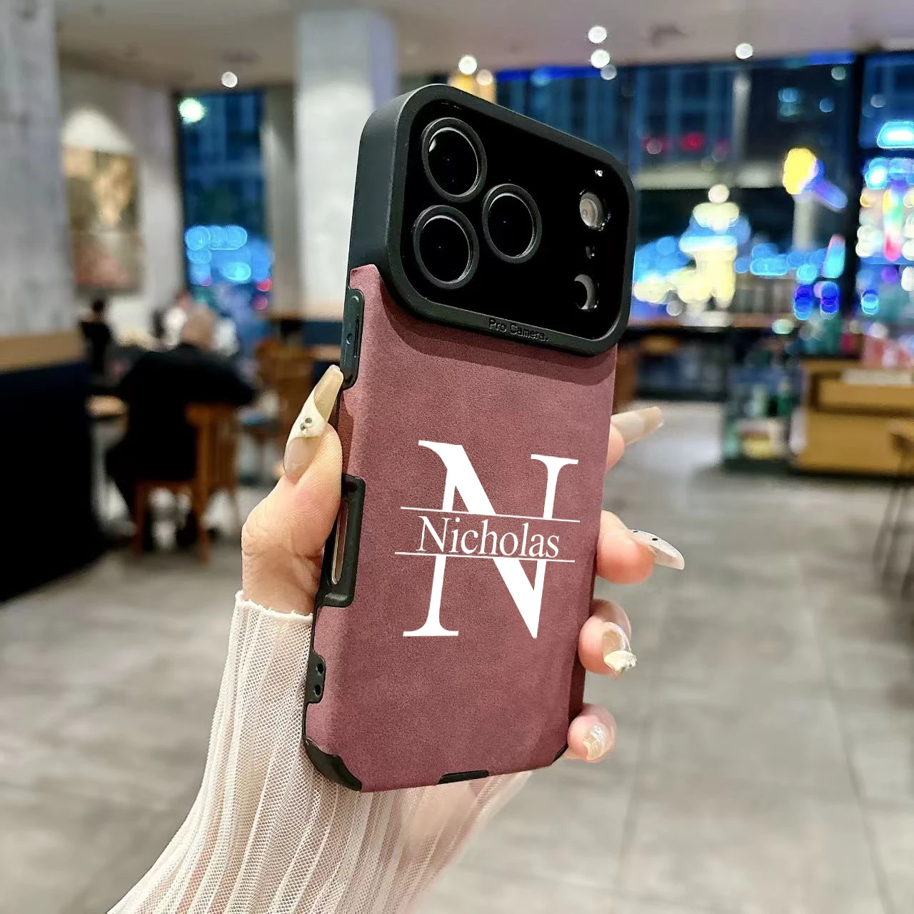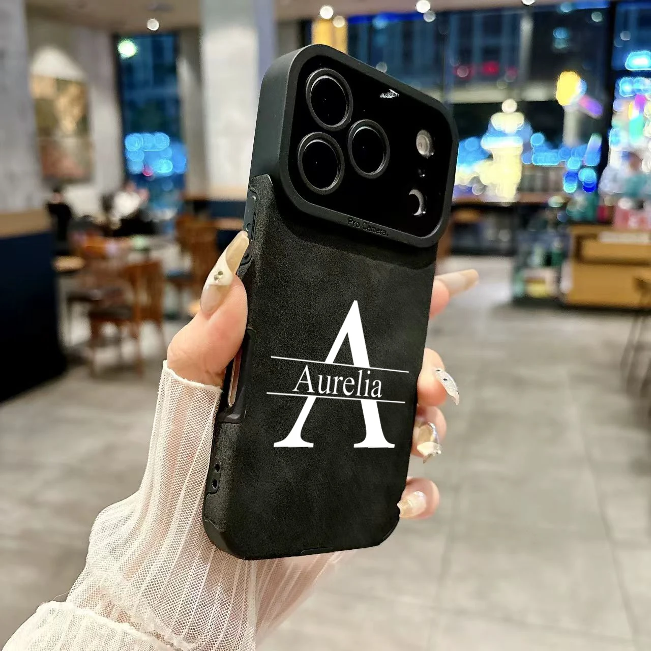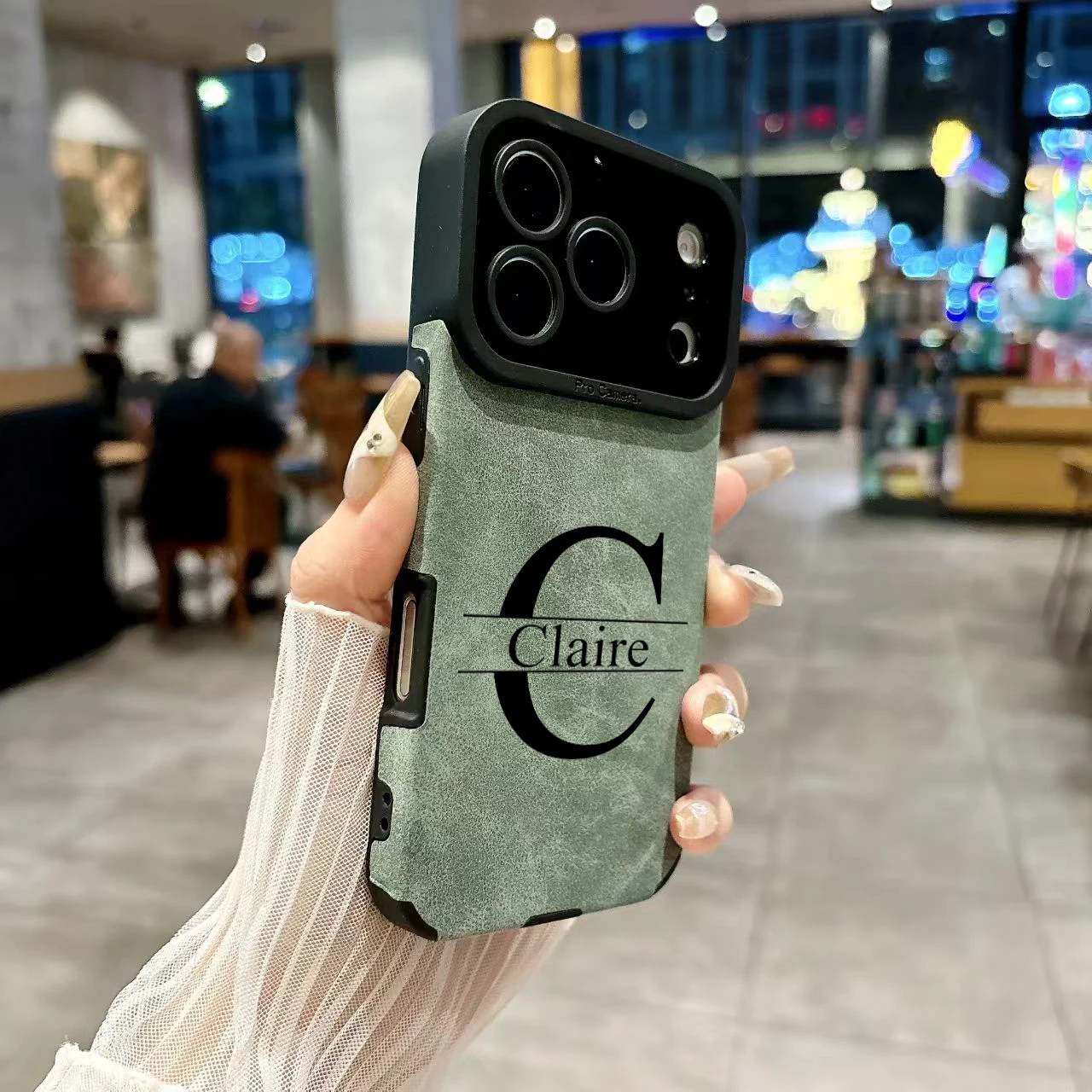 【カスタムシリーズ】ビッグ頭文字イニシャル 名入れ レザー調 ソフトスマホケース|iPhone対応 #240721