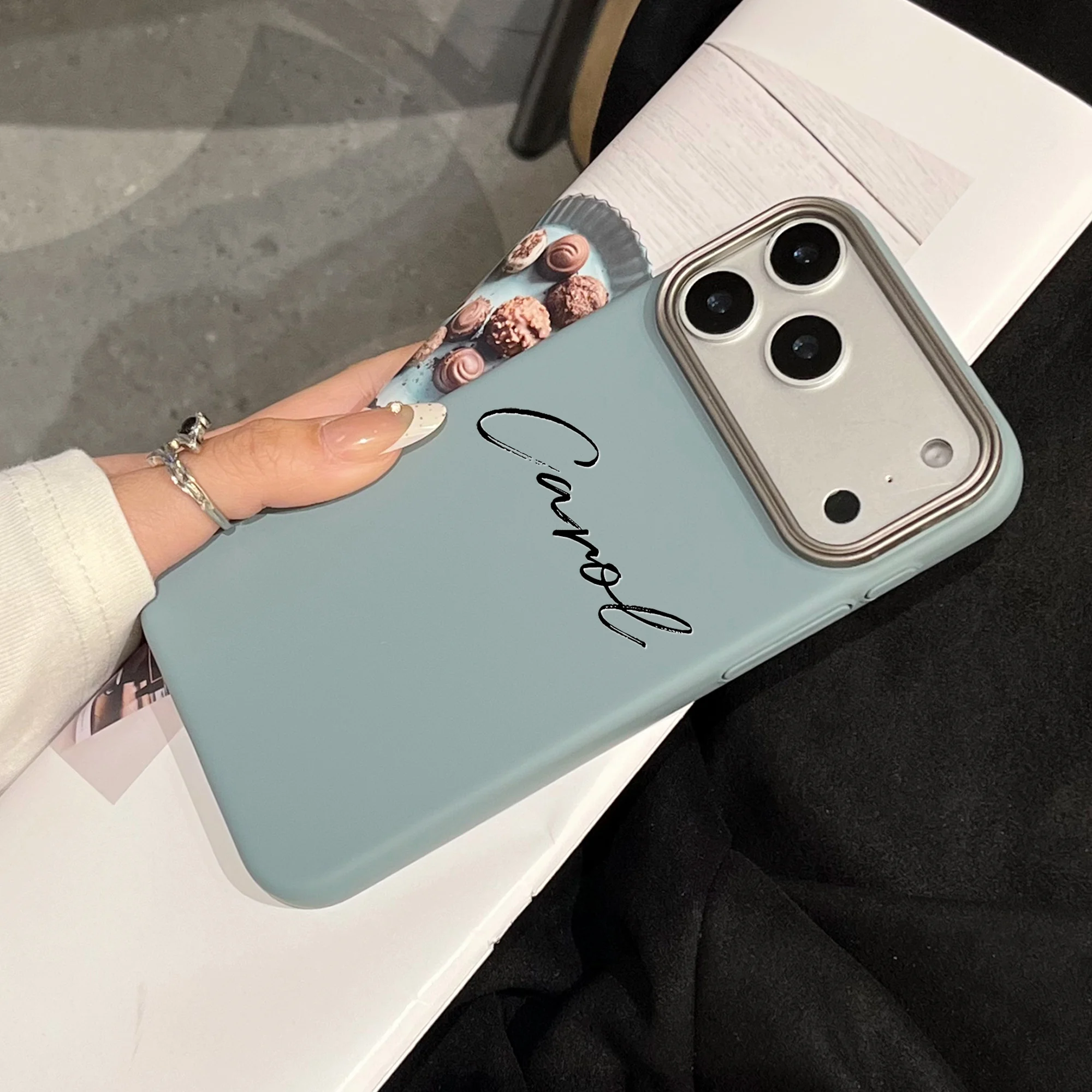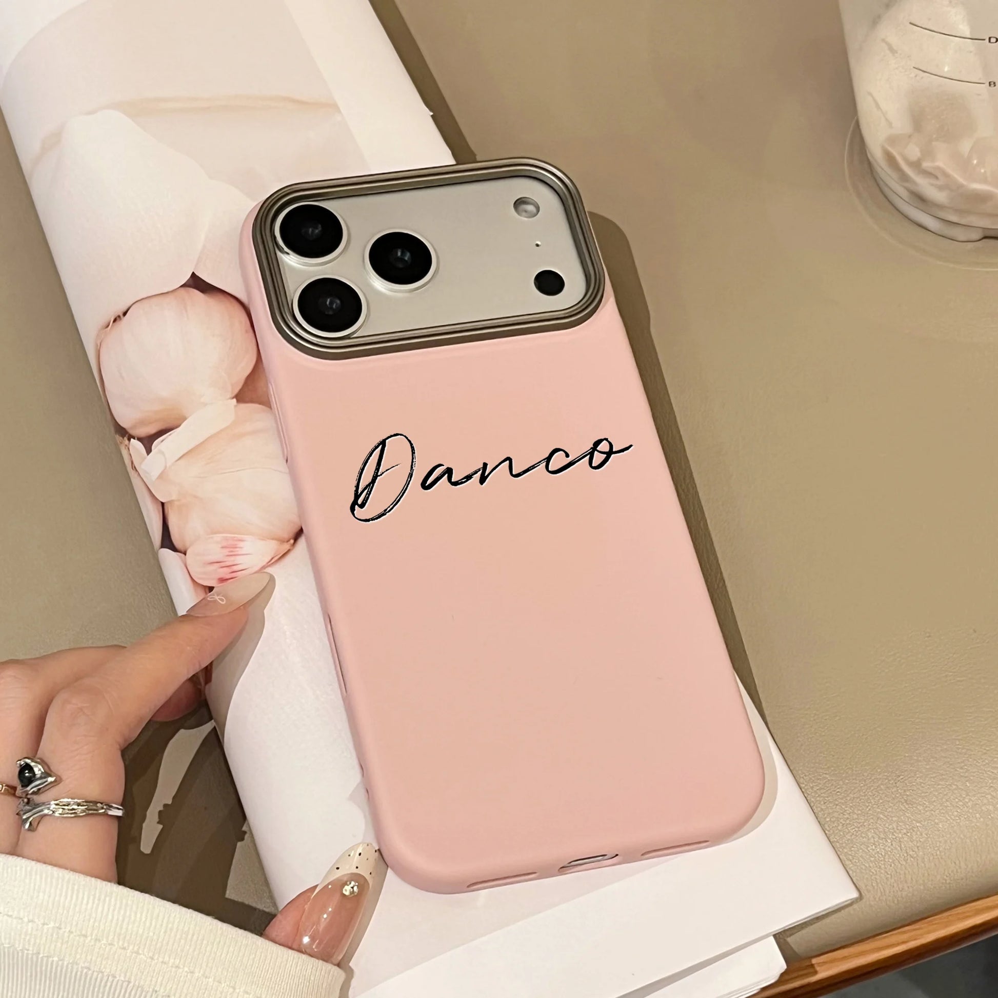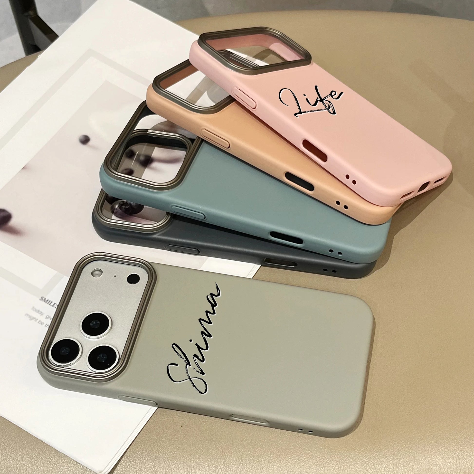 縦書きの筆記体名入れが映える大人可愛いスマホケース🤍