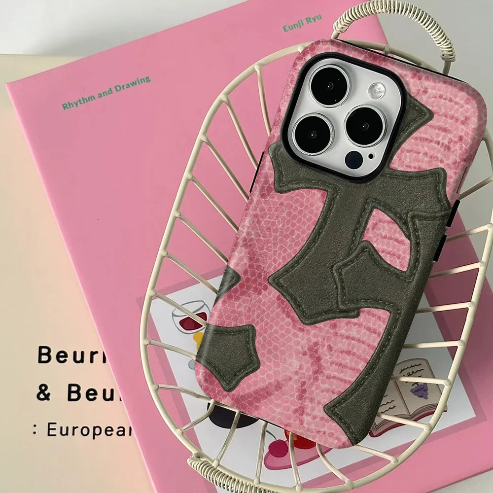 クロスモチーフが主役になった存在感抜群のスマホケース。
