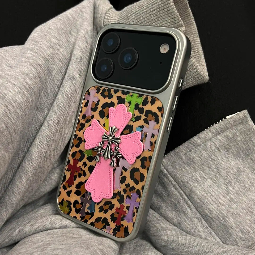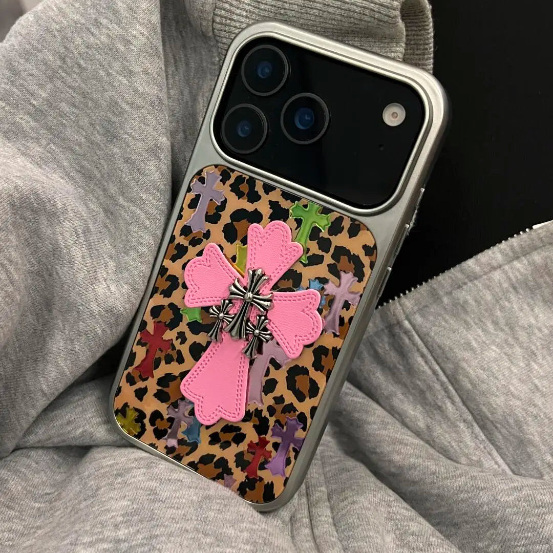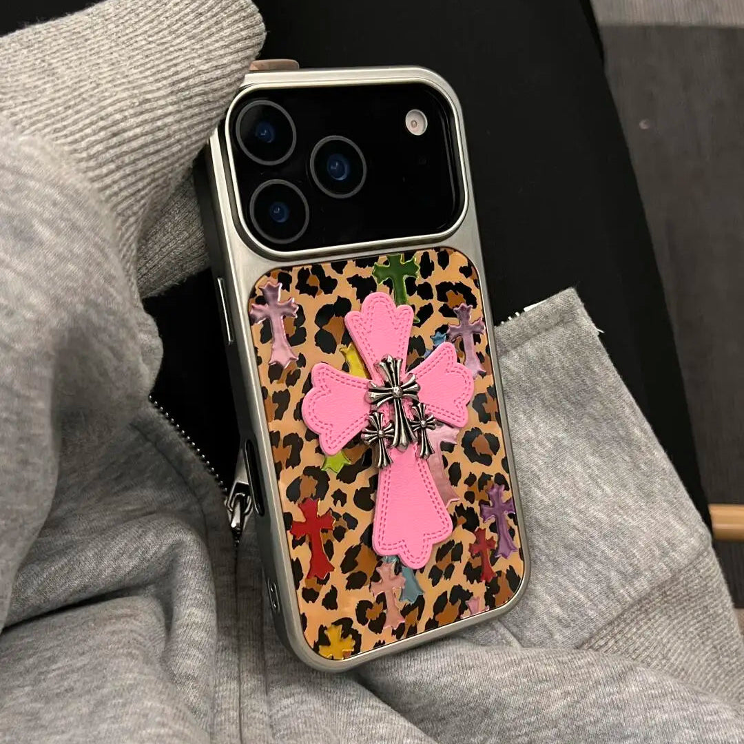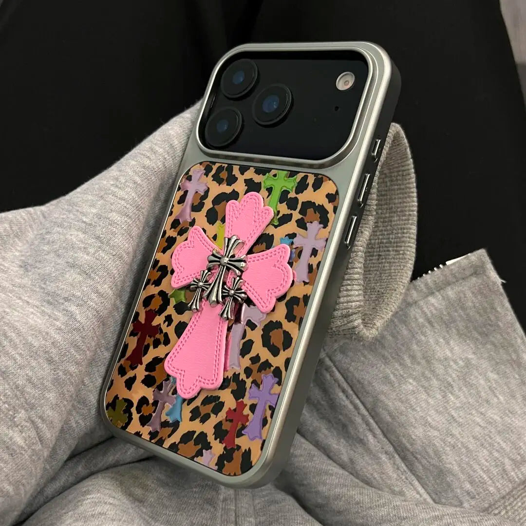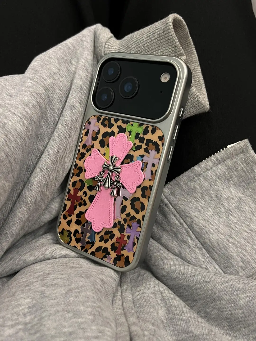 レオパード柄にピンクのクロスモチーフを組み合わせた、甘辛ミックスなデザイン🖤