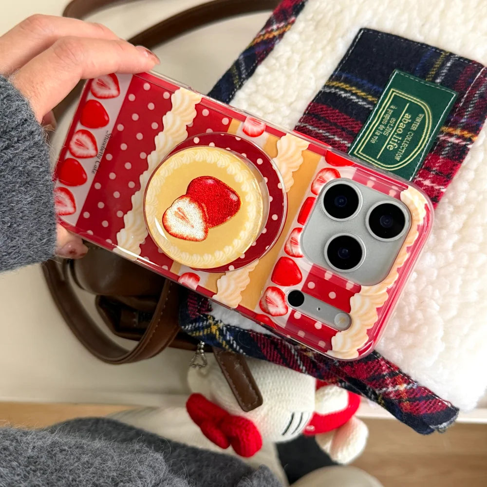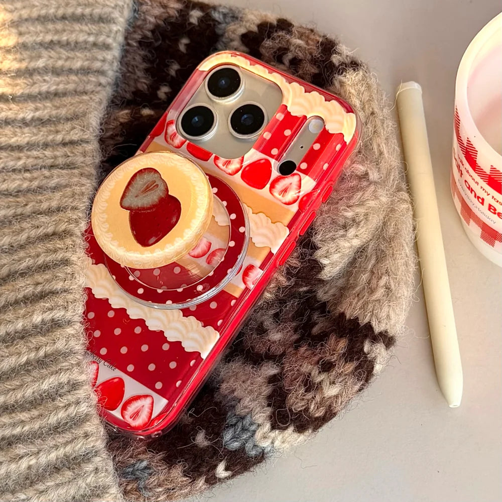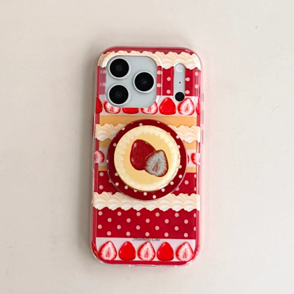 【Magnet内蔵】ストロベリーケーキ スイーツモチーフ × ポップソケット スマホケース|iPhone対応 #240803