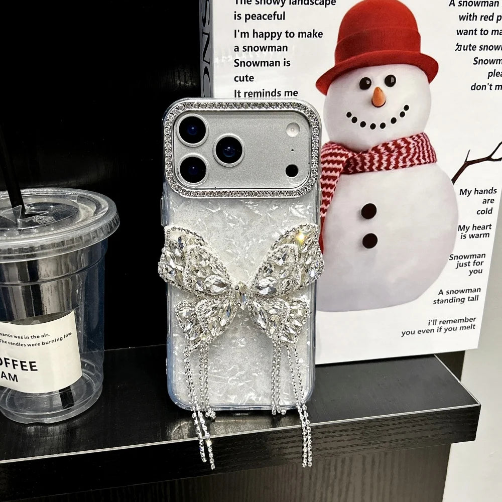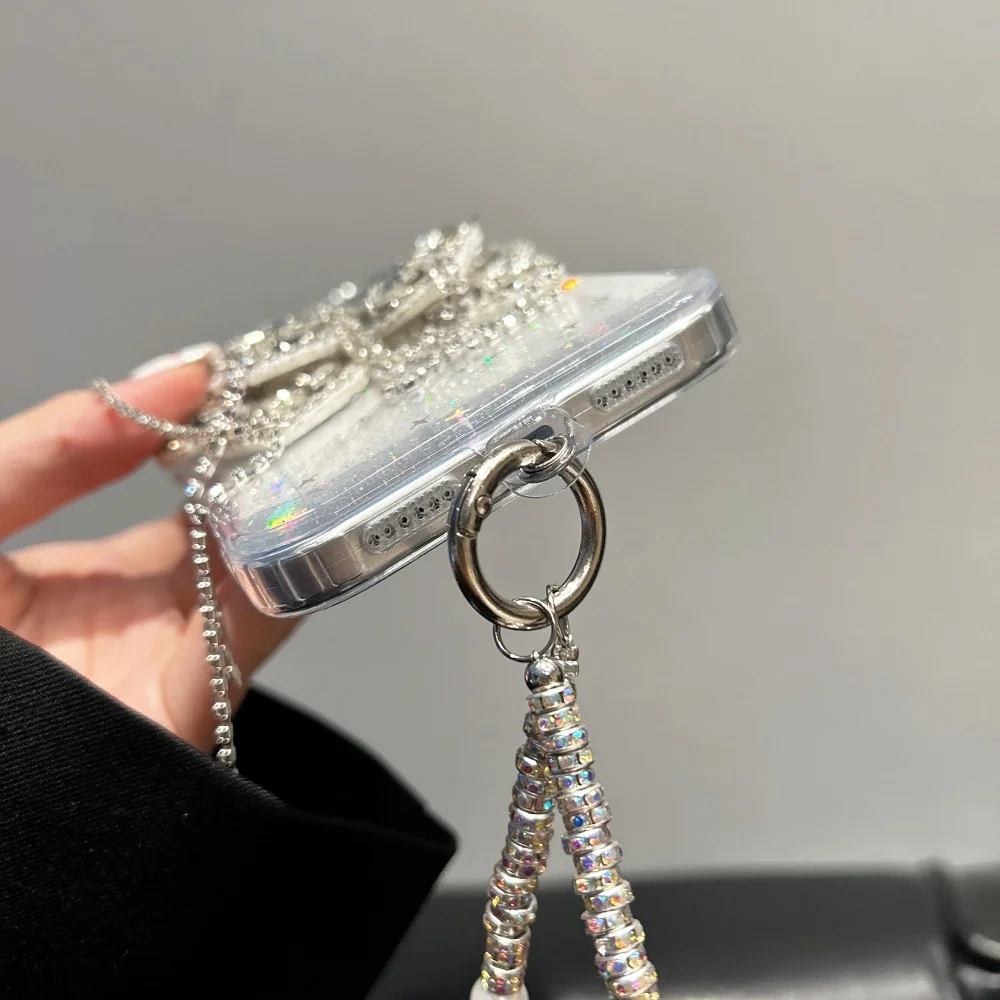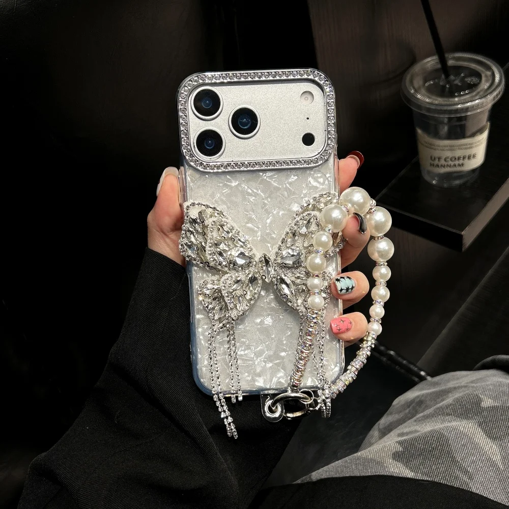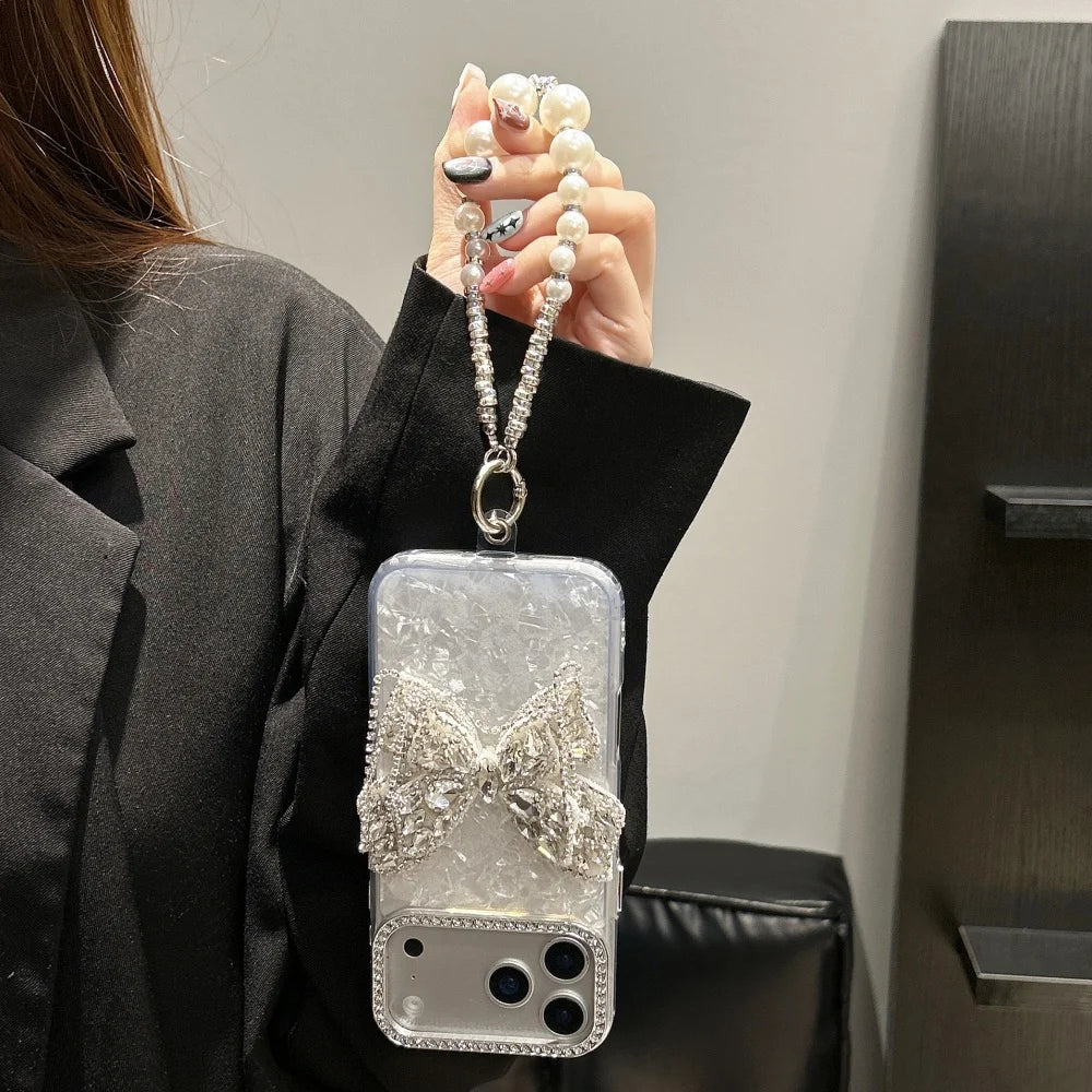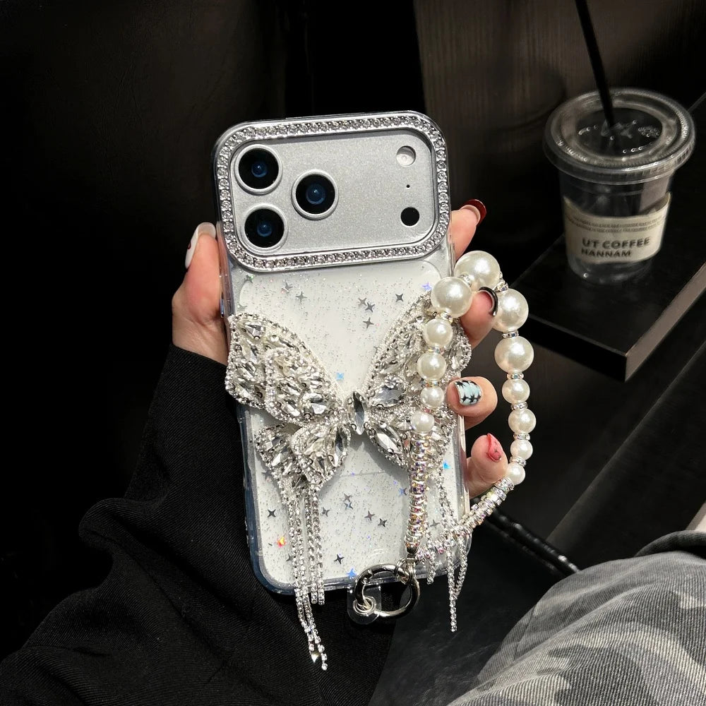 【グリッターバタフライ】キラキラ 蝶々 × ジュエリーチェーン スマホケース|iPhone対応 #240807