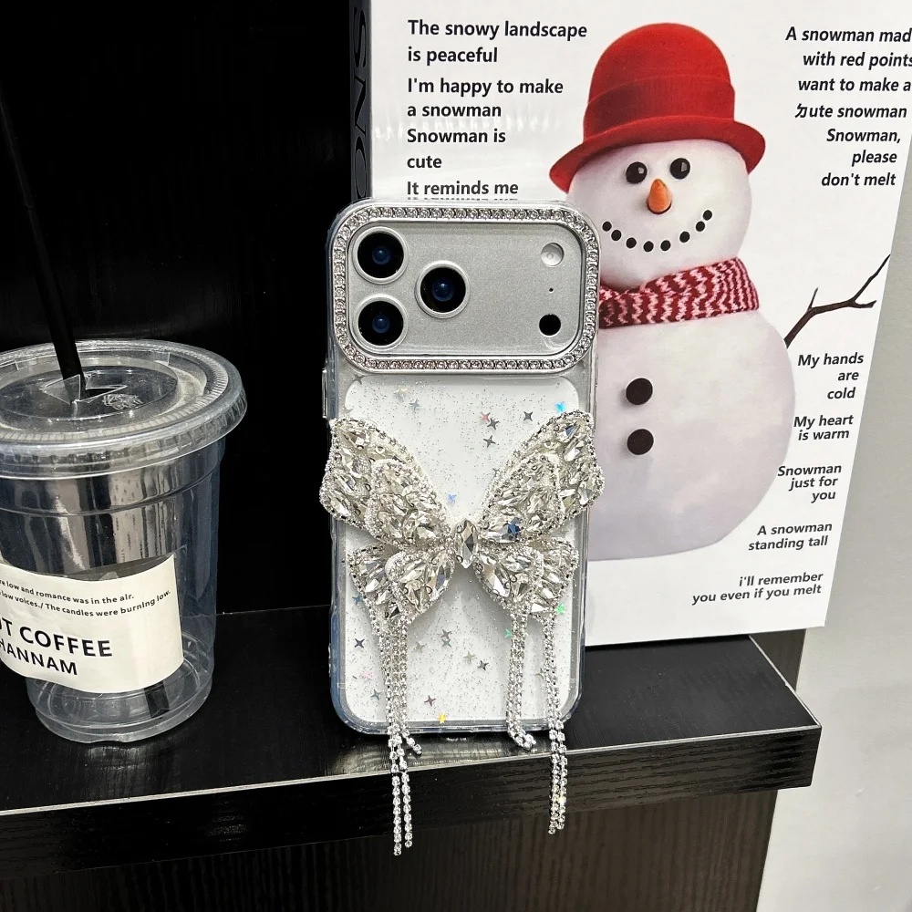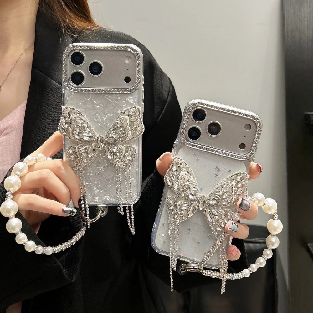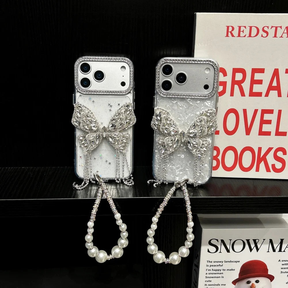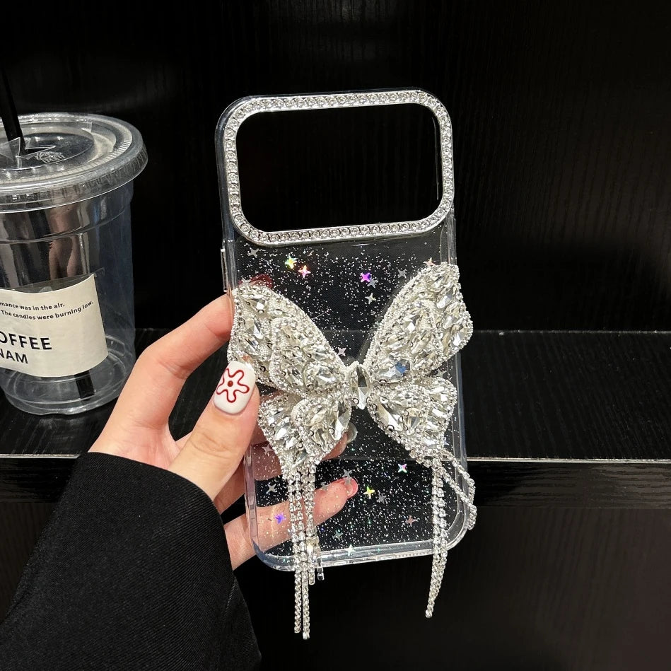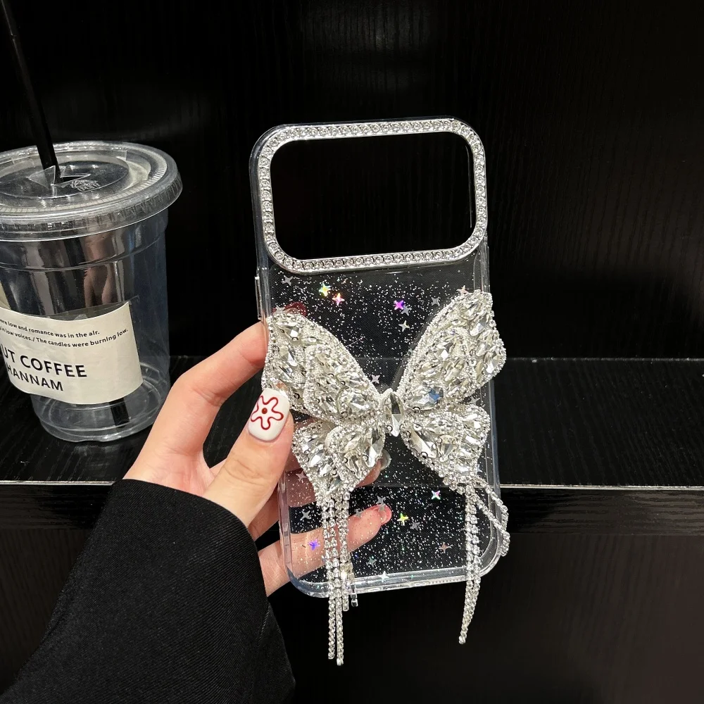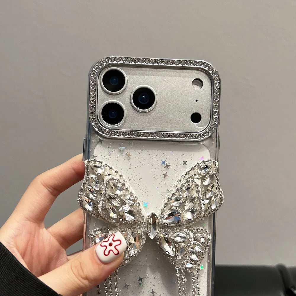 【グリッターバタフライ】キラキラ 蝶々 × ジュエリーチェーン スマホケース|iPhone対応 #240807