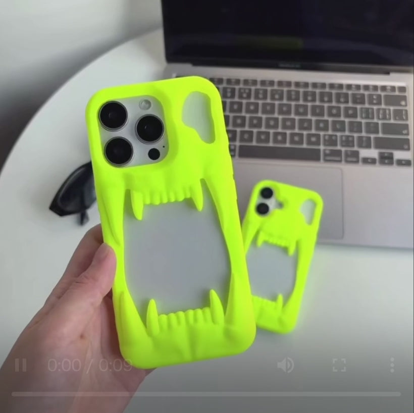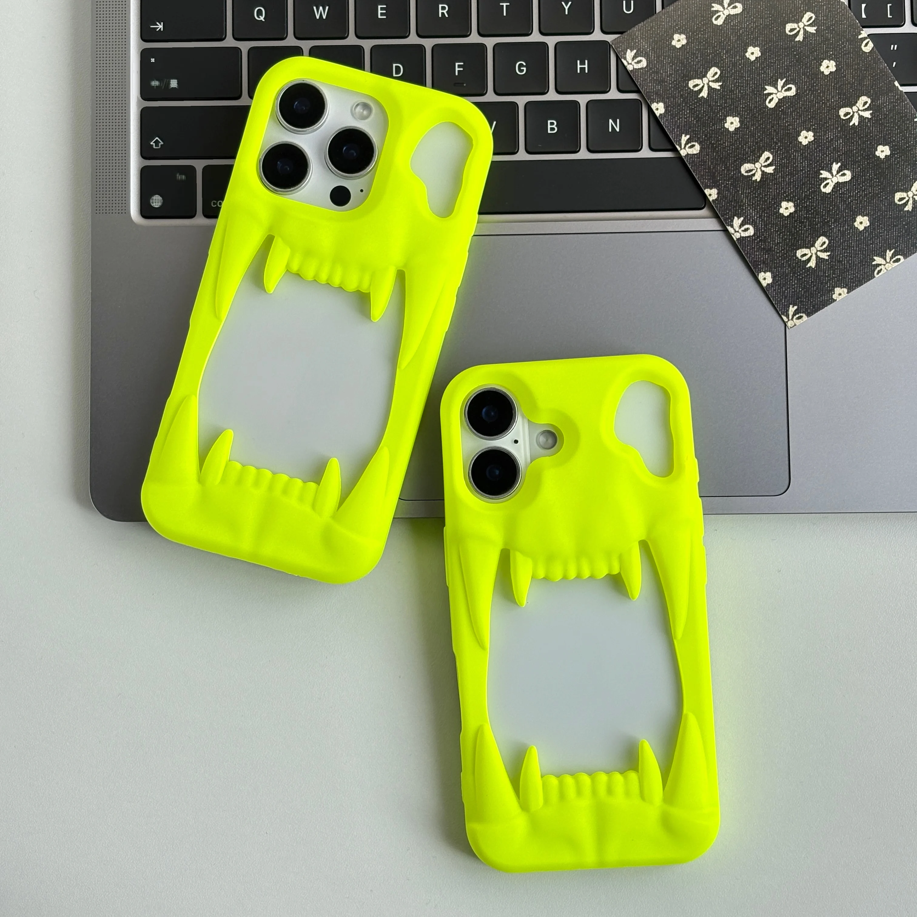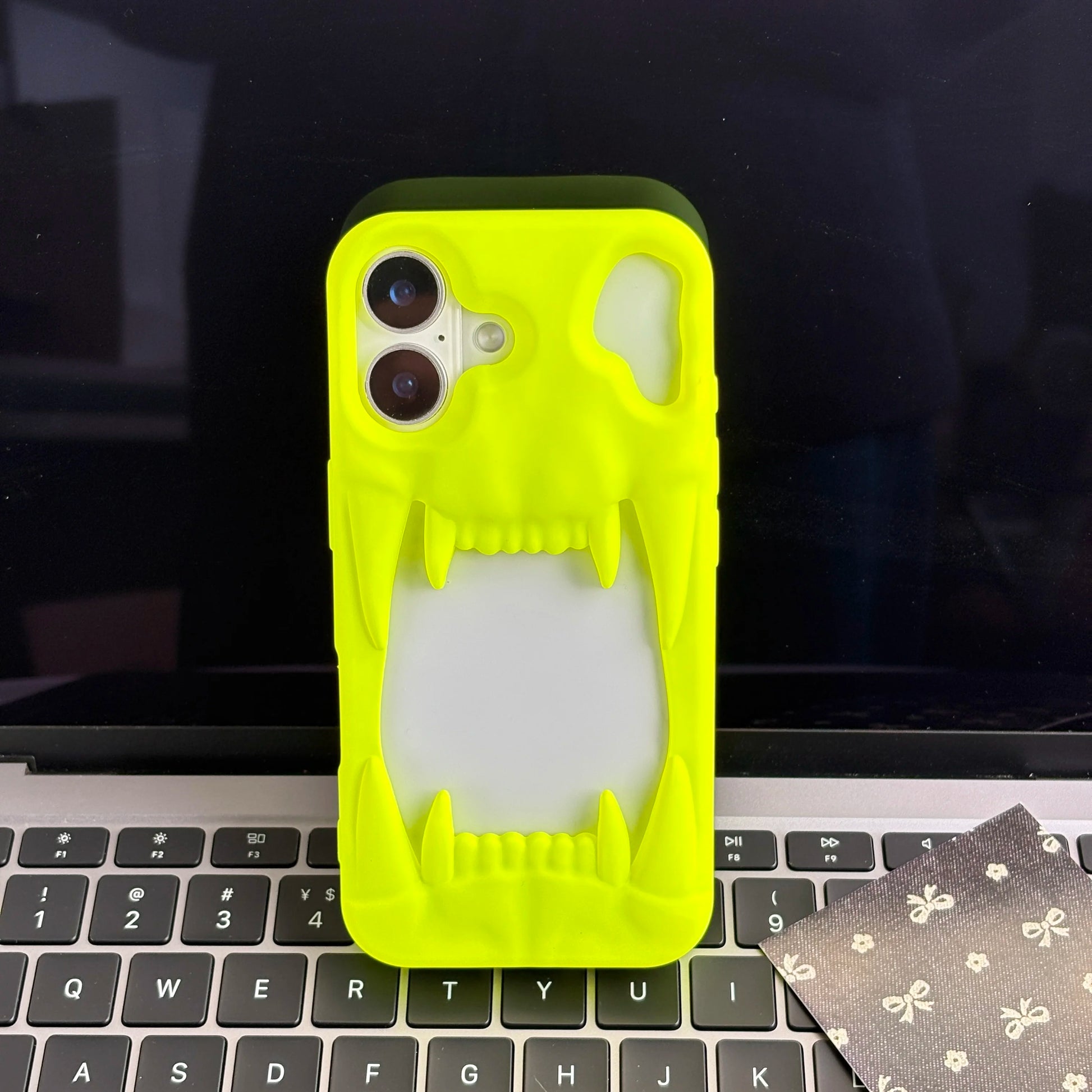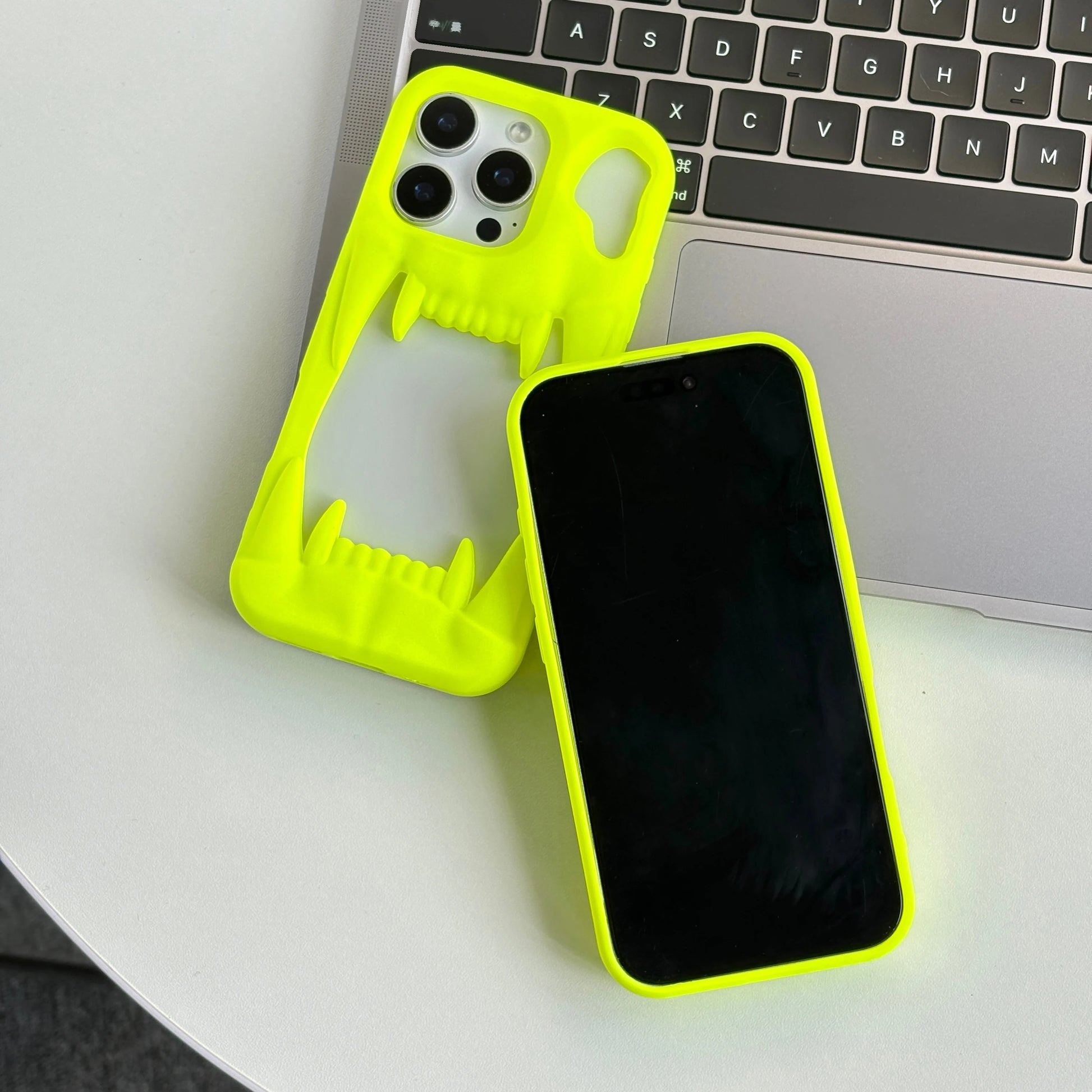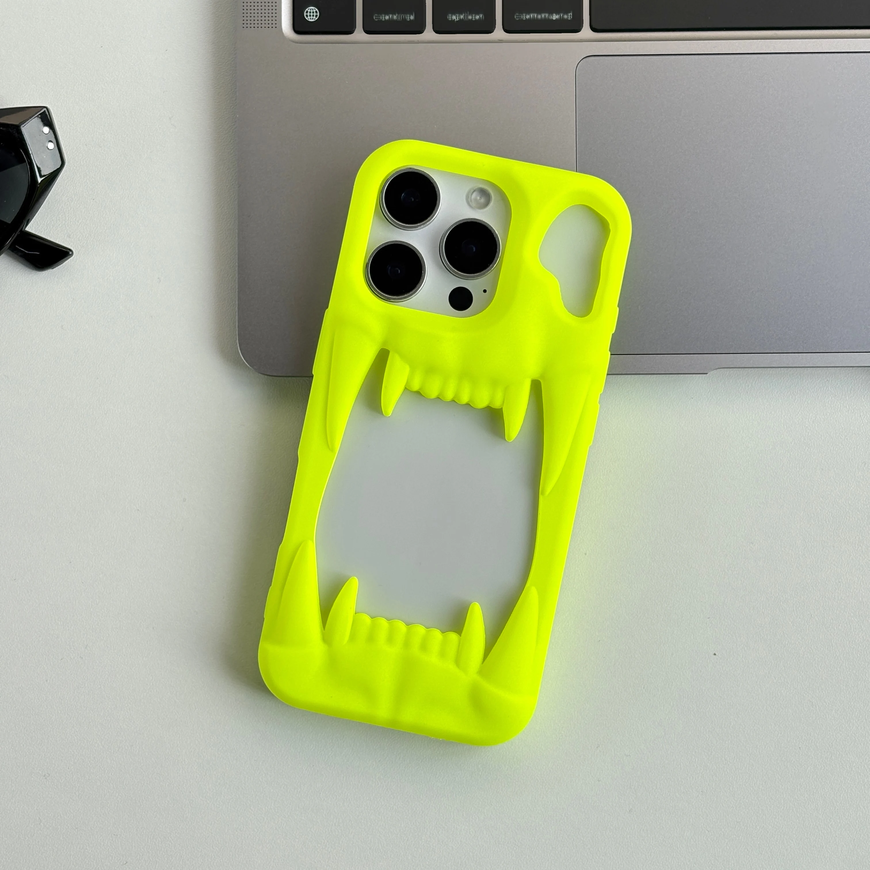 ネオンイエローが目を引く、立体“ファング(牙)”デザインのクリアケース⚡