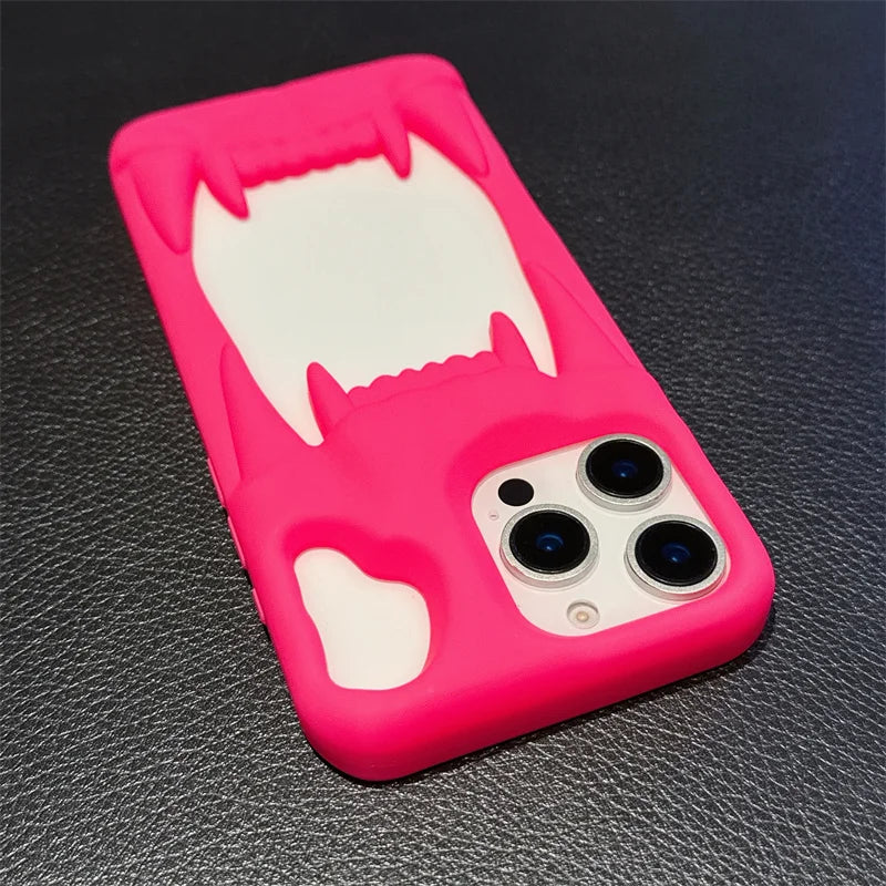 【ワイルドファング】ネオンイエロー・ピンク × 立体キバ クリアバンパー スマホケース|iPhone対応 #240813
