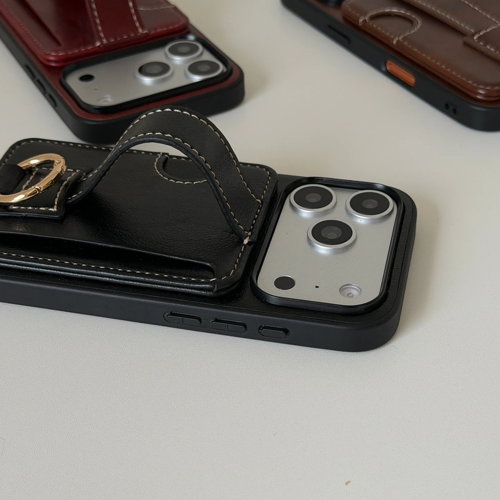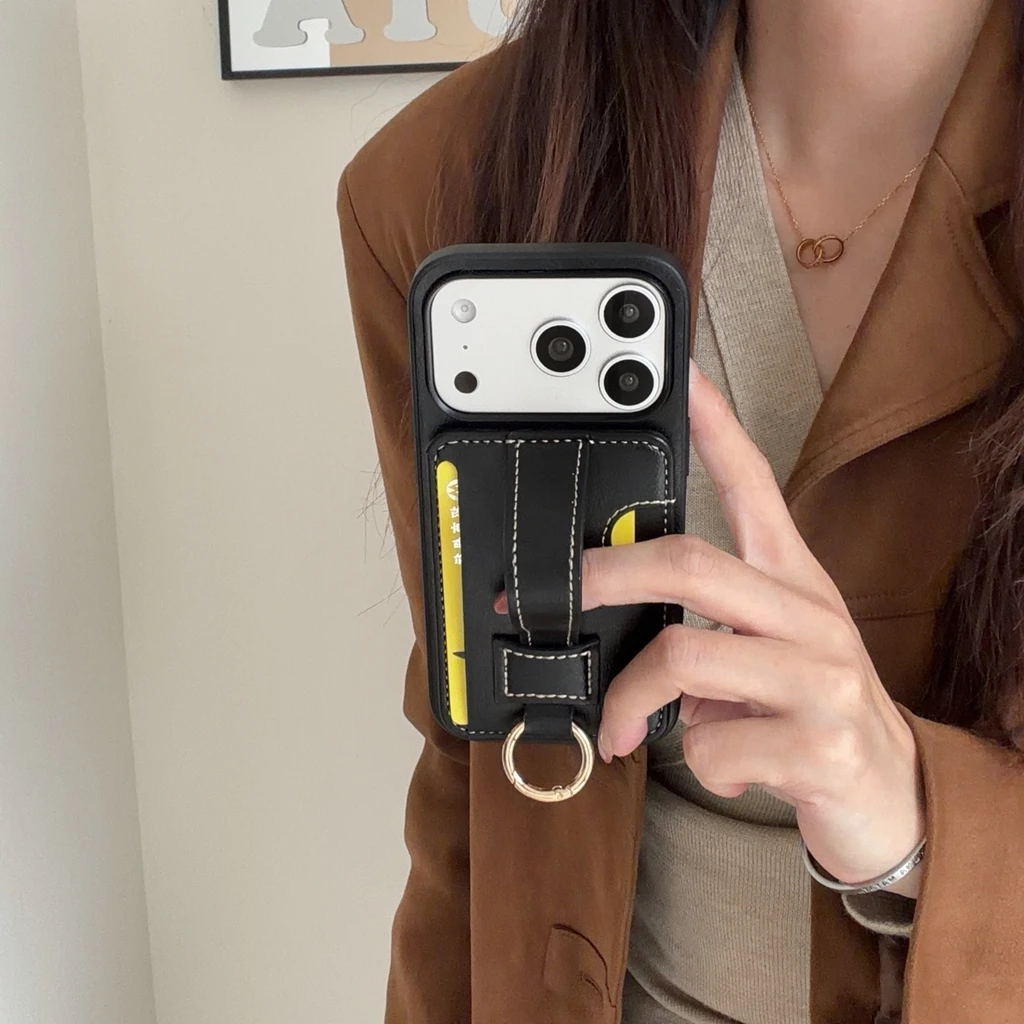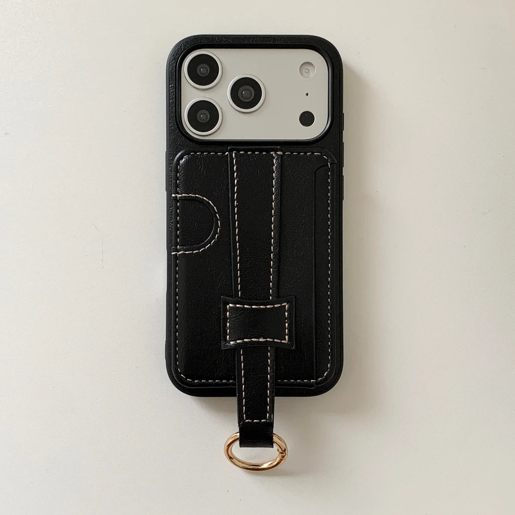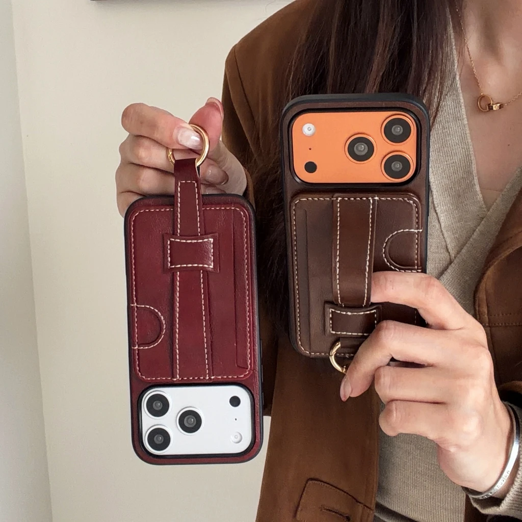 【クラシックハンドトラップ】レザーポケット × キーリング スマホケース|iPhone対応 #240815