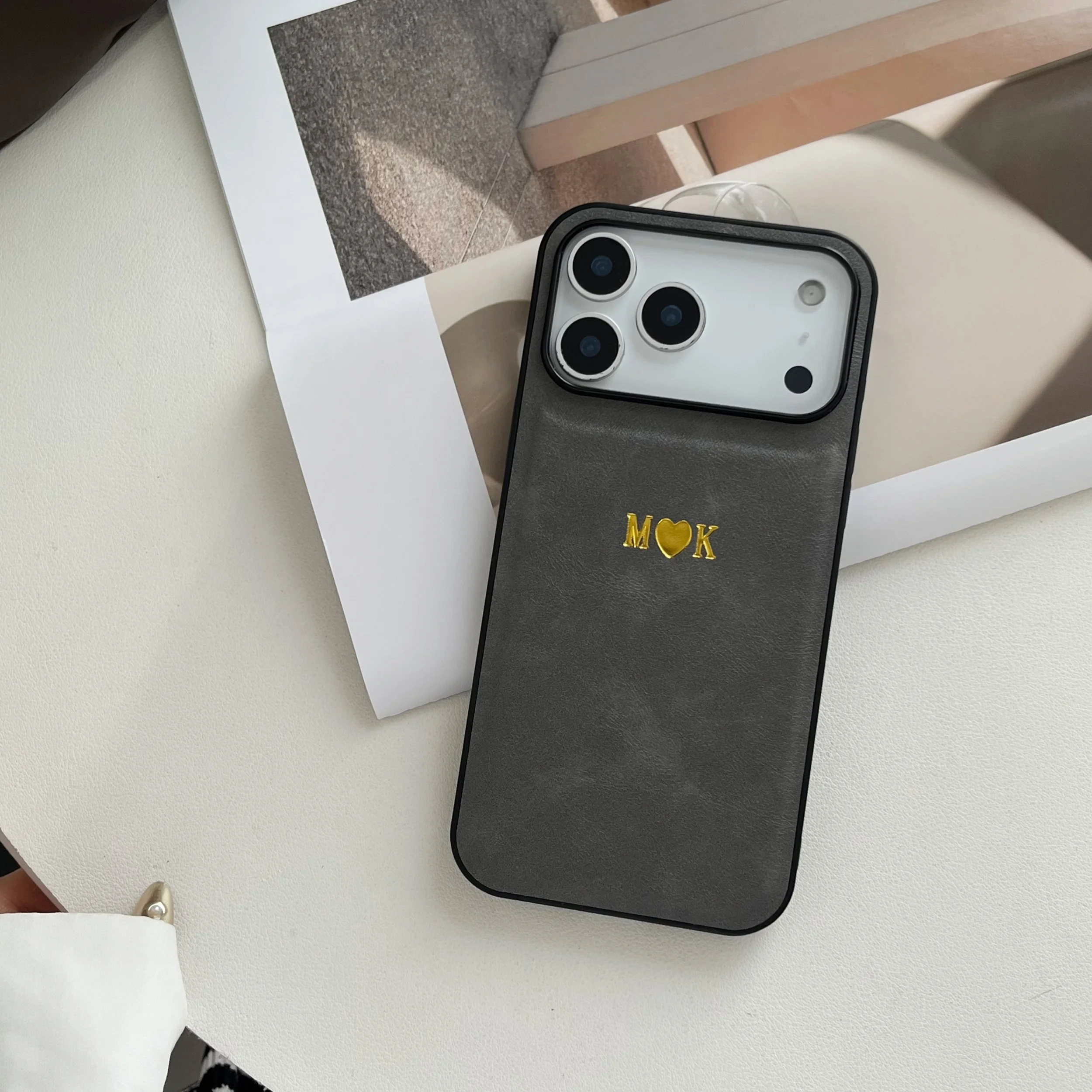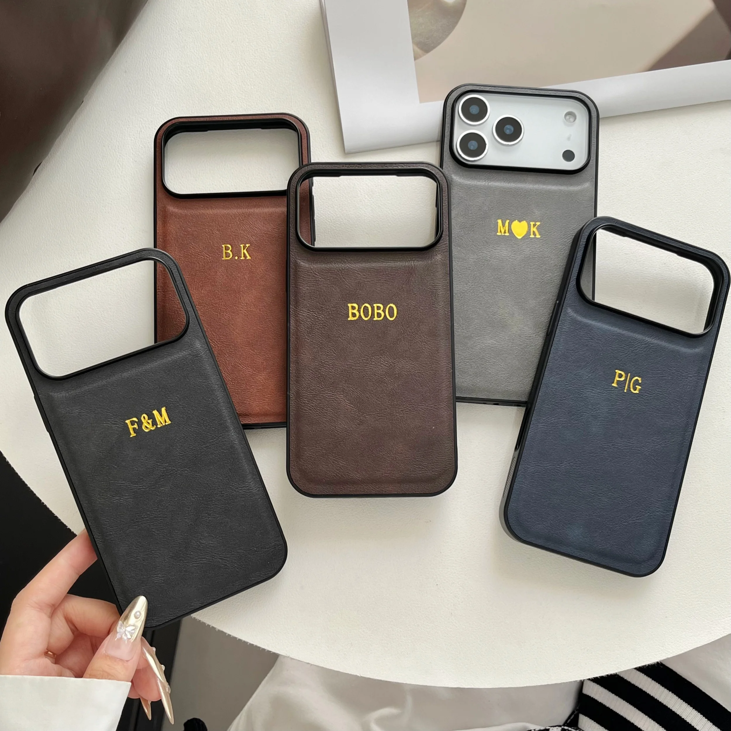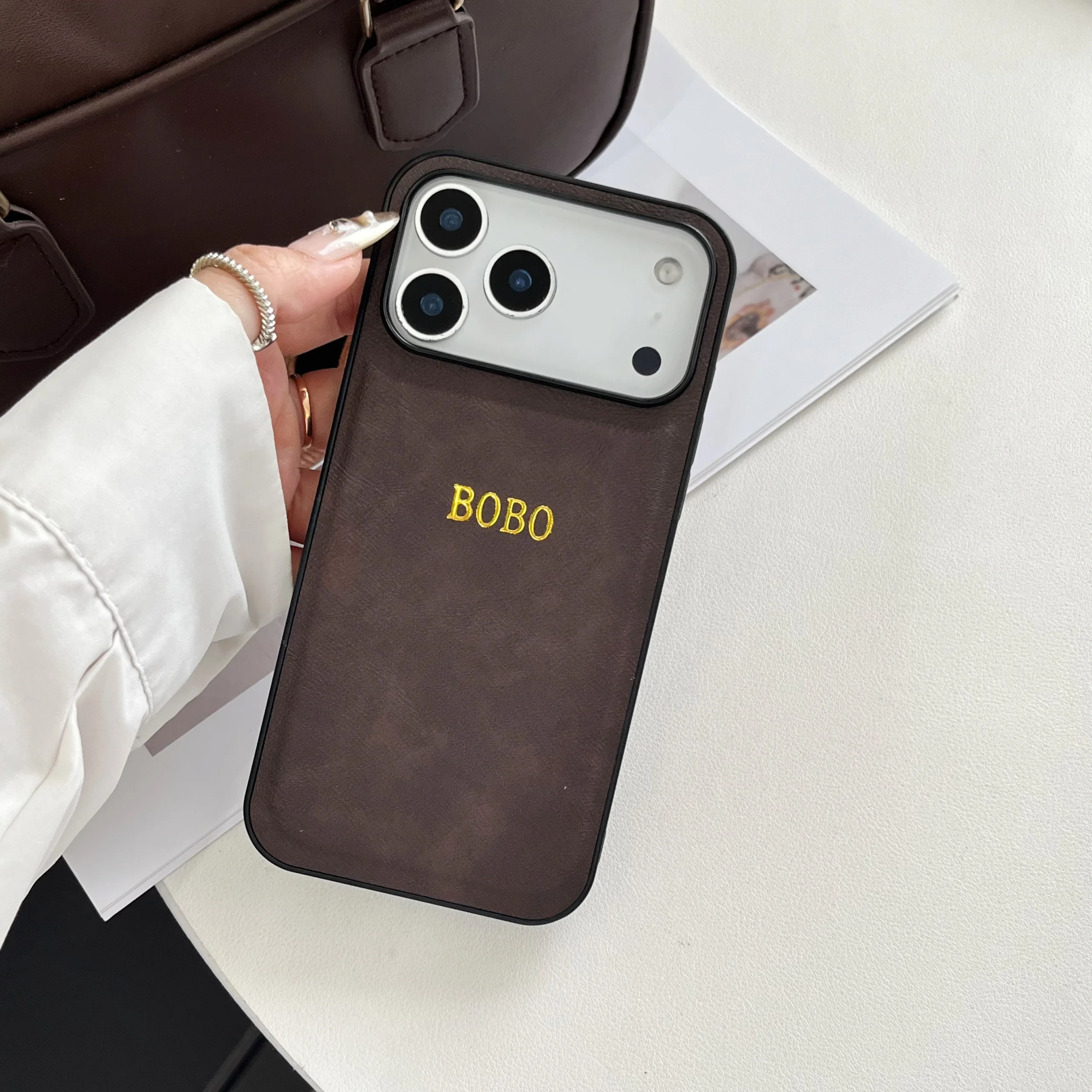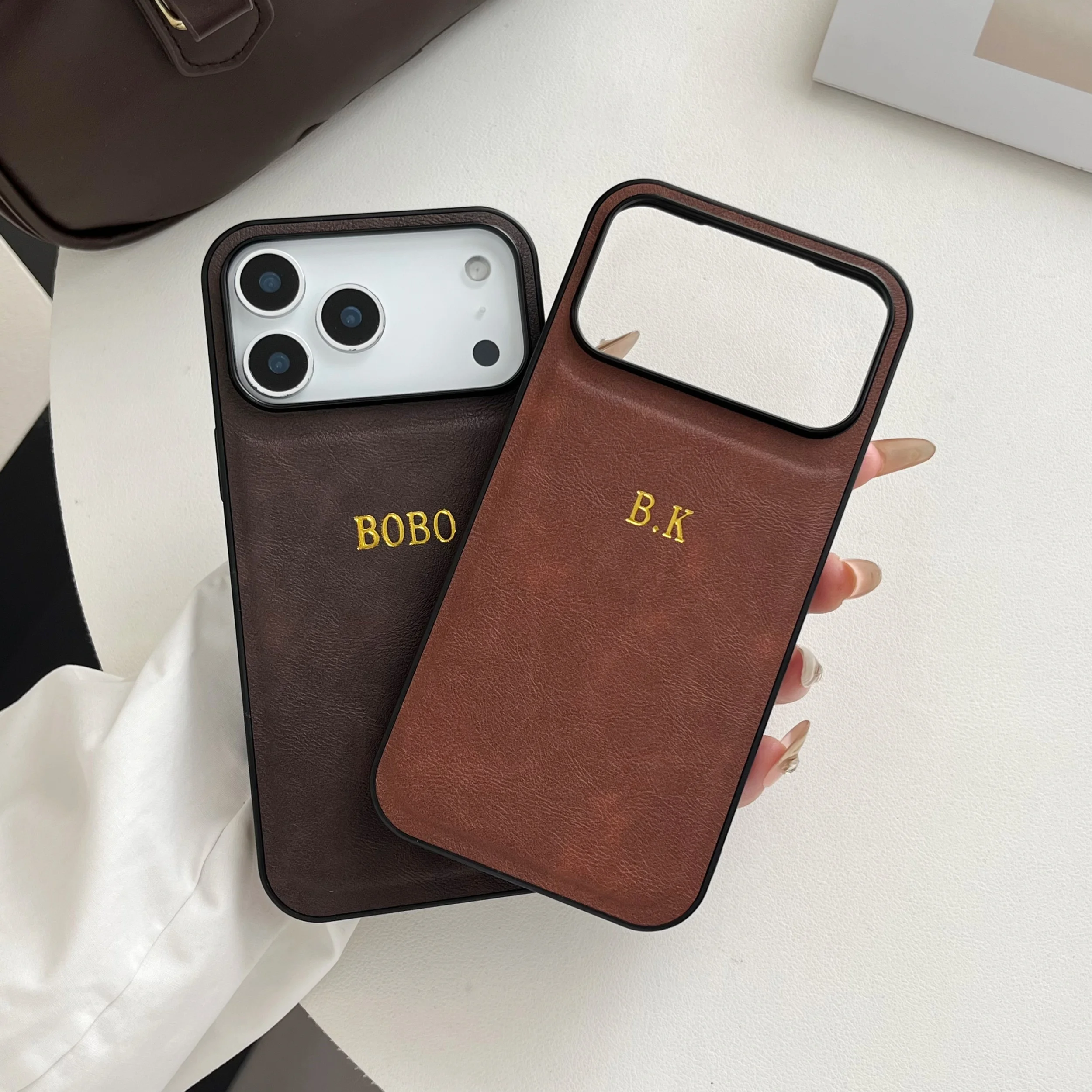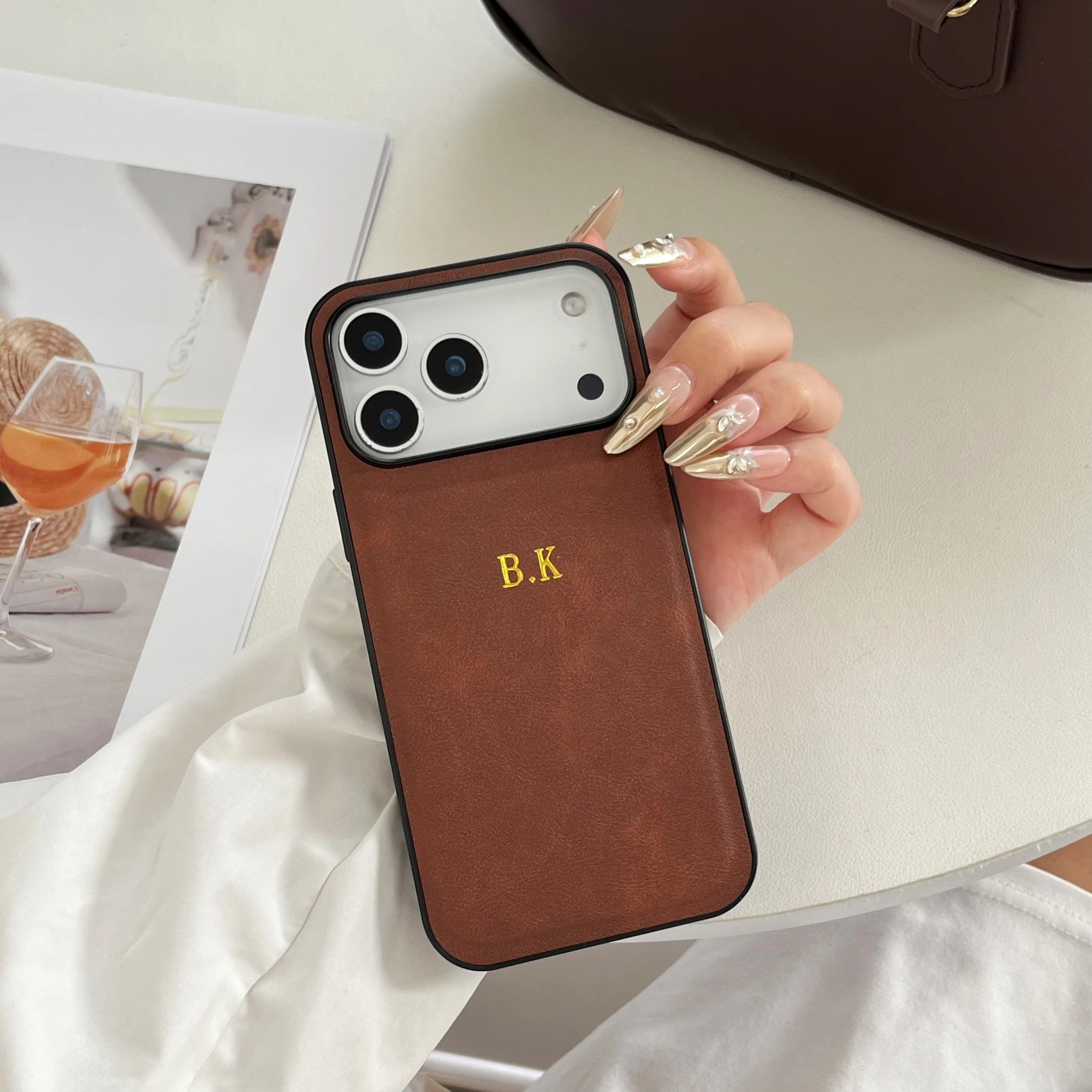 【カスタムNAMEシリーズ】シンプル 箔押し 刻印 レザー調ケース|iPhone対応 #240820