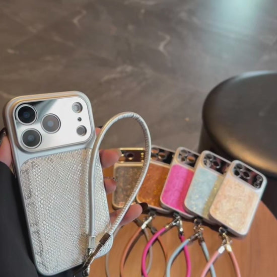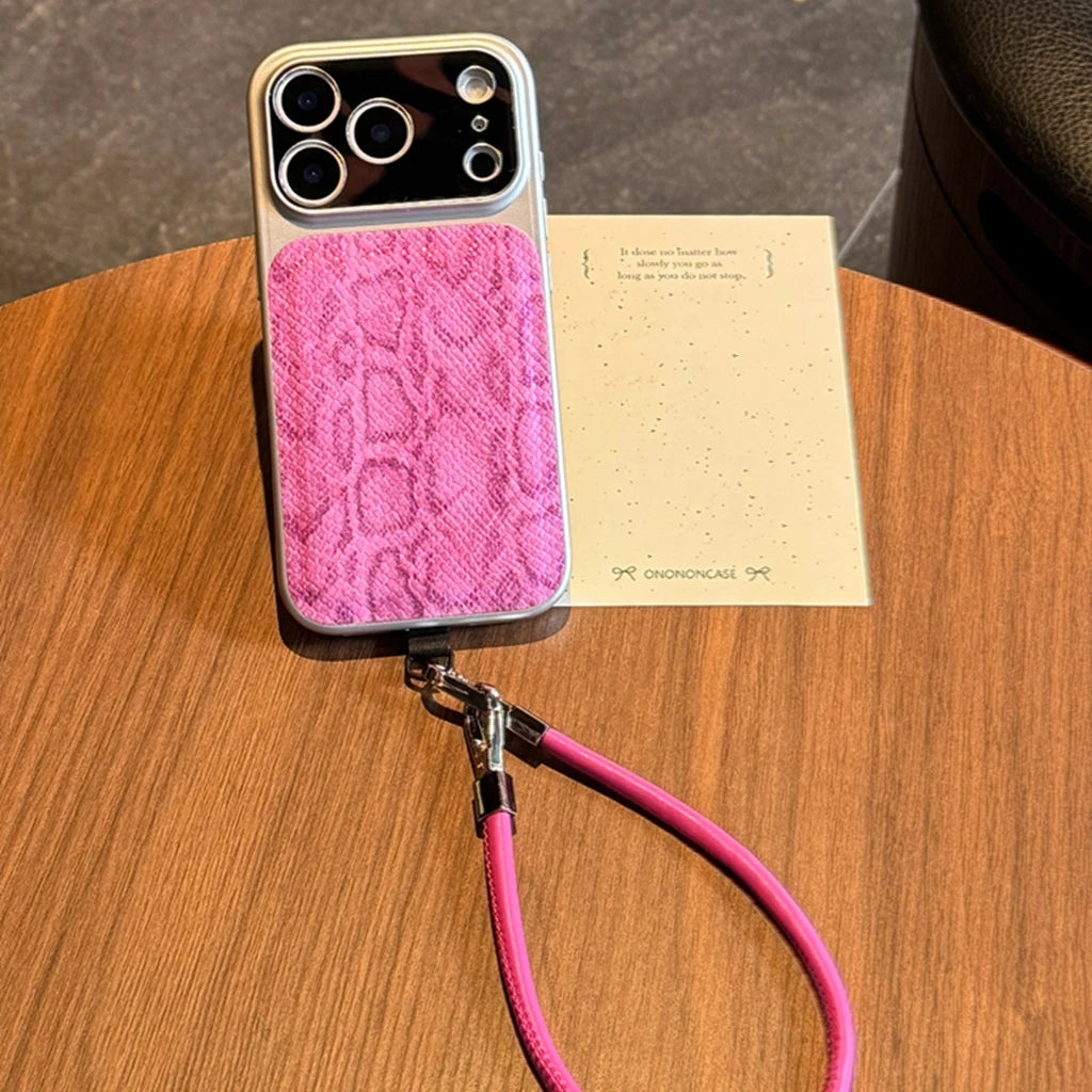 【スネークタッチ】パイソンレザー調 × ハンドストラップ スマホケース|iPhone対応 #240823