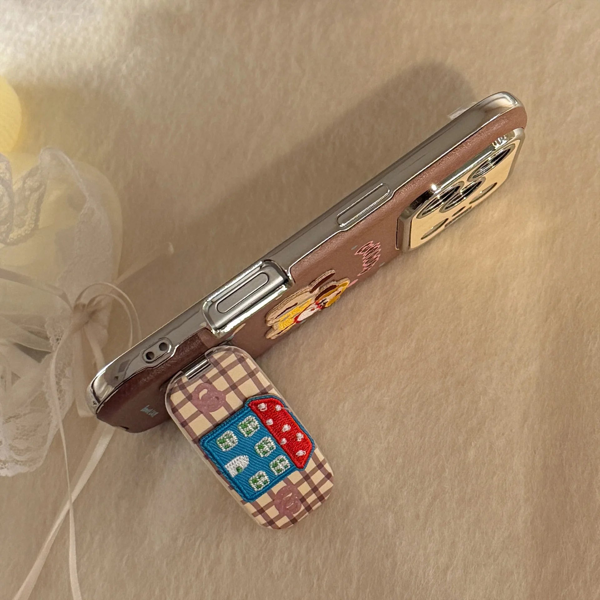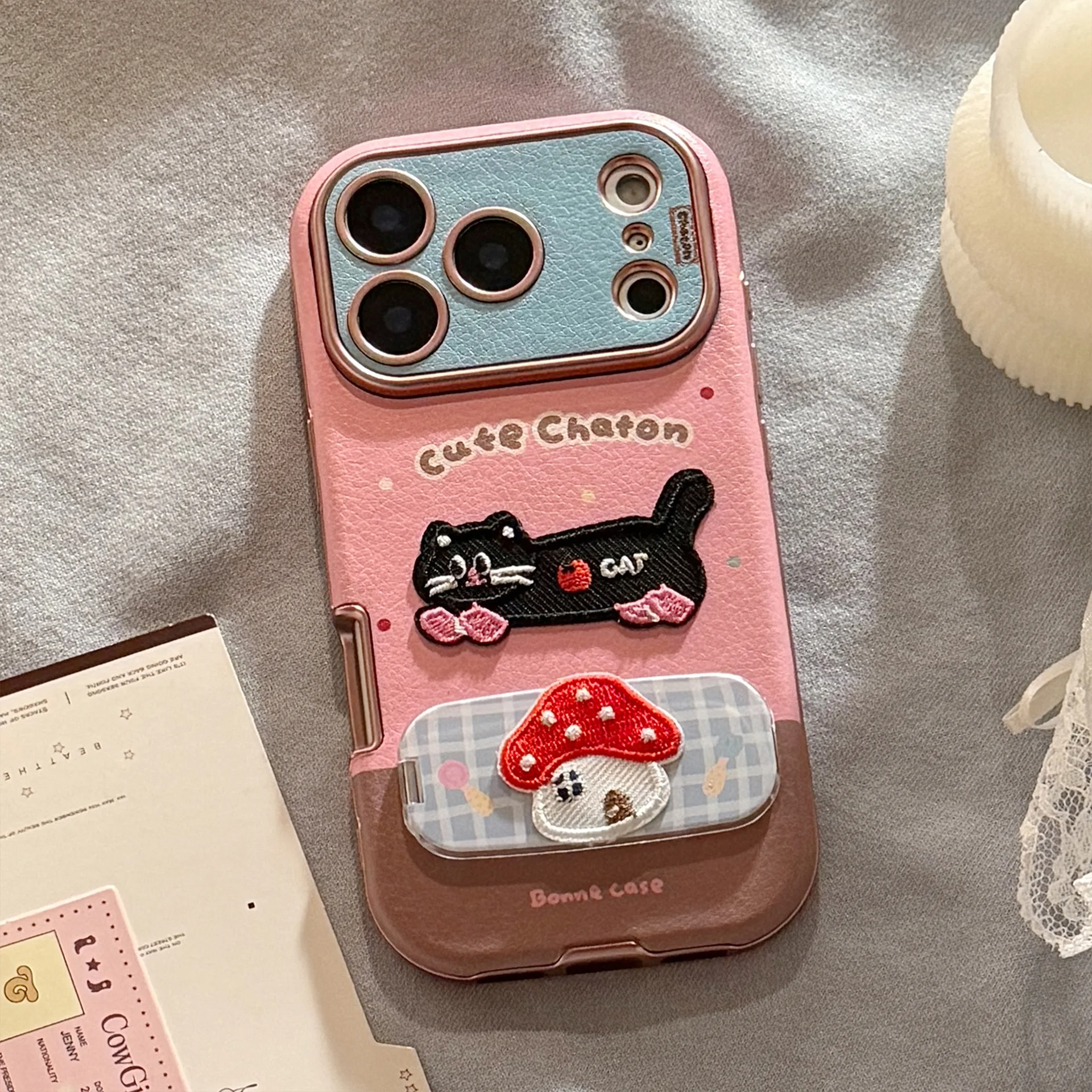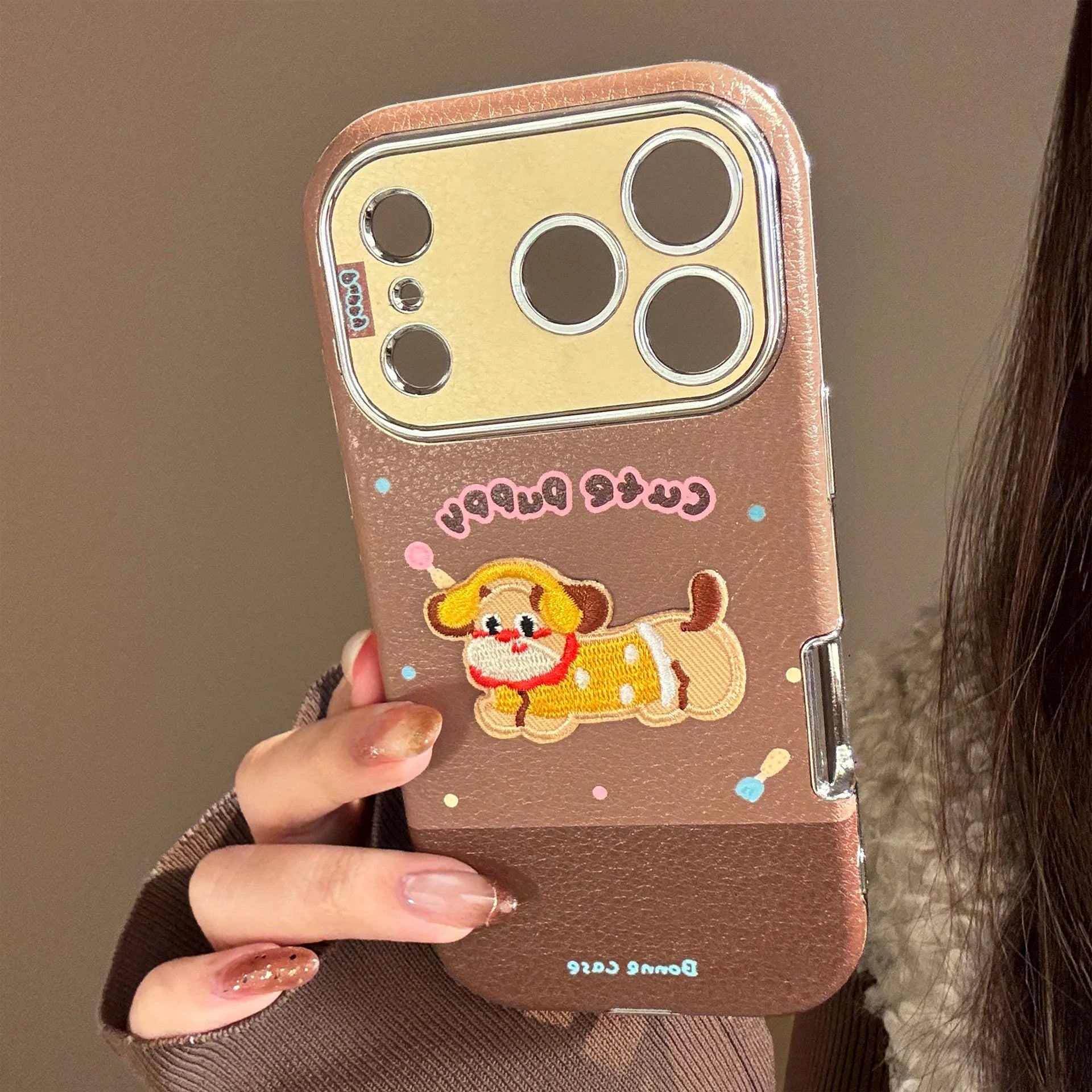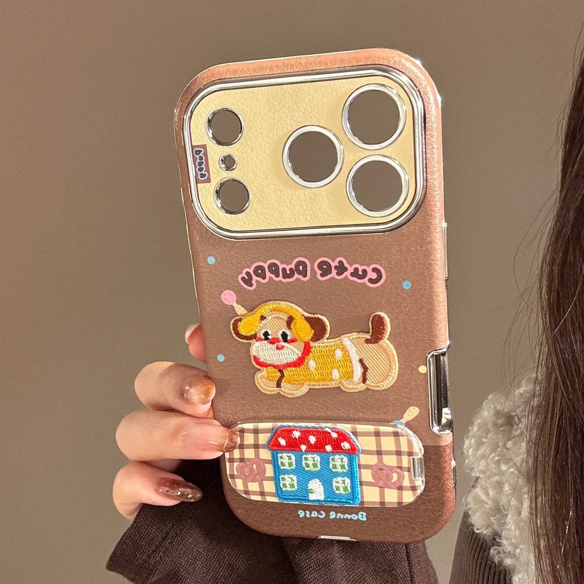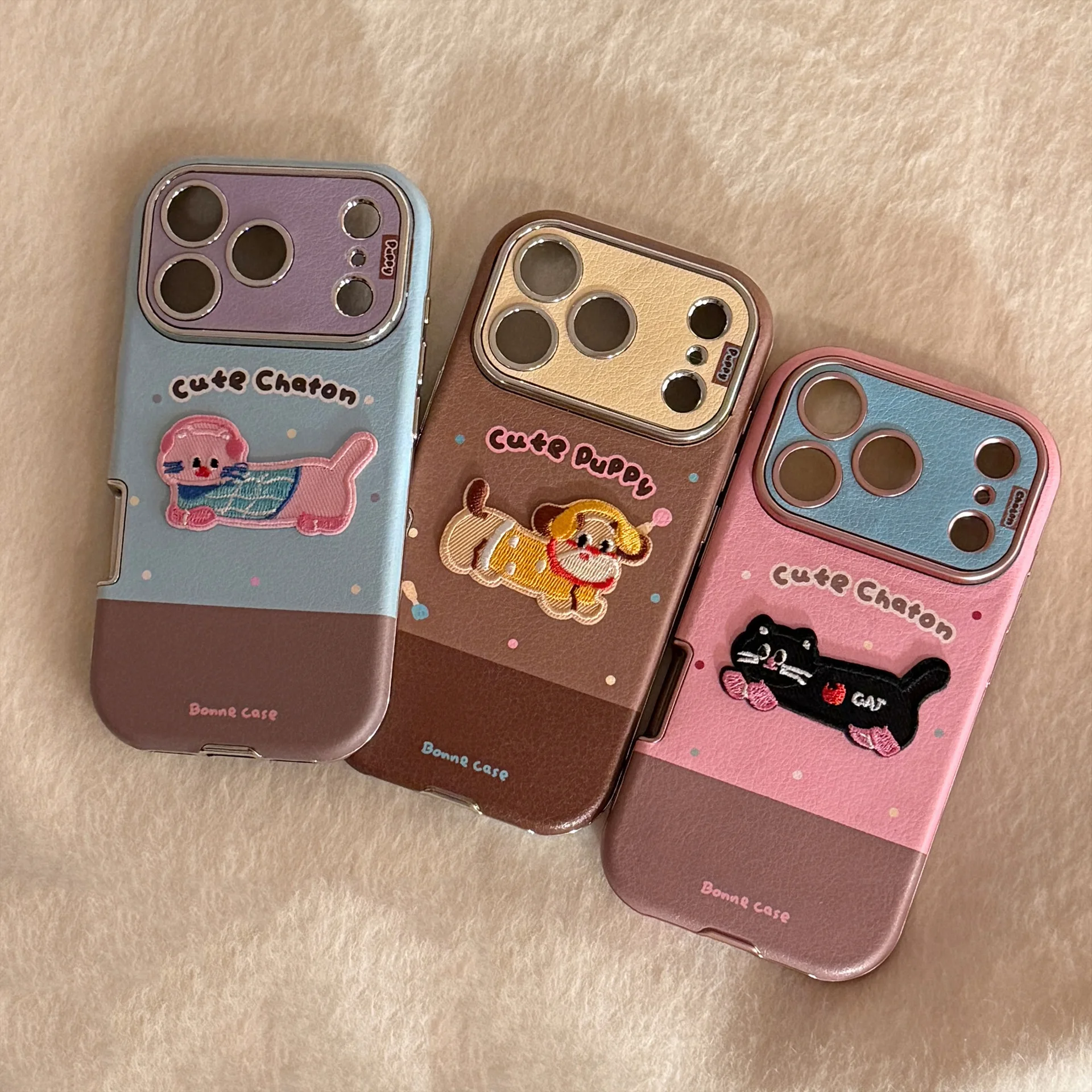 【HAPPYアニマルシリーズ】ヘッドホン わんこ ネコ 刺繍 × ふんわりガーリー ソフトレザー調ケース|iPhone対応 #240826