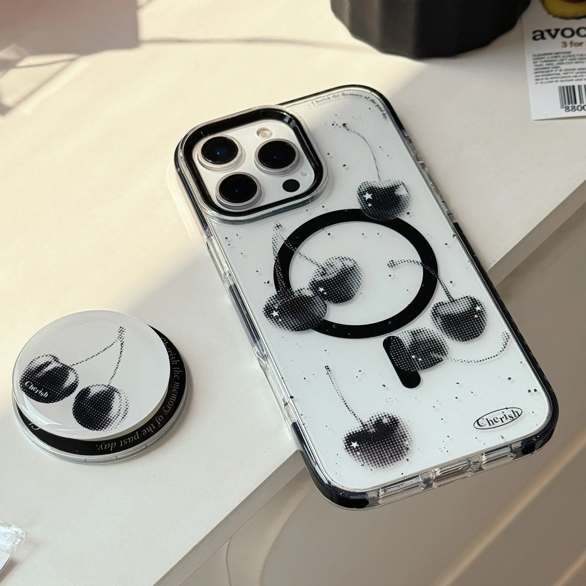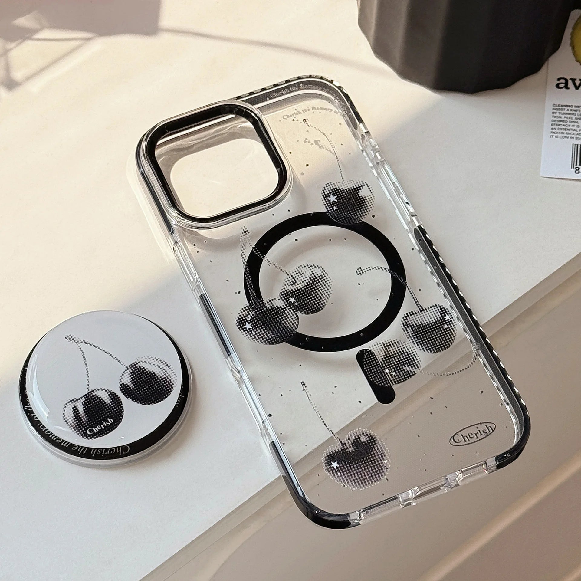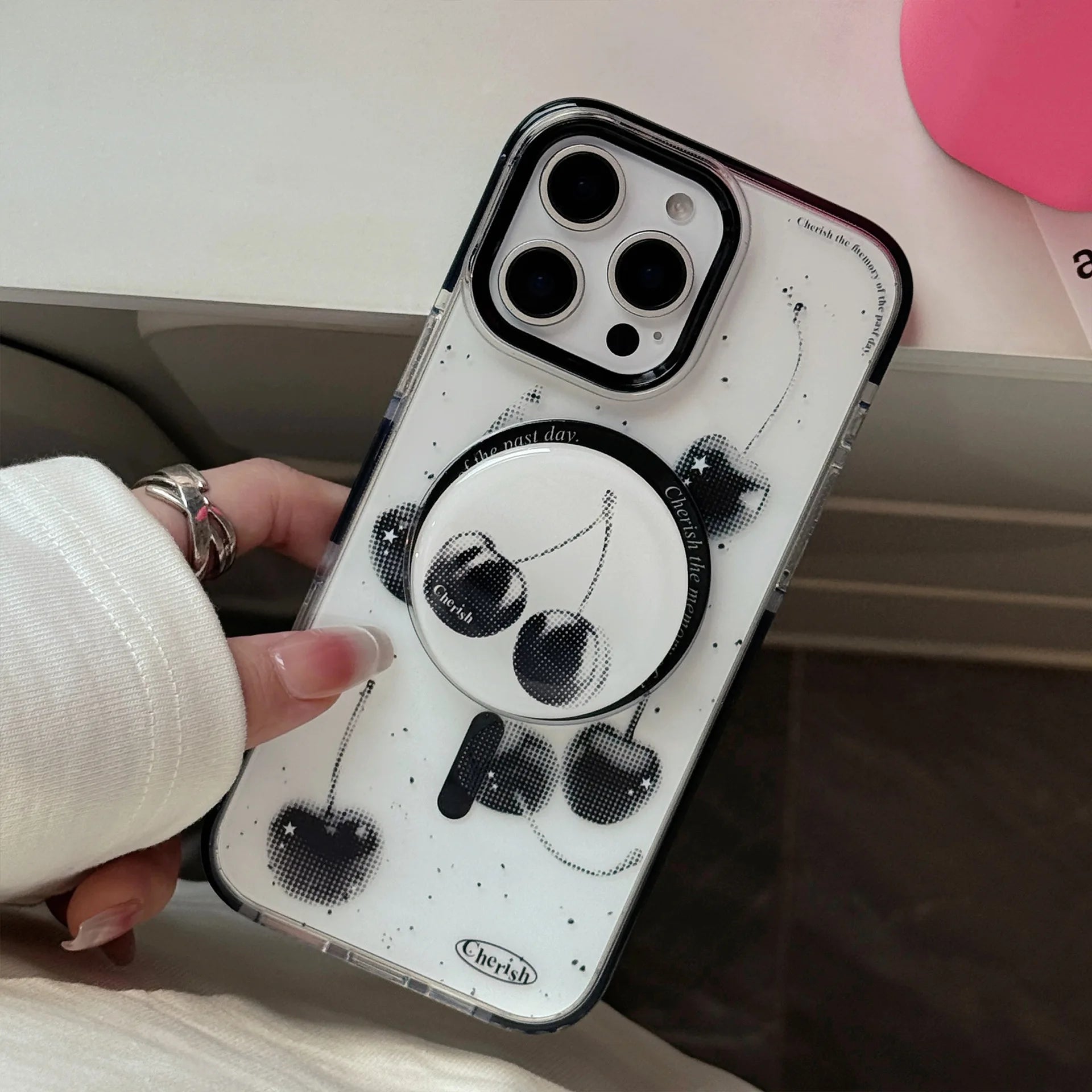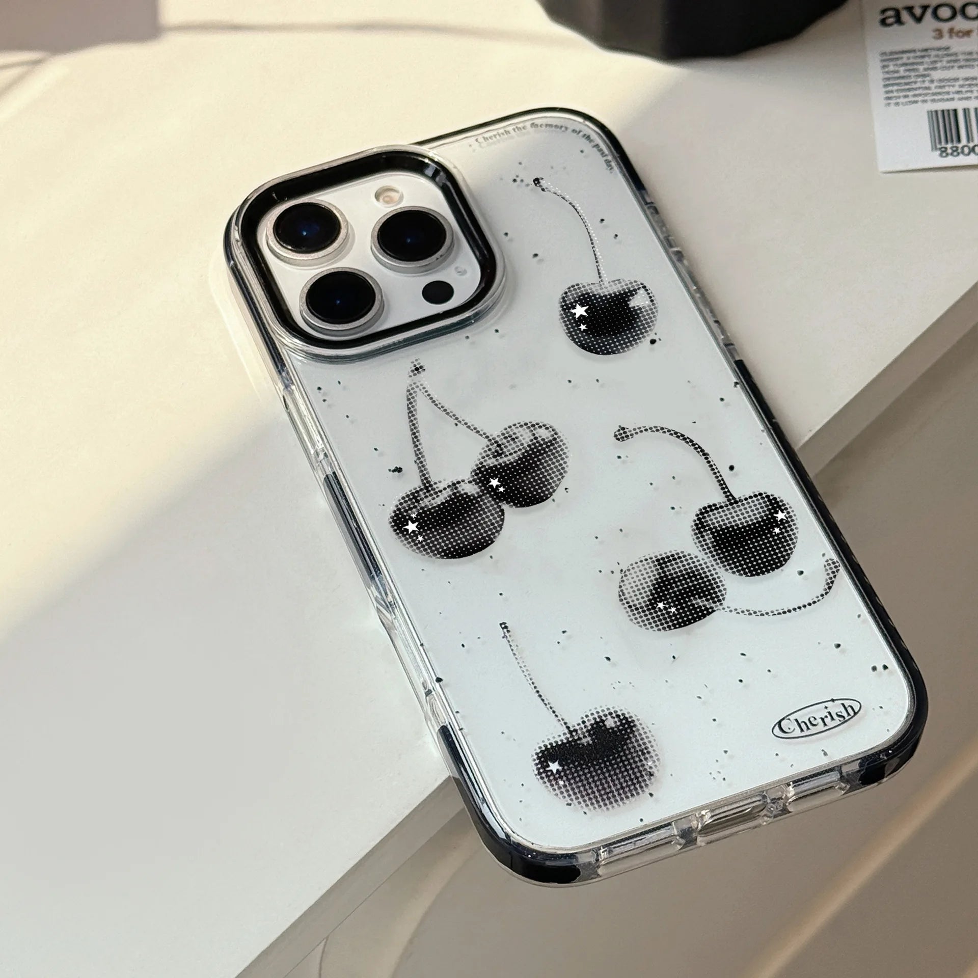 きらめくブラックチェリーが目を惹くケース🍒✨