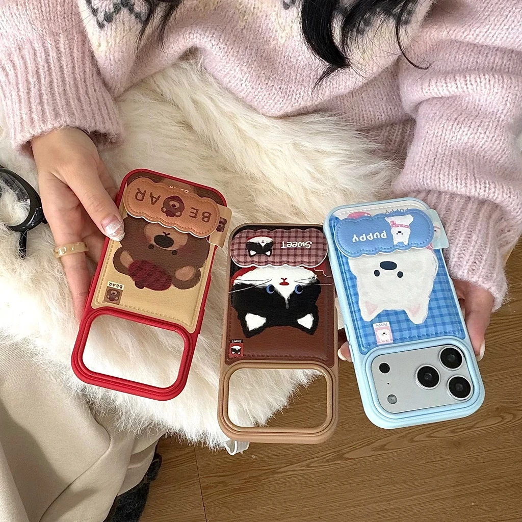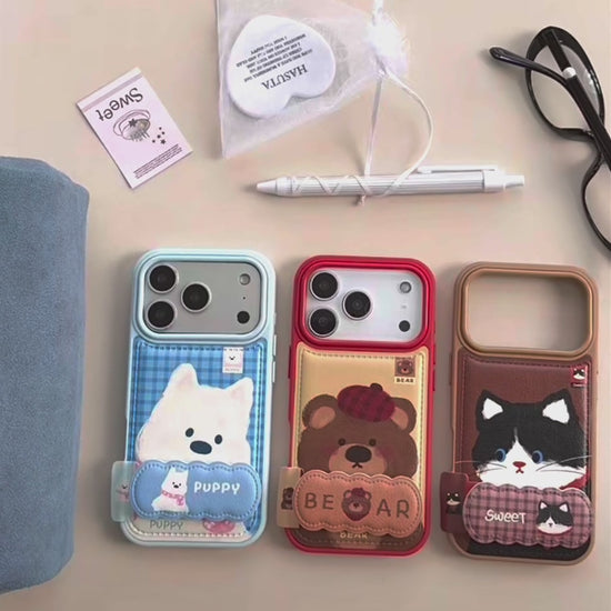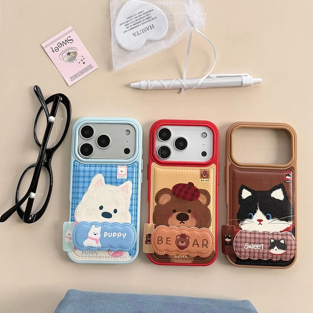 【キュートペット】ソフトレザー調 アニマル ポップカラー スマホケース|iPhone対応 #240828