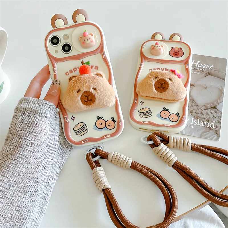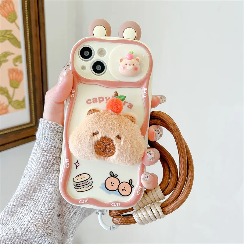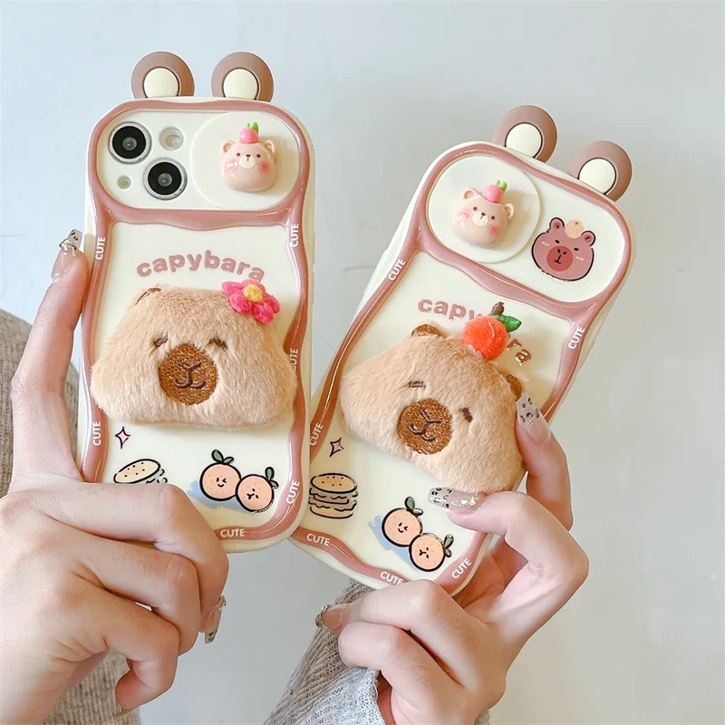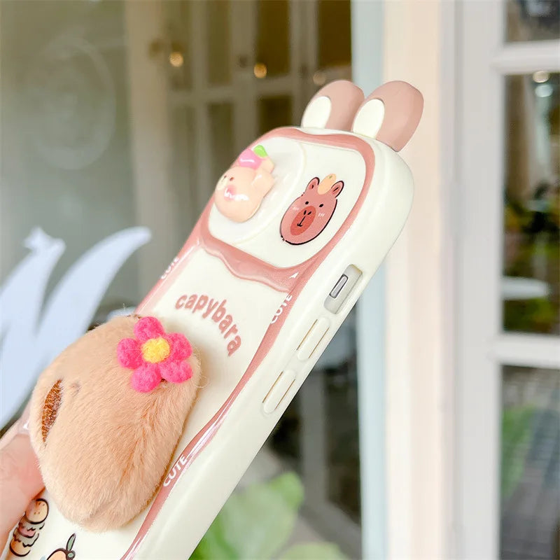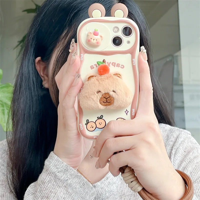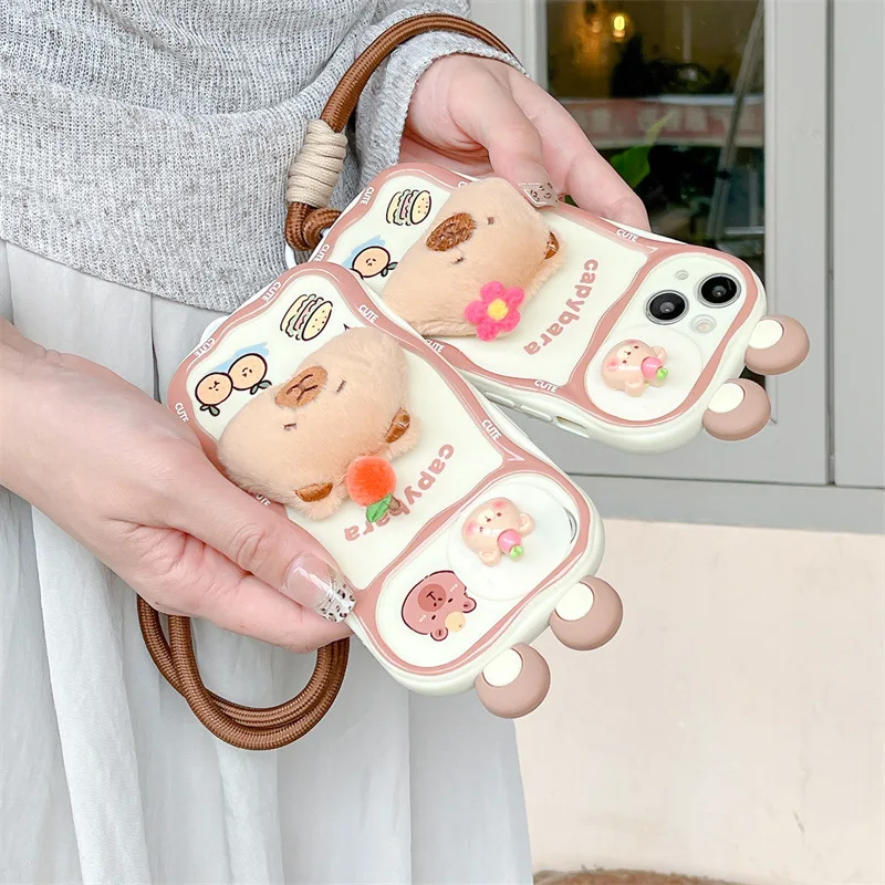 【アニマルぬいぐるみシリーズ】 カピバラ 立体ふわもこケース|iPhone対応 #240907