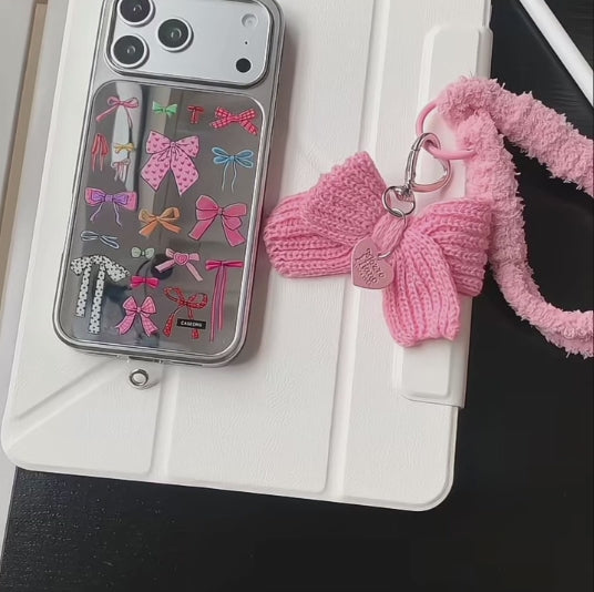 【カラフルリボンミラー】 リボンストラップ付き スマホケース|iPhone対応 #240912