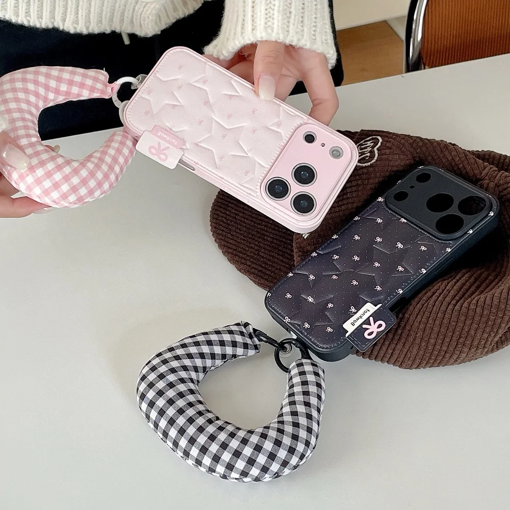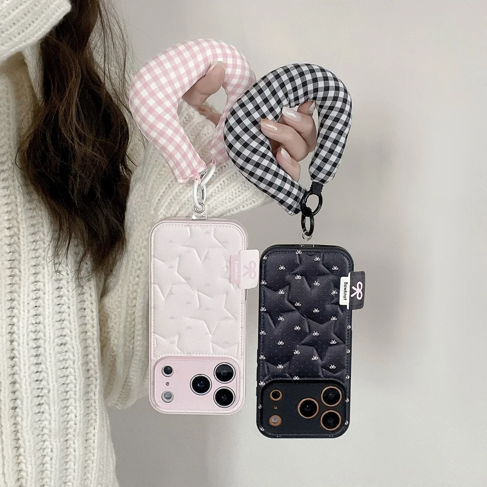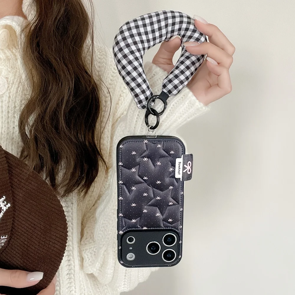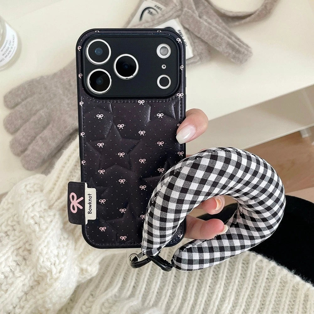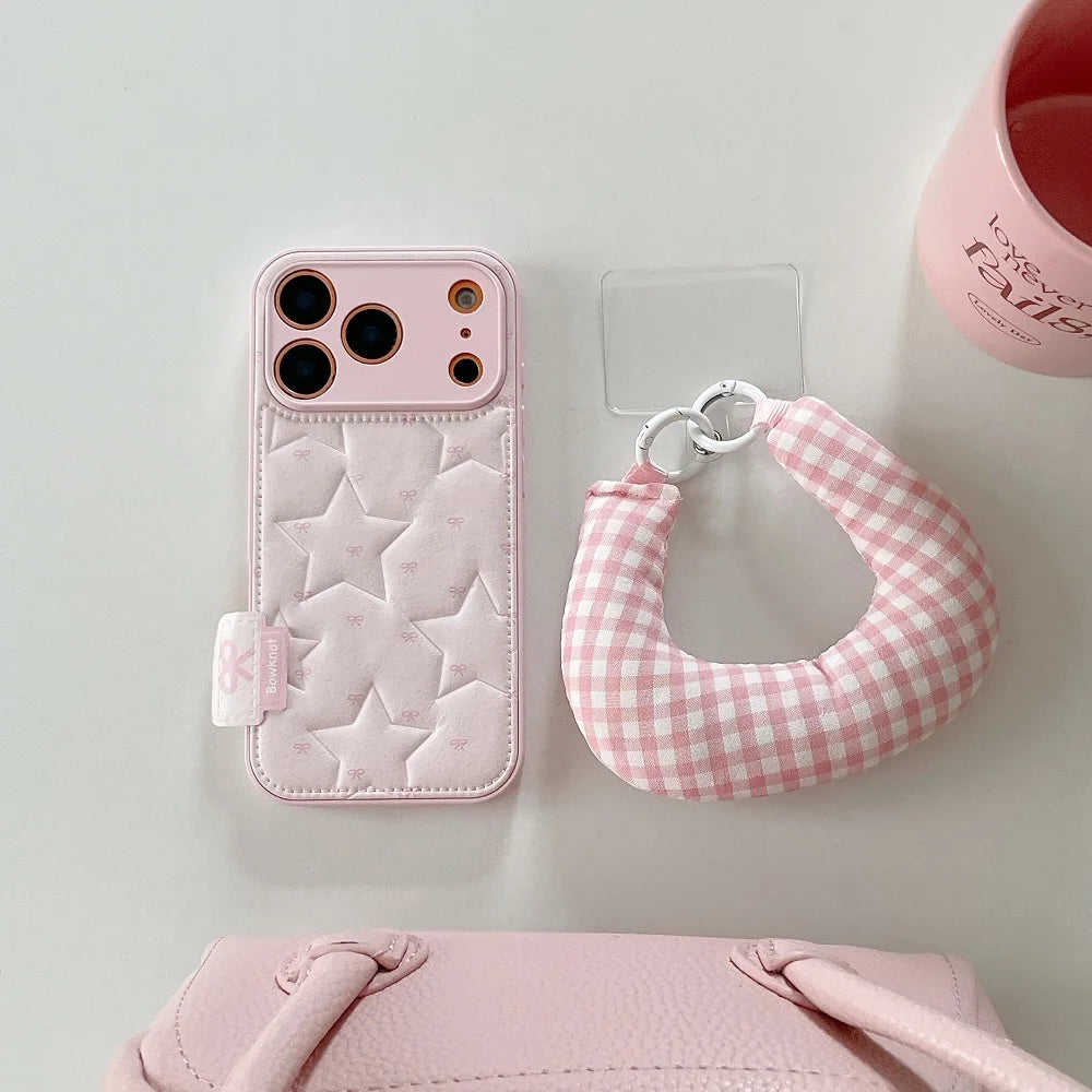 【もこもこスターキルティング】 ふわふわ チェッククッション ハンドル ストラップケース|iPhone対応 #240913