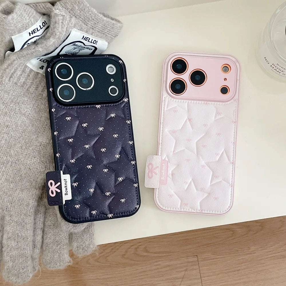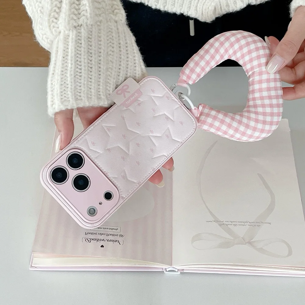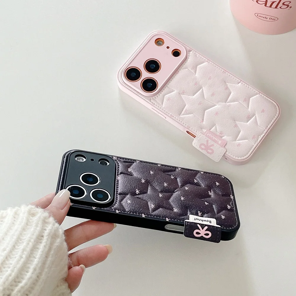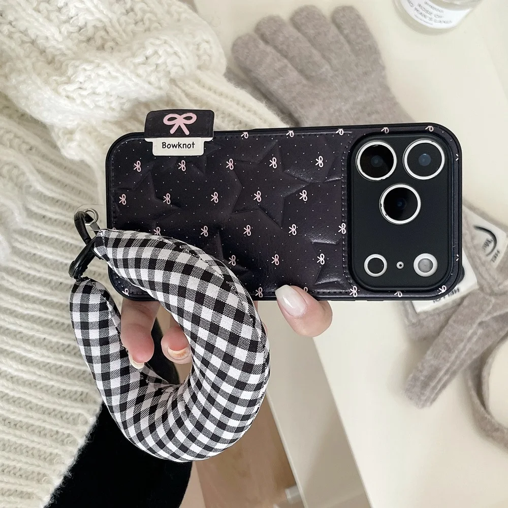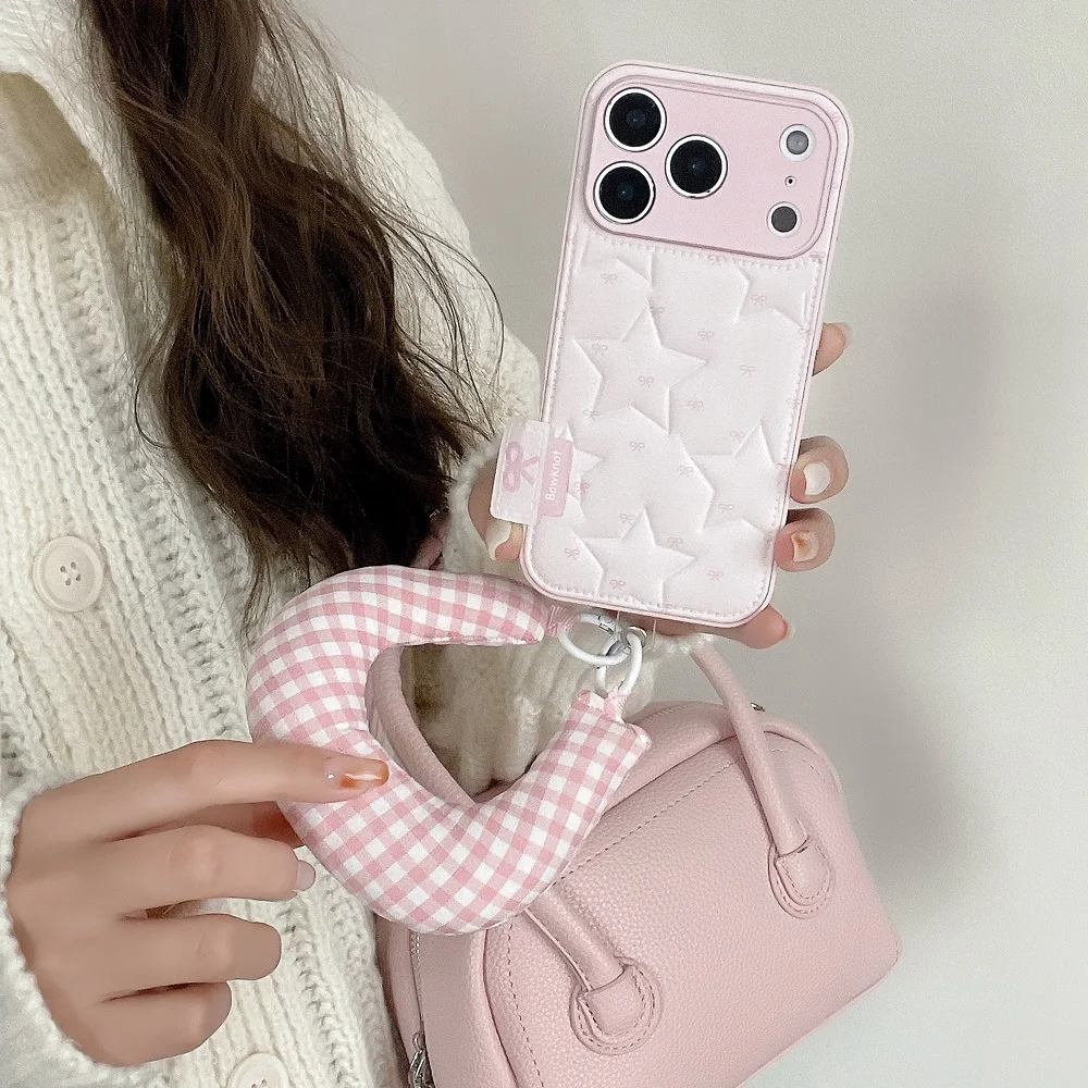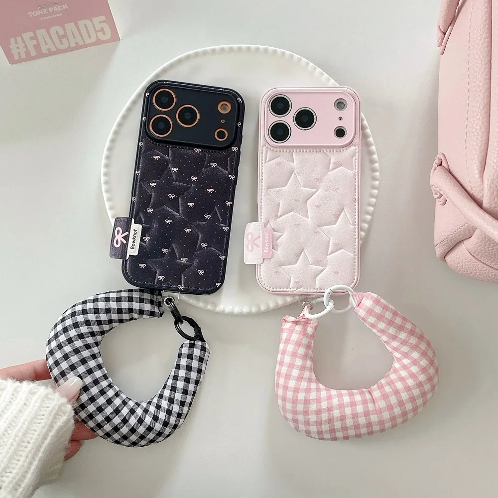 【もこもこスターキルティング】 ふわふわ チェッククッション ハンドル ストラップケース|iPhone対応 #240913