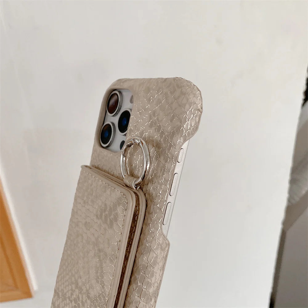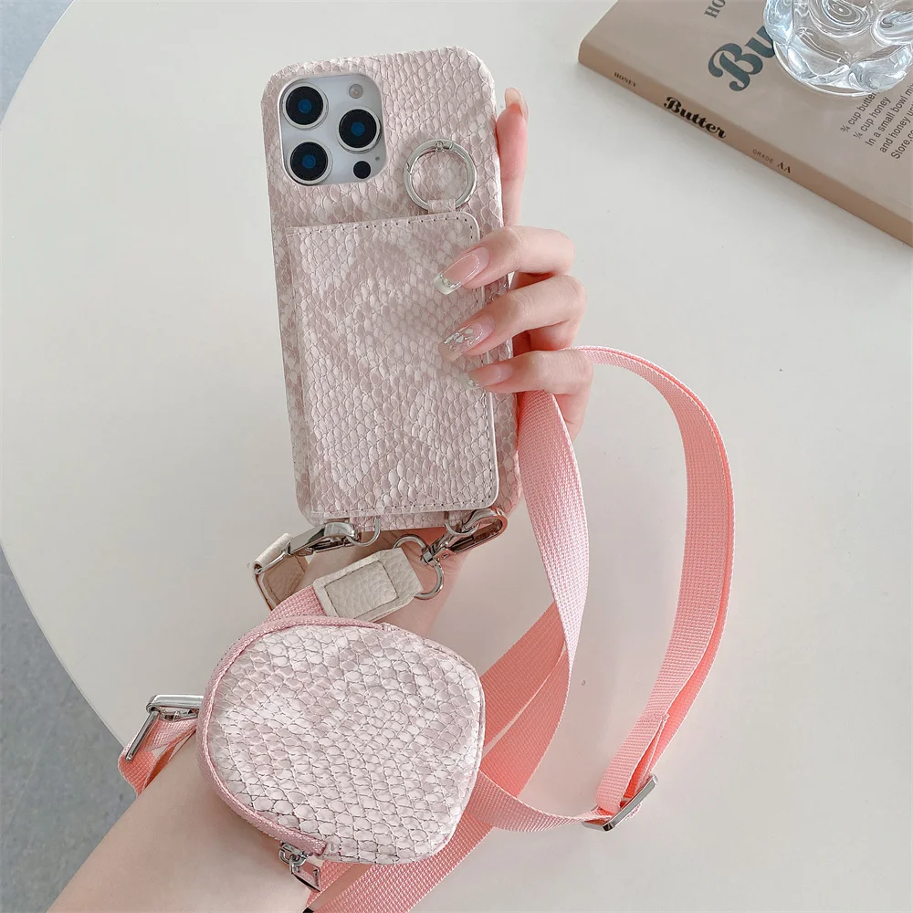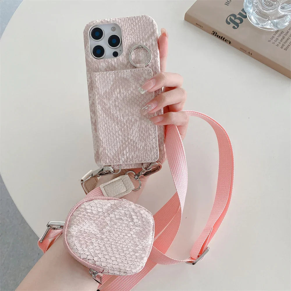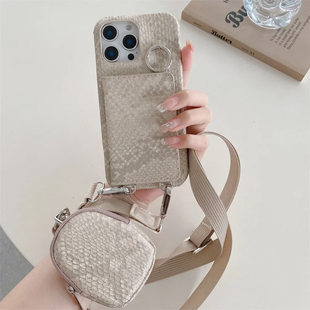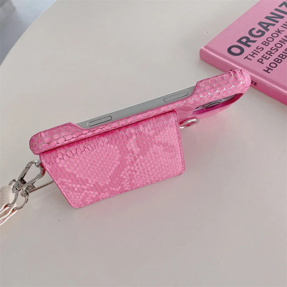 【スネークシリーズ】ヘビ柄 高見え ショルダーストラップケース + カード収納 ミラー ミニポーチ #240916