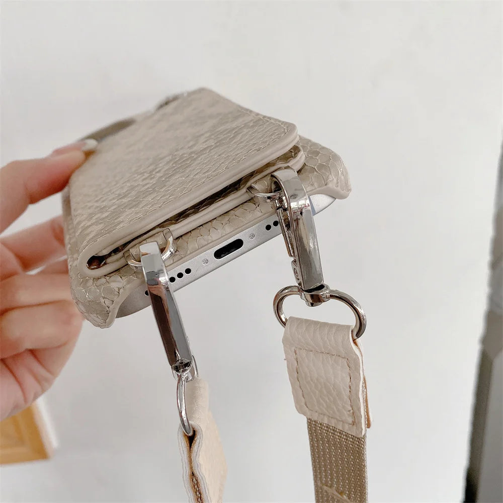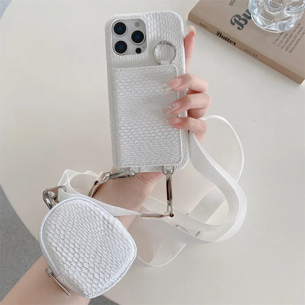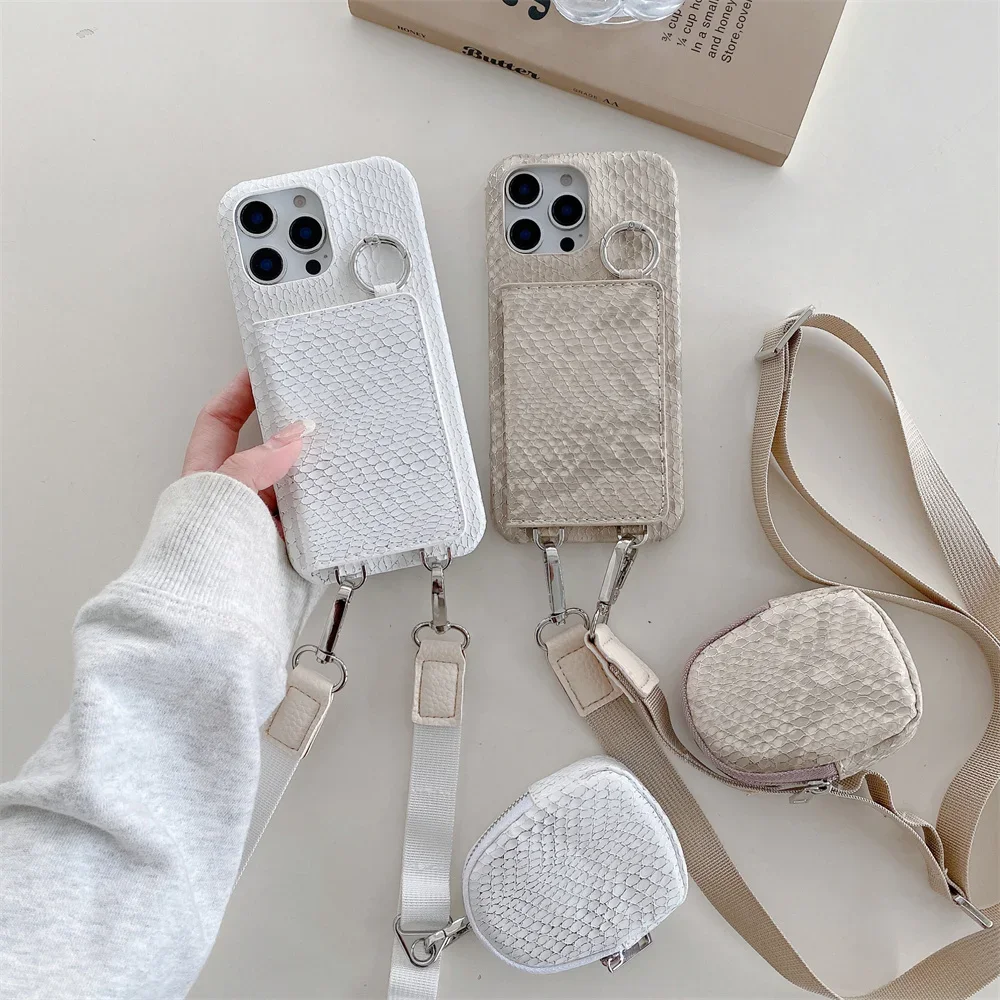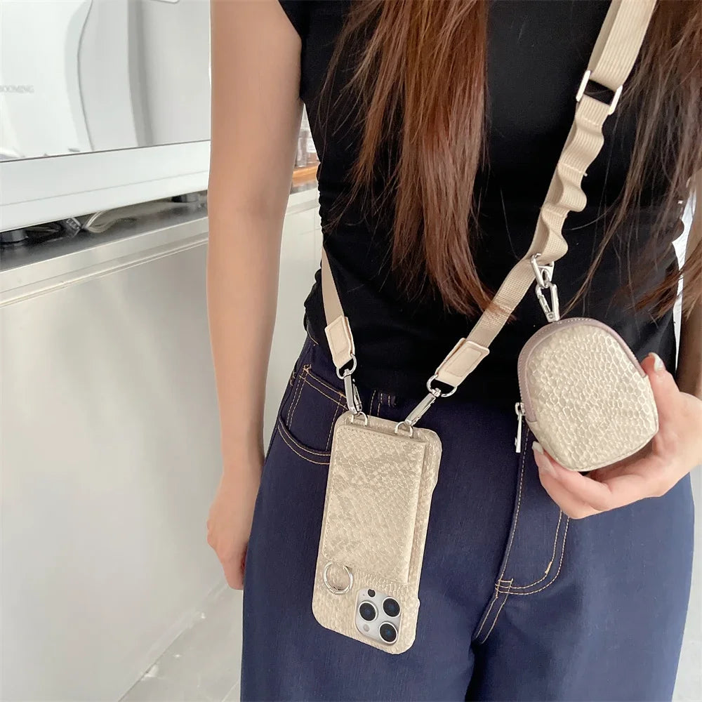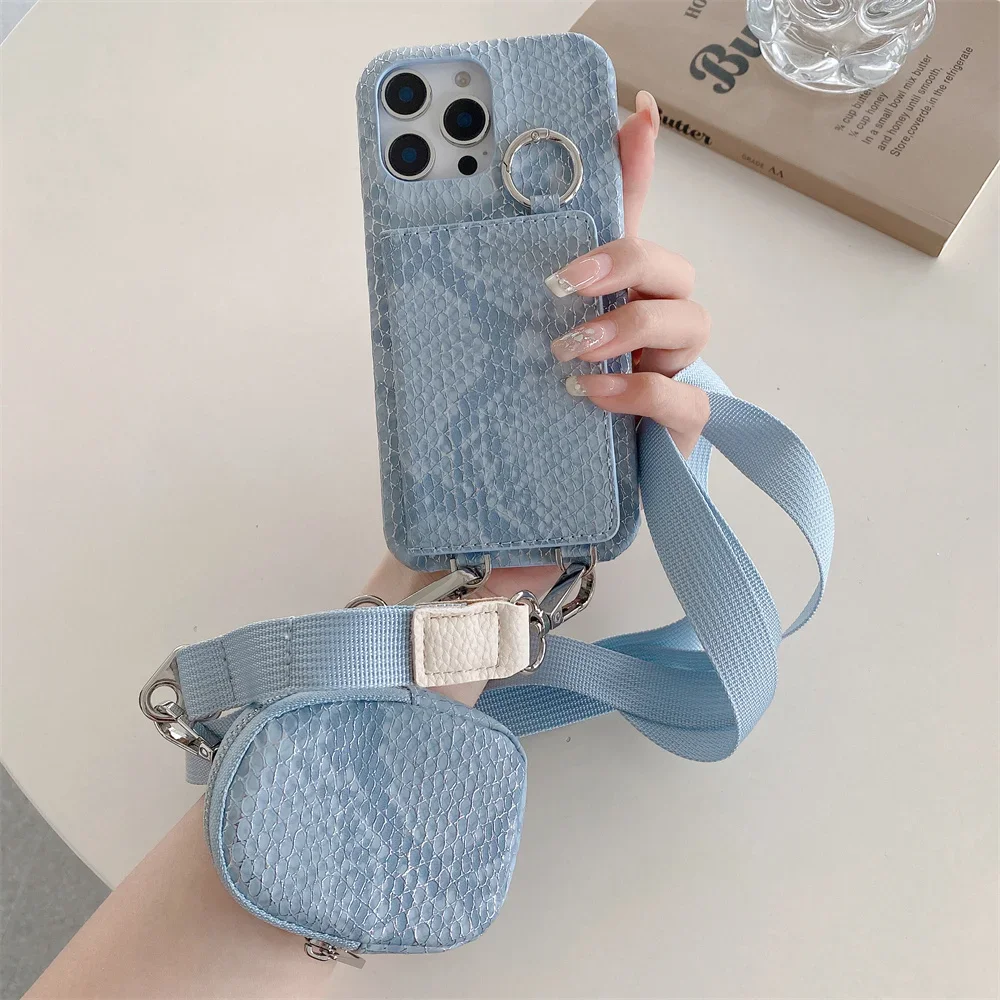【スネークシリーズ】ヘビ柄 高見え ショルダーストラップケース + カード収納 ミラー ミニポーチ #240916