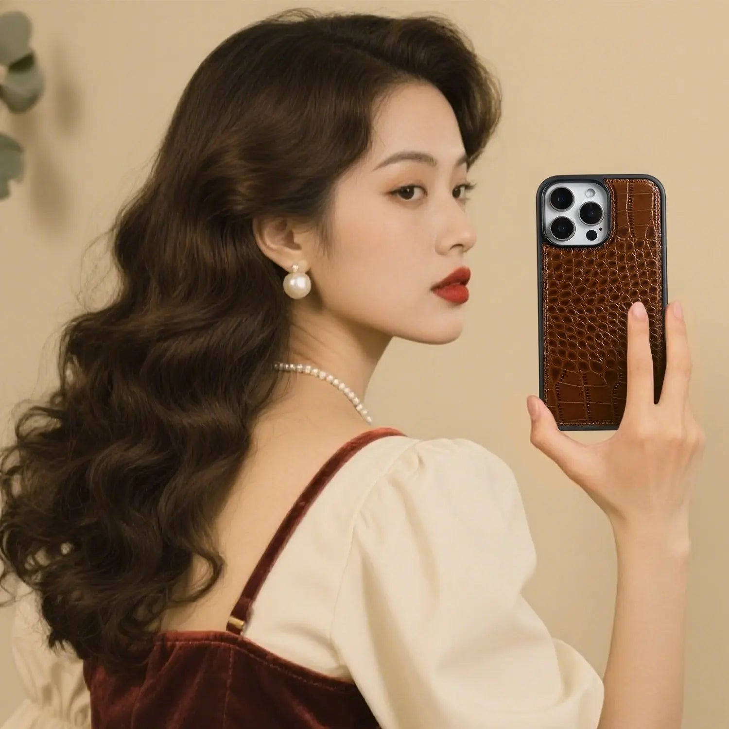 【本革シリーズ】クロコ型押し 本革プレミアムケース|iPhone対応 #240920