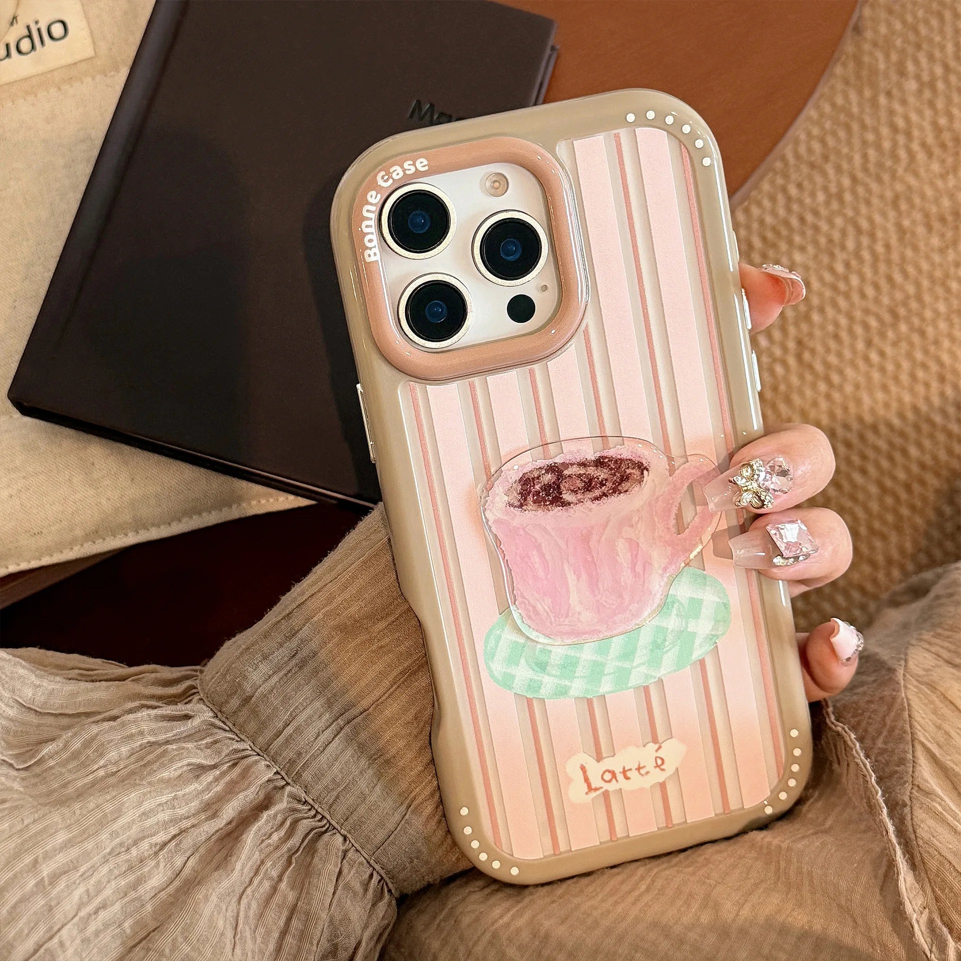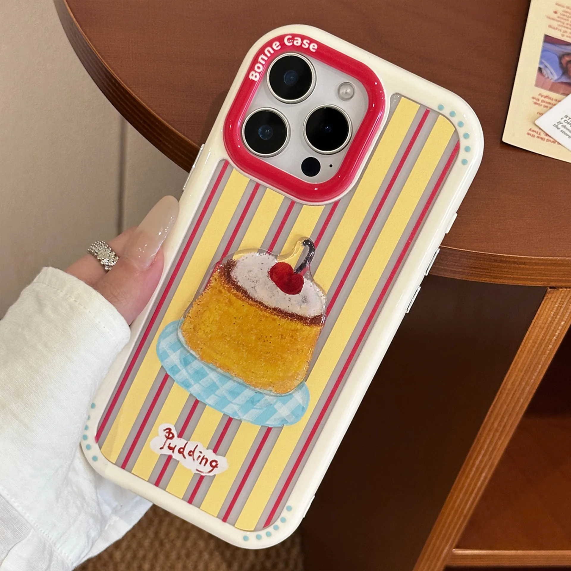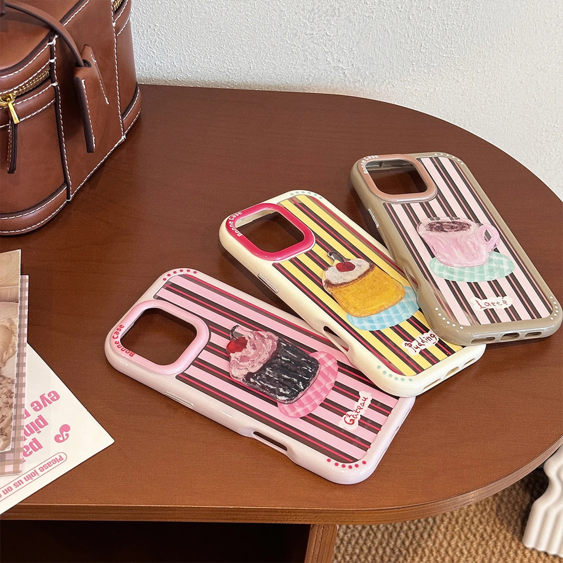 【カラフルストライプ】プリン ケーキ コーヒー スイーツ デザート アートスマホケース|iPhone対応 #240925