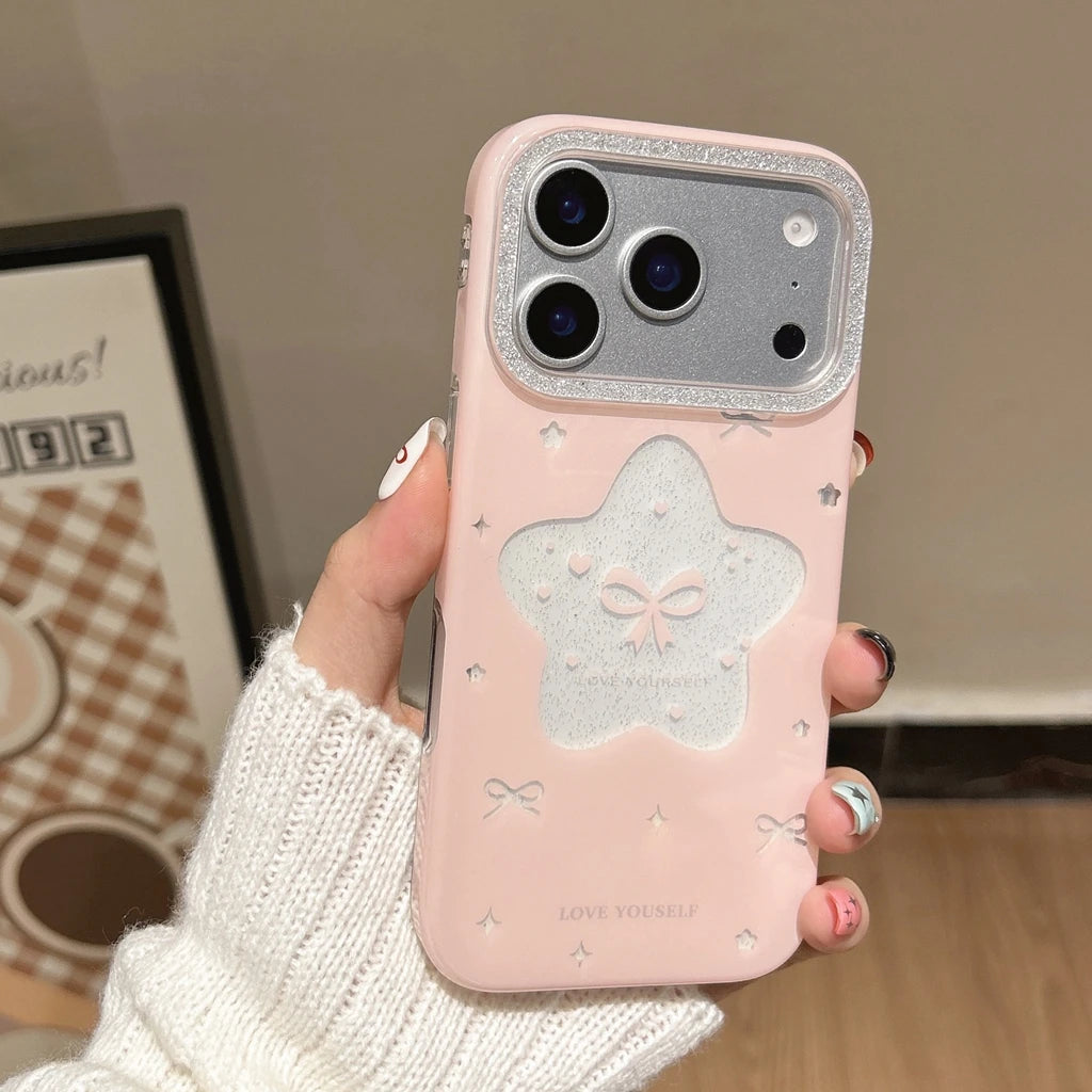 中央の大きめスターウィンドウがポイントで、動くたびにきらめきが変わるロマンチックなケースです。
