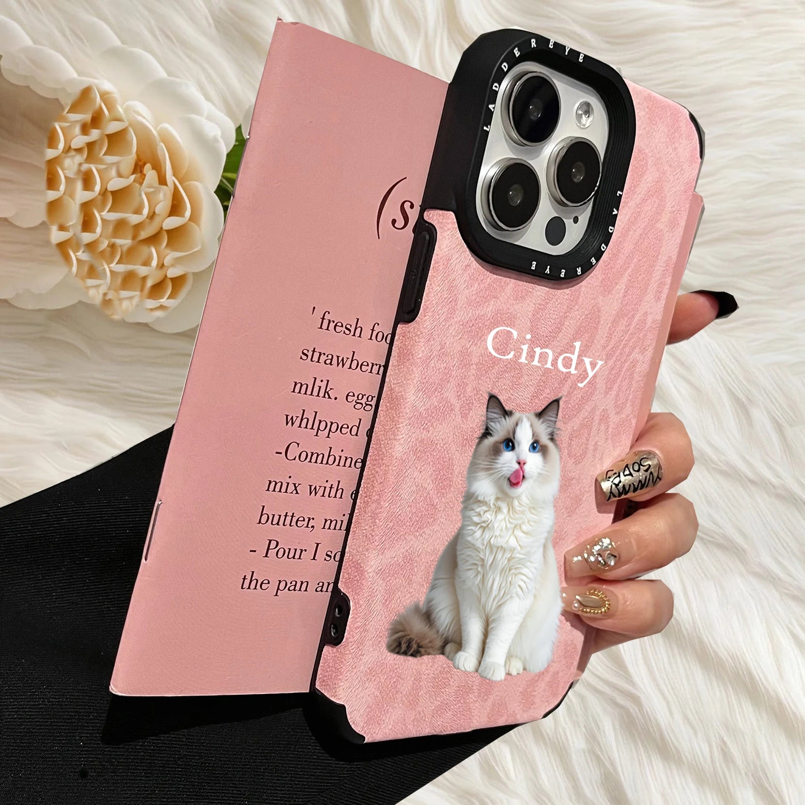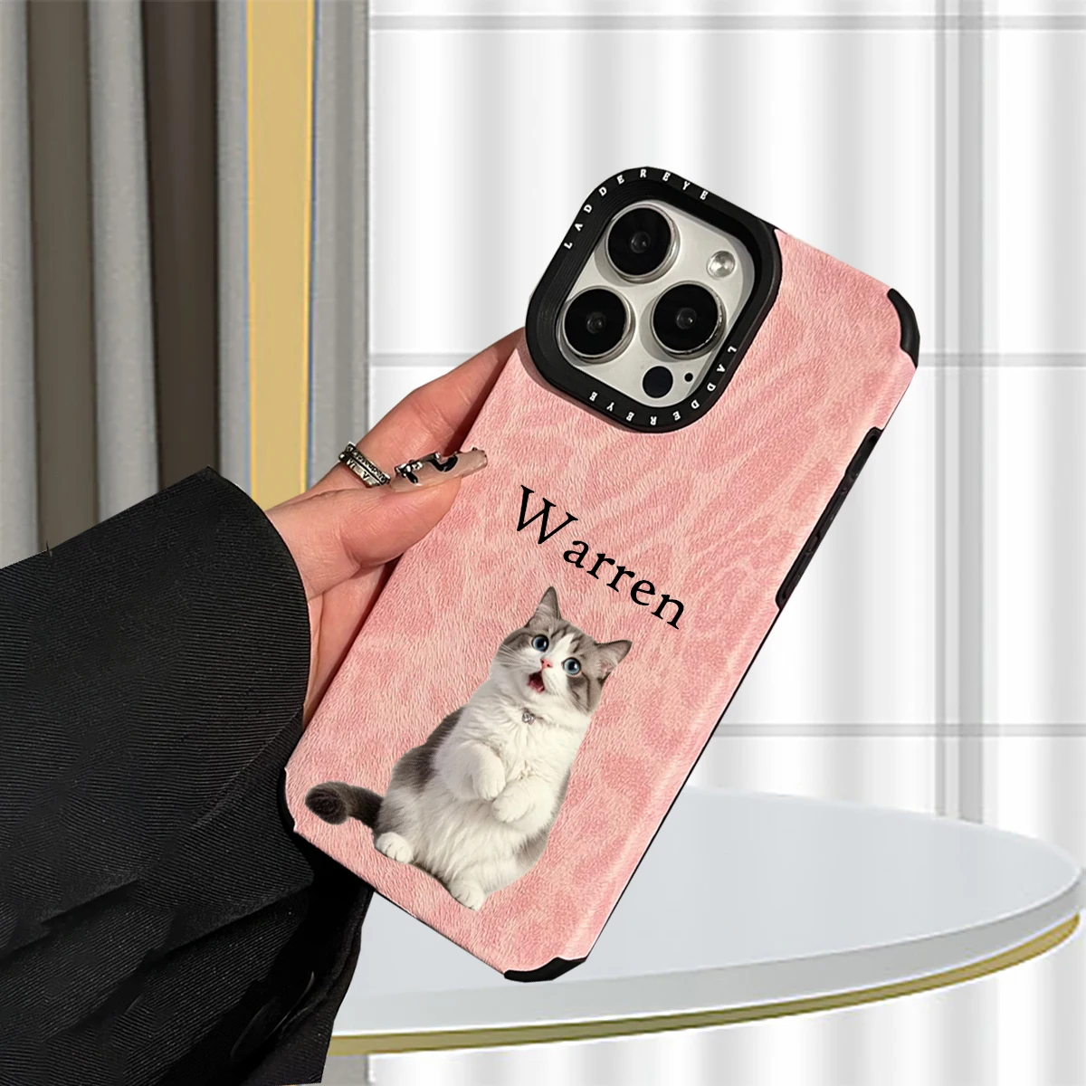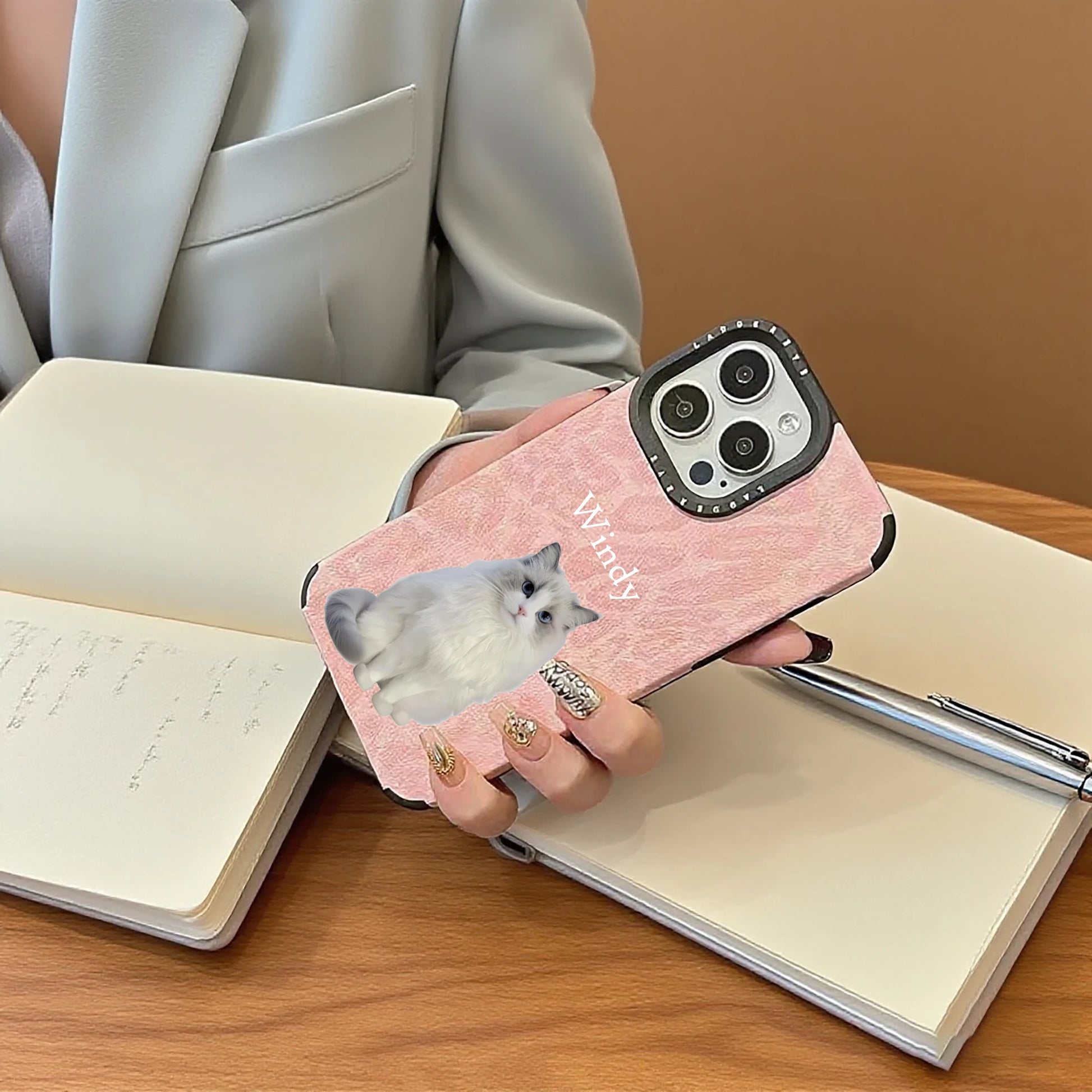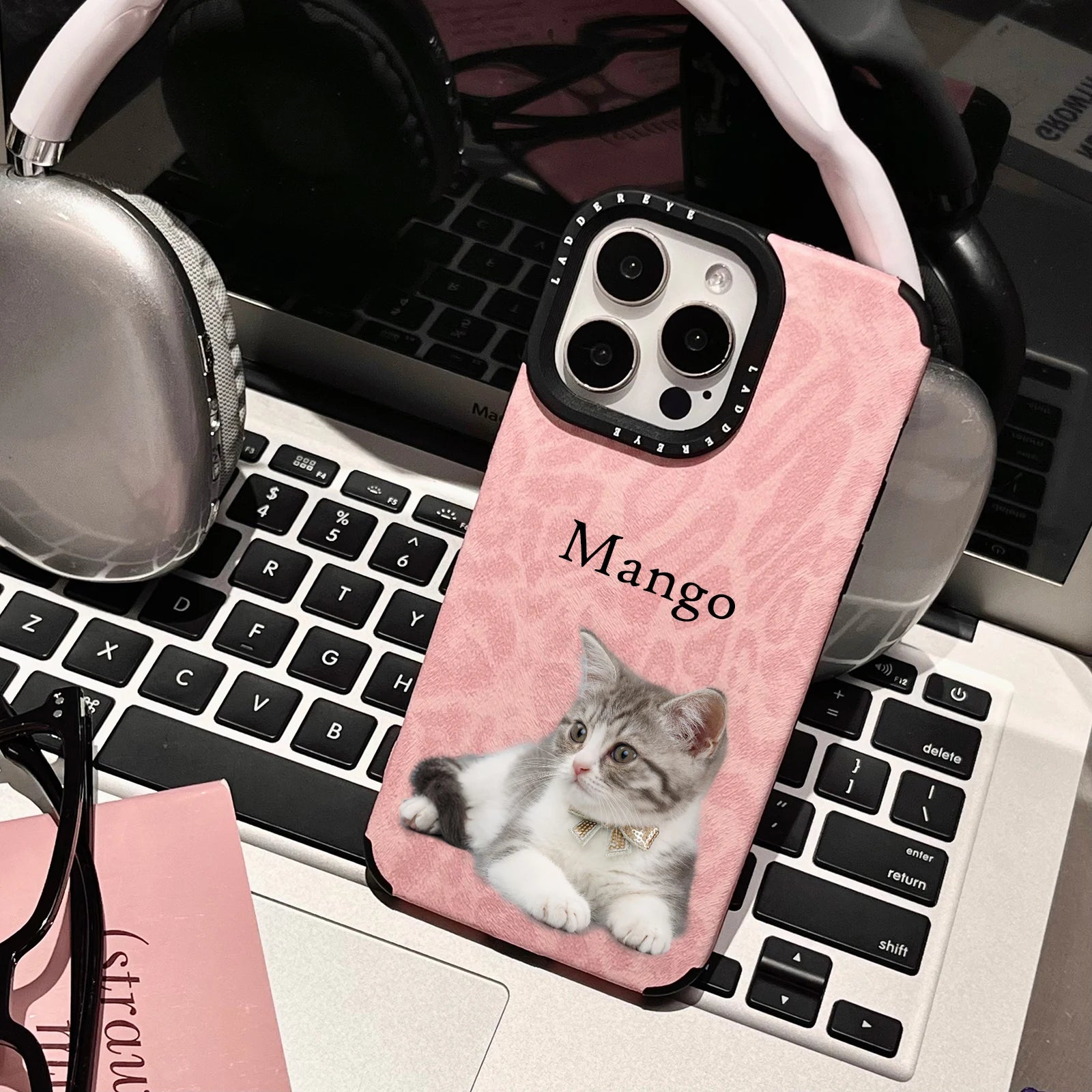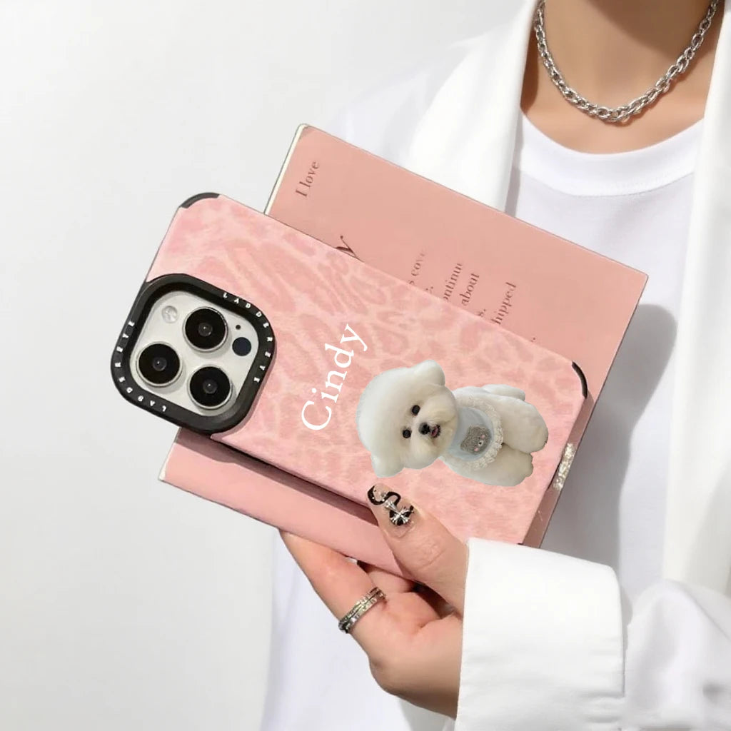 【カスタムNAMEシリーズ】ペット写真 × カスタム ネーム 印字 ピンクレオパード スマホケース|iPhone対応 #241006