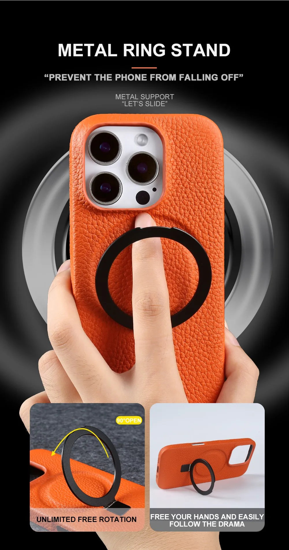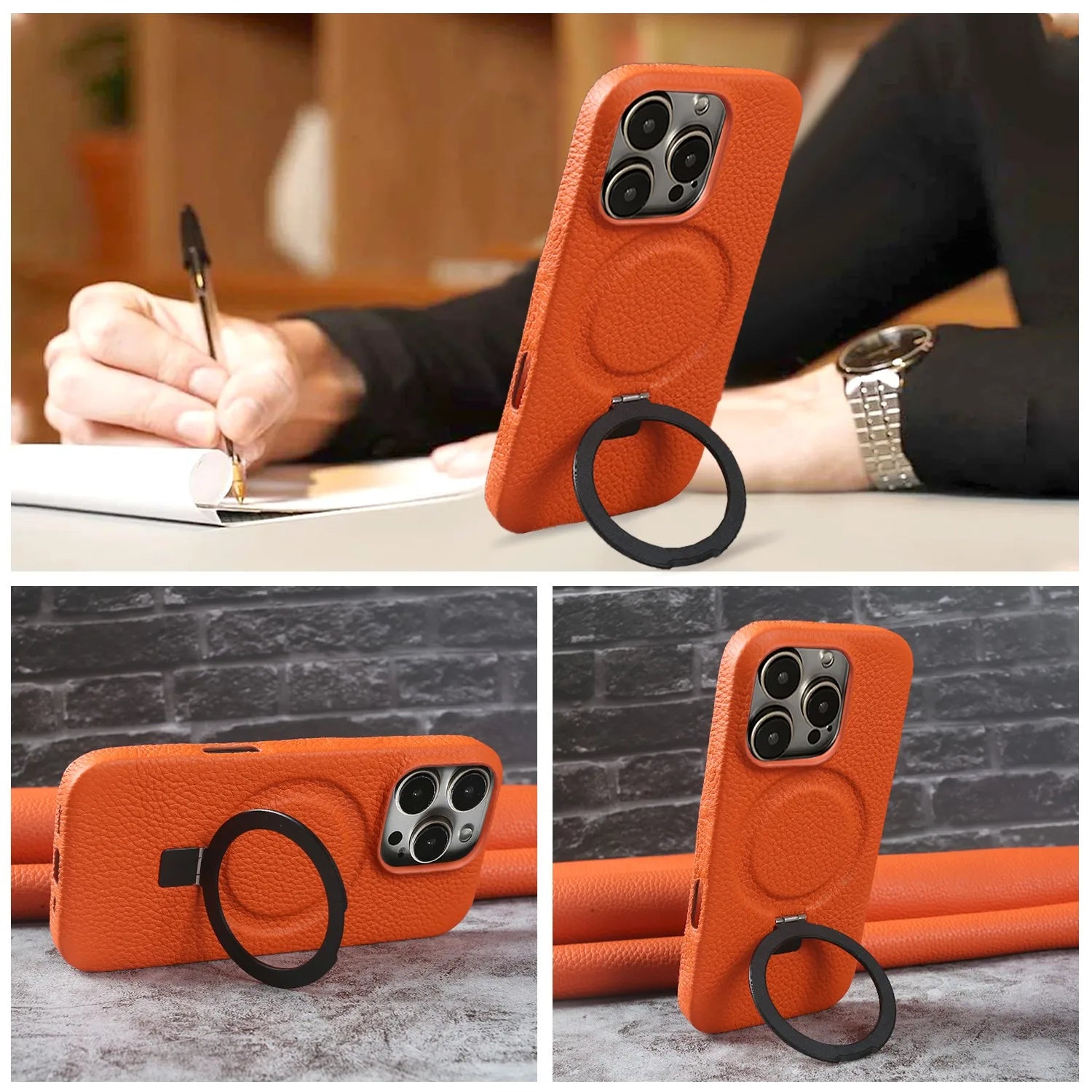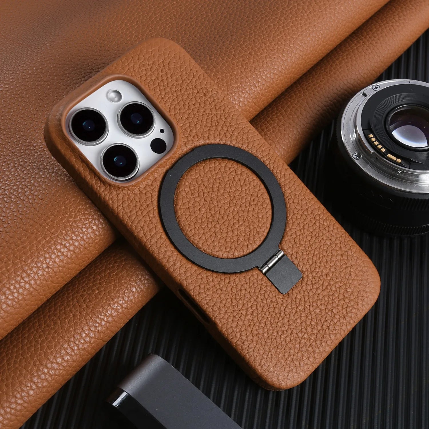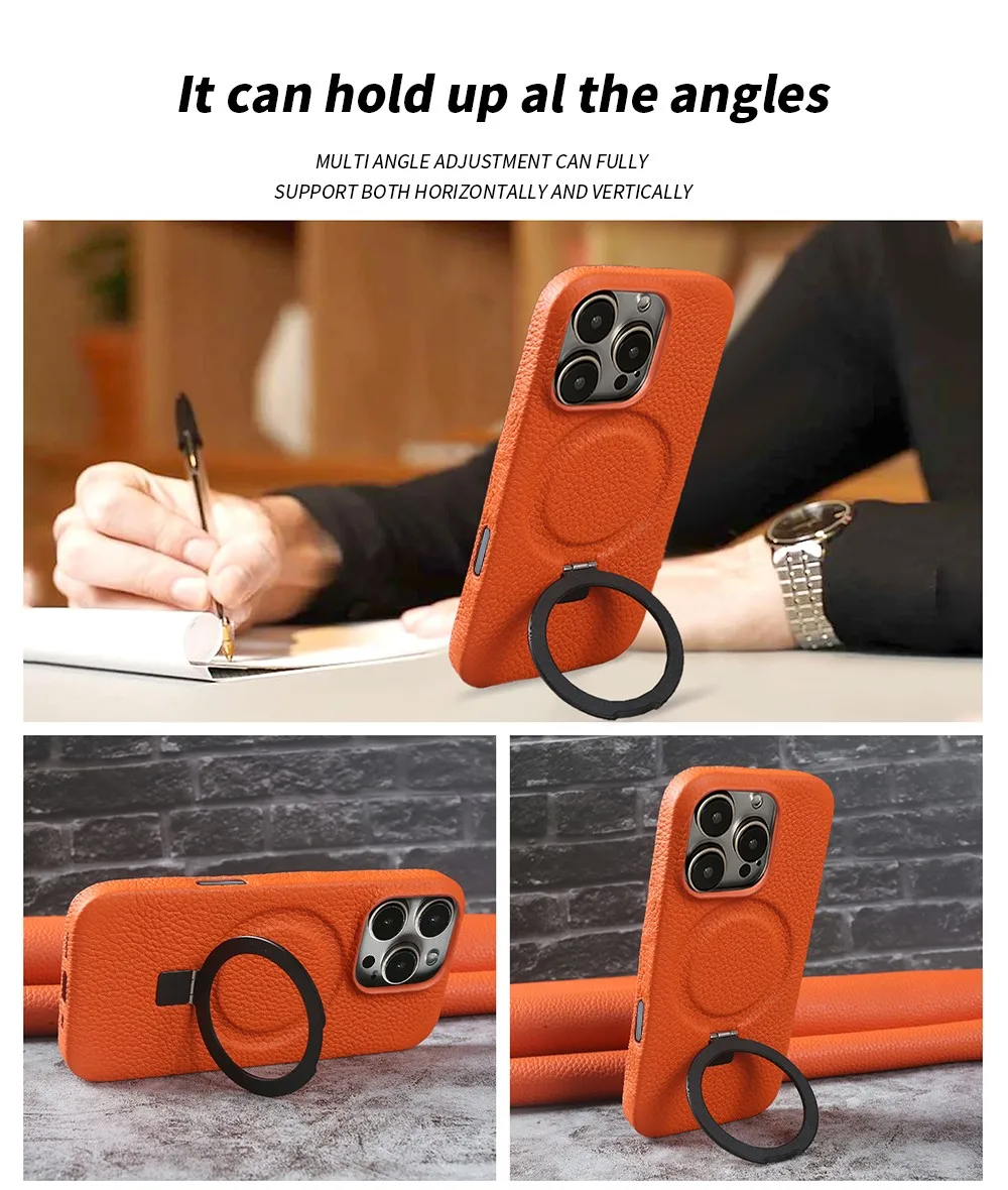 【本革シリーズ】折りたたみ スタンドリング付き レザースマホケース|iPhone対応 #241013