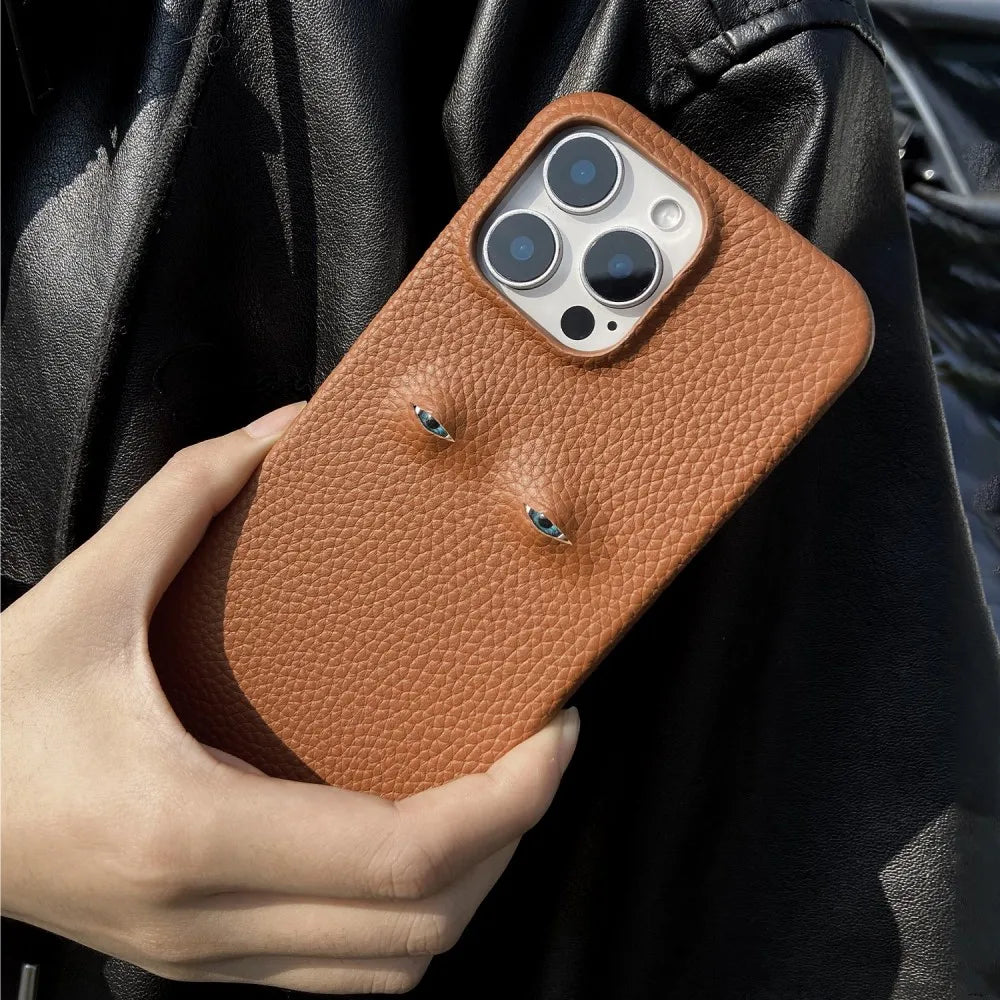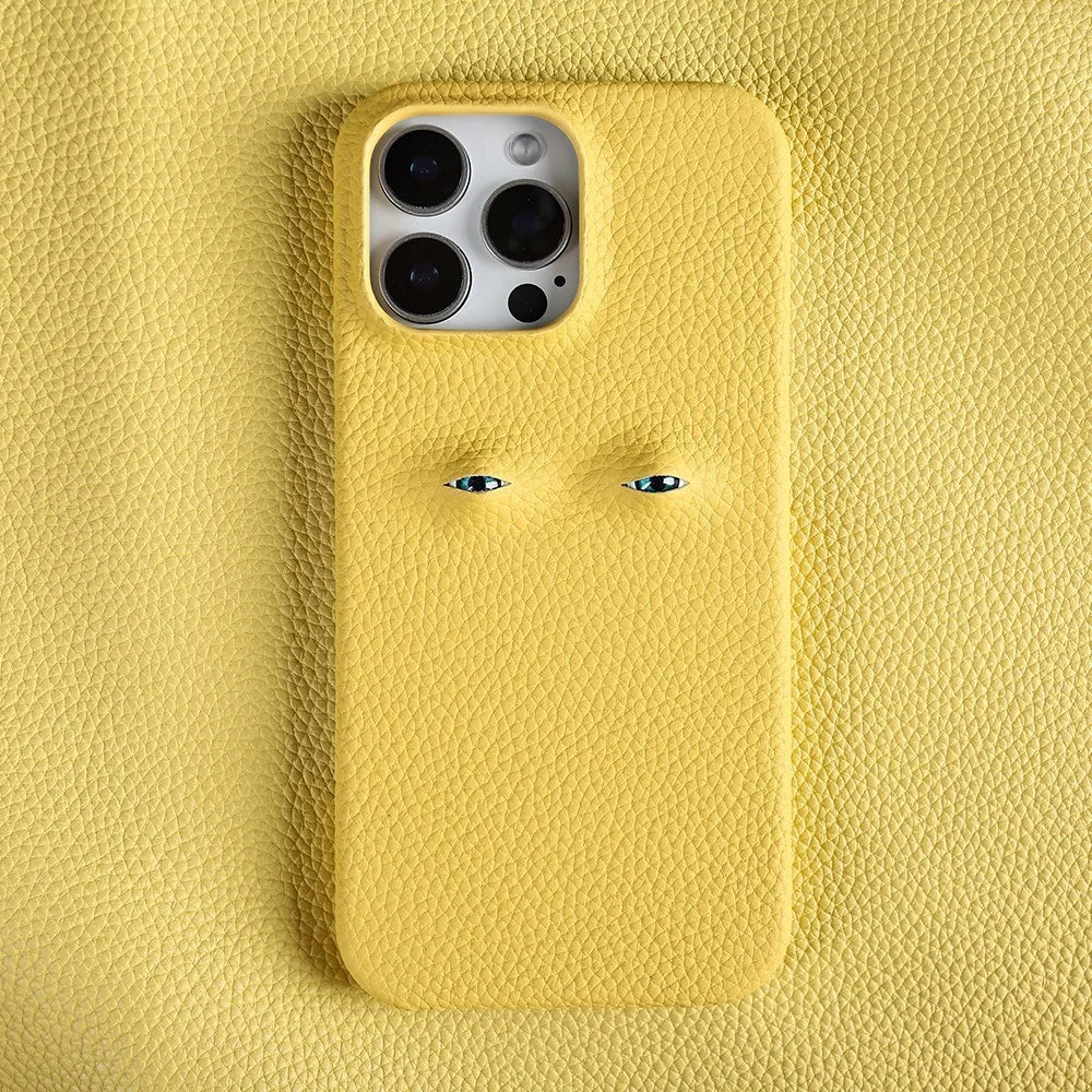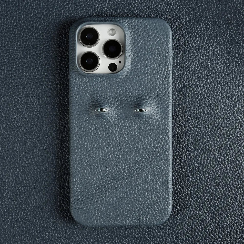 上質なフルグレインレザーを贅沢に使用し、遊び心あふれる“フェイスデザイン”をあしらったユニークな本革ケース。