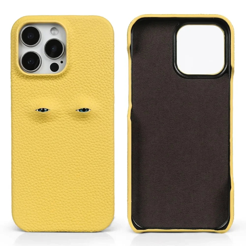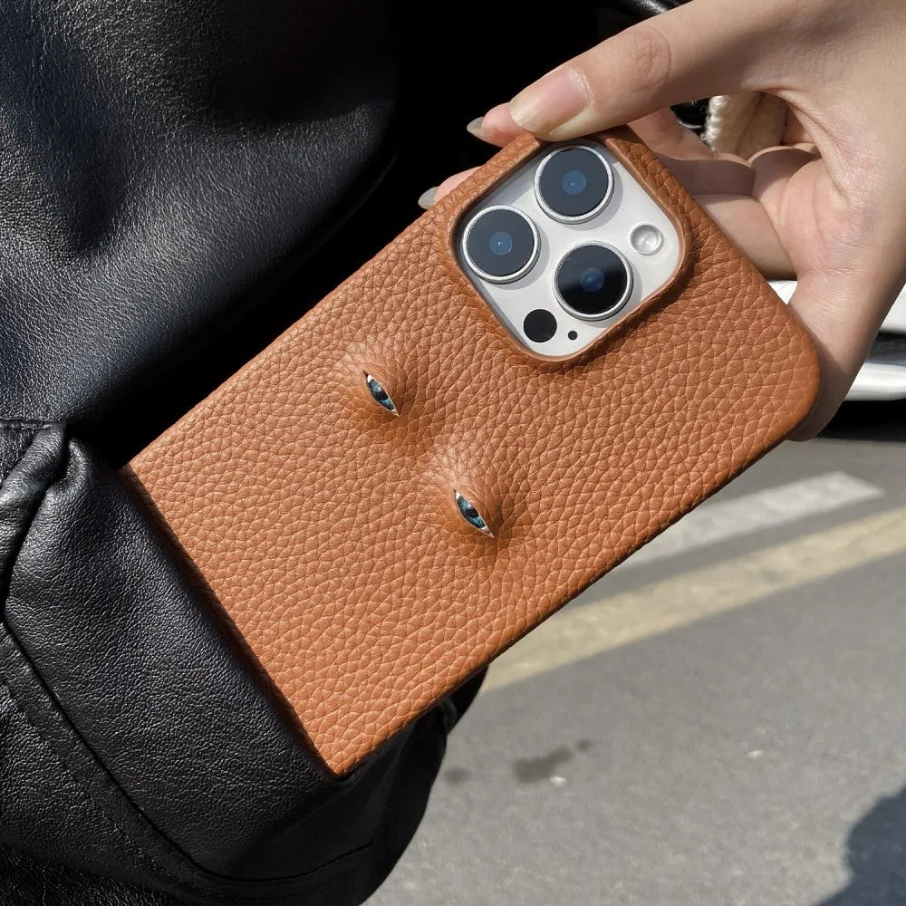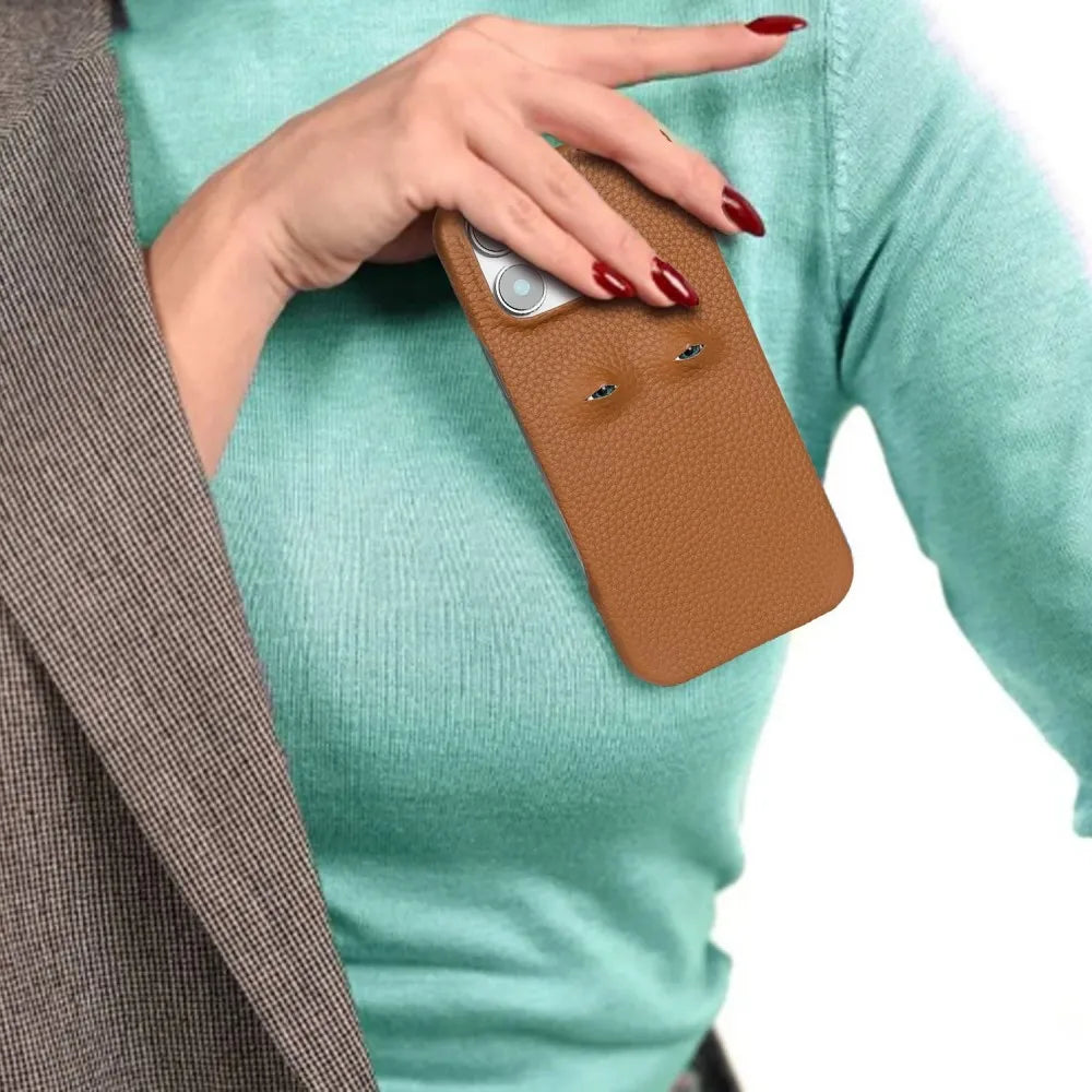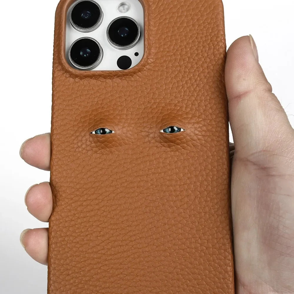 上質なフルグレインレザーを贅沢に使用し、遊び心あふれる“フェイスデザイン”をあしらったユニークな本革ケース。