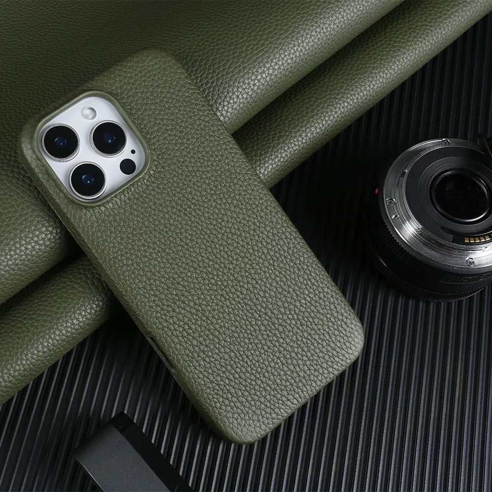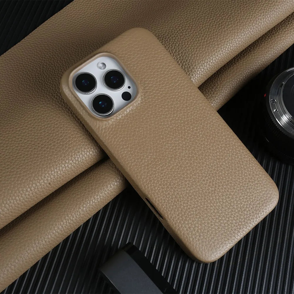 柔らかく手に馴染むレザーの質感と、カメラ周りをしっかり保護するハードフレーム構造で、デザイン性と実用性を両立した1点です。
