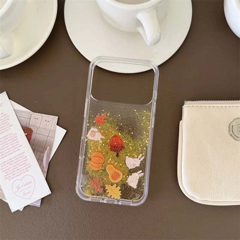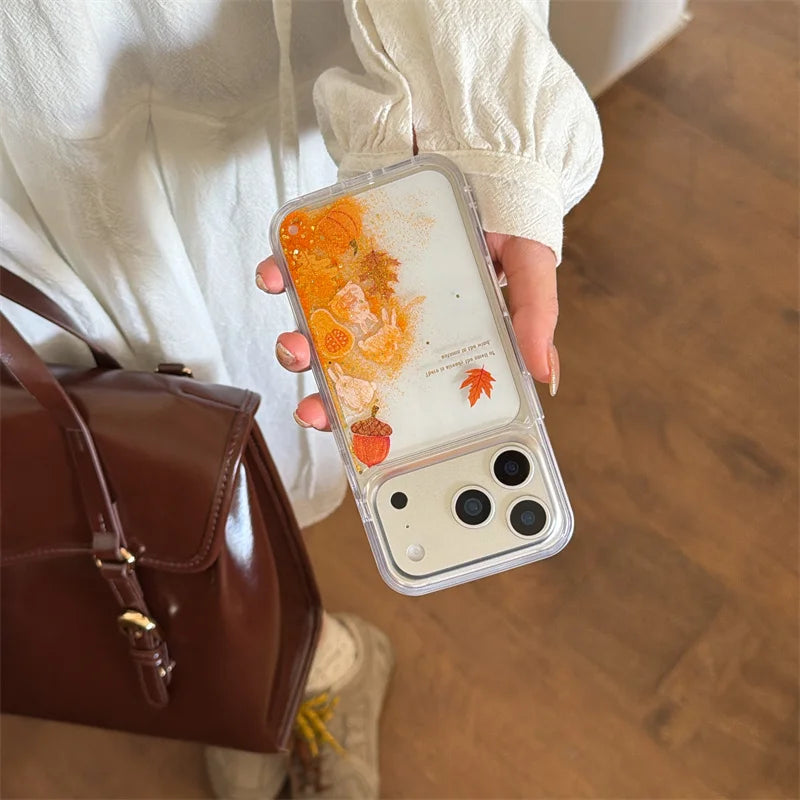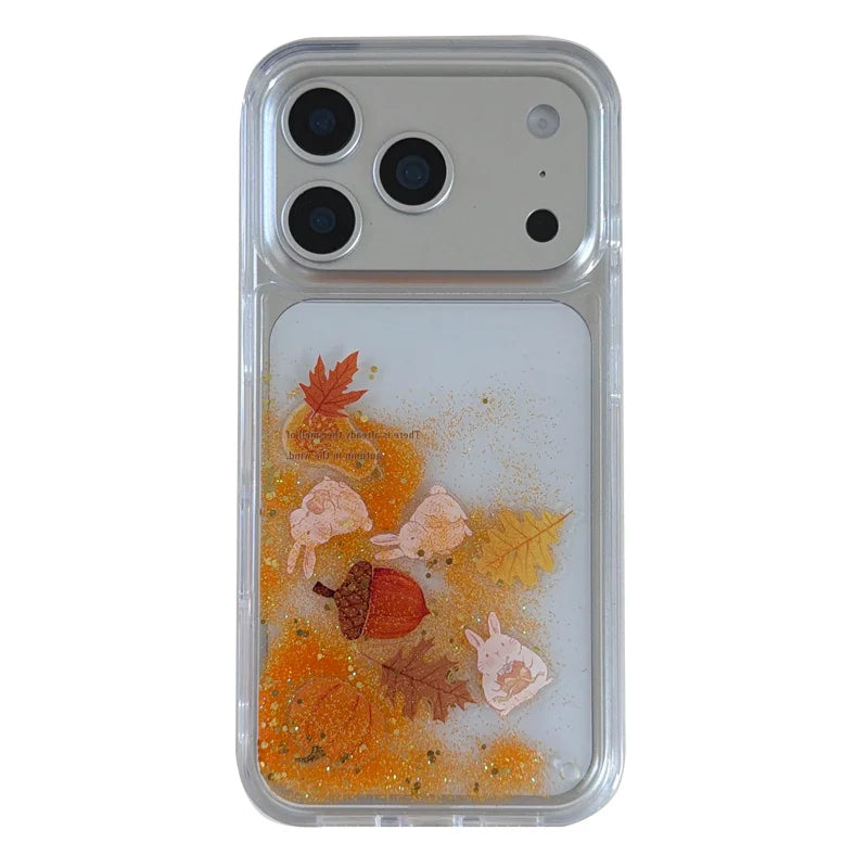 【流れるシリーズ】どんぐり もみじ 秋モチーフ きらきらラメ グリッター クリアスマホケース|iPhone対応 #241018
